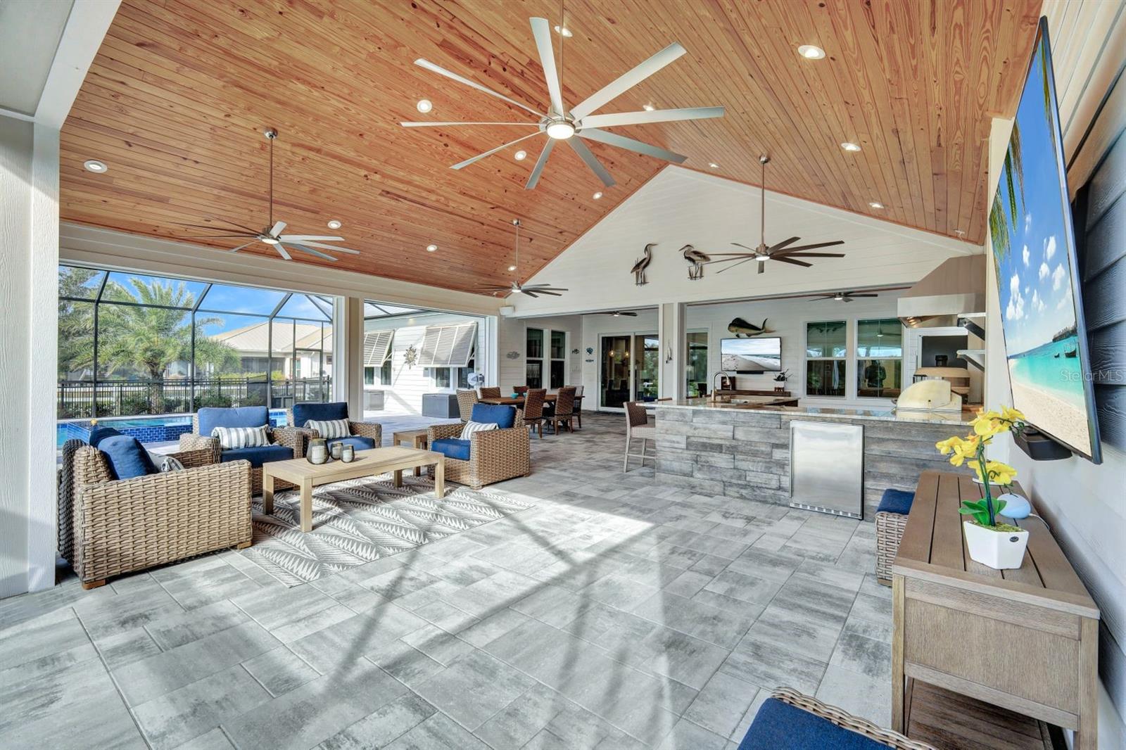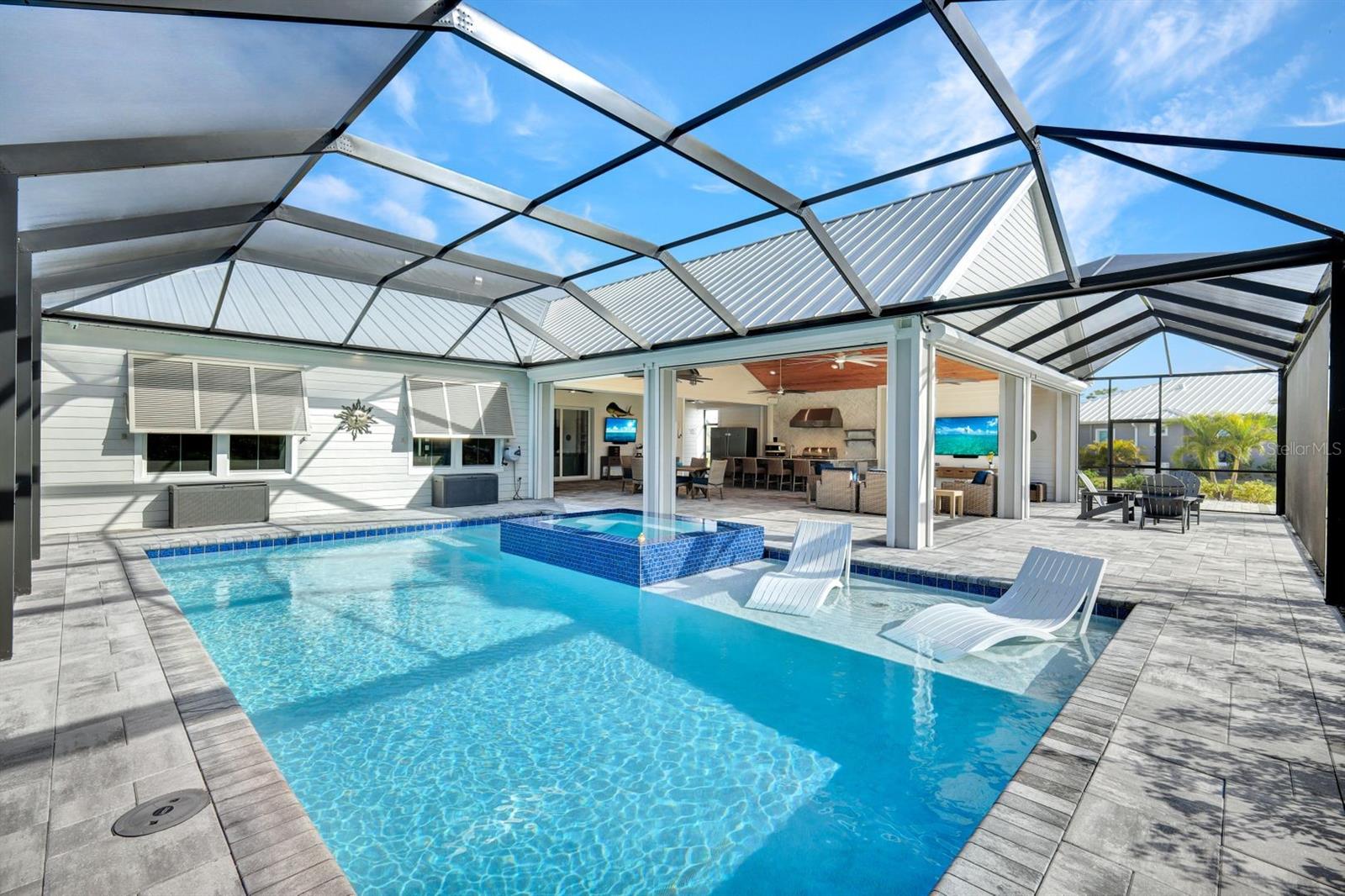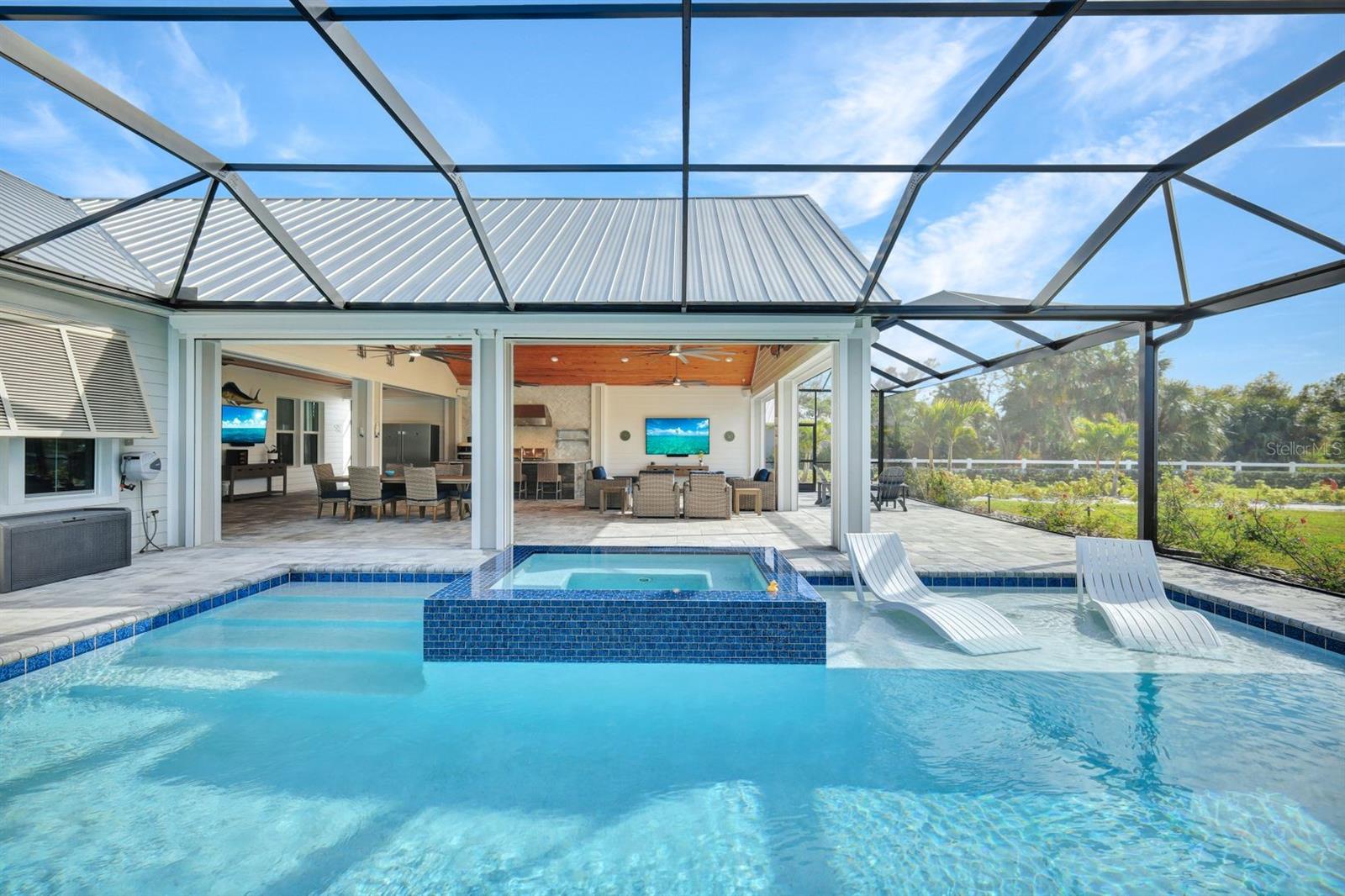 The rarest of opportunities awaits—where country charm, coastal elegance, and modern convenience converge into a dream home of unparalleled beauty. Located in the gated community of the Estates on Peace River, this immaculately maintained and extensively upgraded property is a true masterpiece of craftsmanship and thoughtful design. Step inside and be captivated by the inviting, open layout that seamlessly blends sophisticated elegance with luxurious comfort. The four spacious bedrooms and three beautifully appointed baths offer generous space for both family and guests. The private, well-sized primary suite is a serene retreat, boasting a spa-worthy bathroom with luxurious finishes that rival your favorite resort, and a large custom closet designed to keep you organized in style. At the heart of the home lies a chef’s dream kitchen—featuring exquisite, high-quality European cabinets that combine sleek design with superior functionality, along with top-of-the-line, built-in Miele appliances for the ultimate in culinary performance. A walk-in pantry completes the space, perfectly designed to meet your every storage need with flair and efficiency. Beyond the impeccable interior, the outdoor living area truly elevates this home to a class of its own. A sprawling lanai, adorned with stunning pine tongue-and-groove ceilings, offers multiple seating areas to relax and entertain. The large outdoor kitchen is fully equipped to handle gatherings of any size, while the saltwater pool and spa create an entertainer’s paradise. Imagine cozy evenings by the custom-built firepit, where you can unwind under a canopy of stars. Boating enthusiasts will revel in the dedicated 12,000-lb boat lift with direct access to Charlotte Harbor and beyond, promising endless waterfront adventures to Sanibel, Captiva, Useppa, and beyond. The expansive, fenced yard includes a puppy run, ensuring your four-legged friends feel just as pampered as you do. Custom touches abound throughout the property, including built-in office cabinetry, a spacious three-car garage equipped with custom storage solutions and an EV charging station, a Whole House RO water system, a comprehensive security and camera system, and a powerful 24kW whole-house generator for continuous peace of mind. Every corner of this extraordinary residence tells a story of luxury, meticulous attention to detail, and modern refinement. This is far more than a house—it’s a lifestyle, a haven, and the perfect canvas for creating lifelong memories.