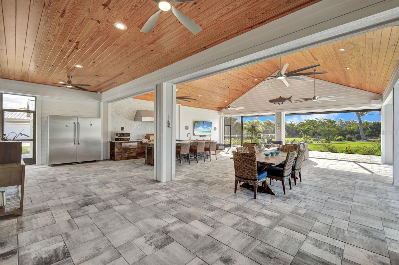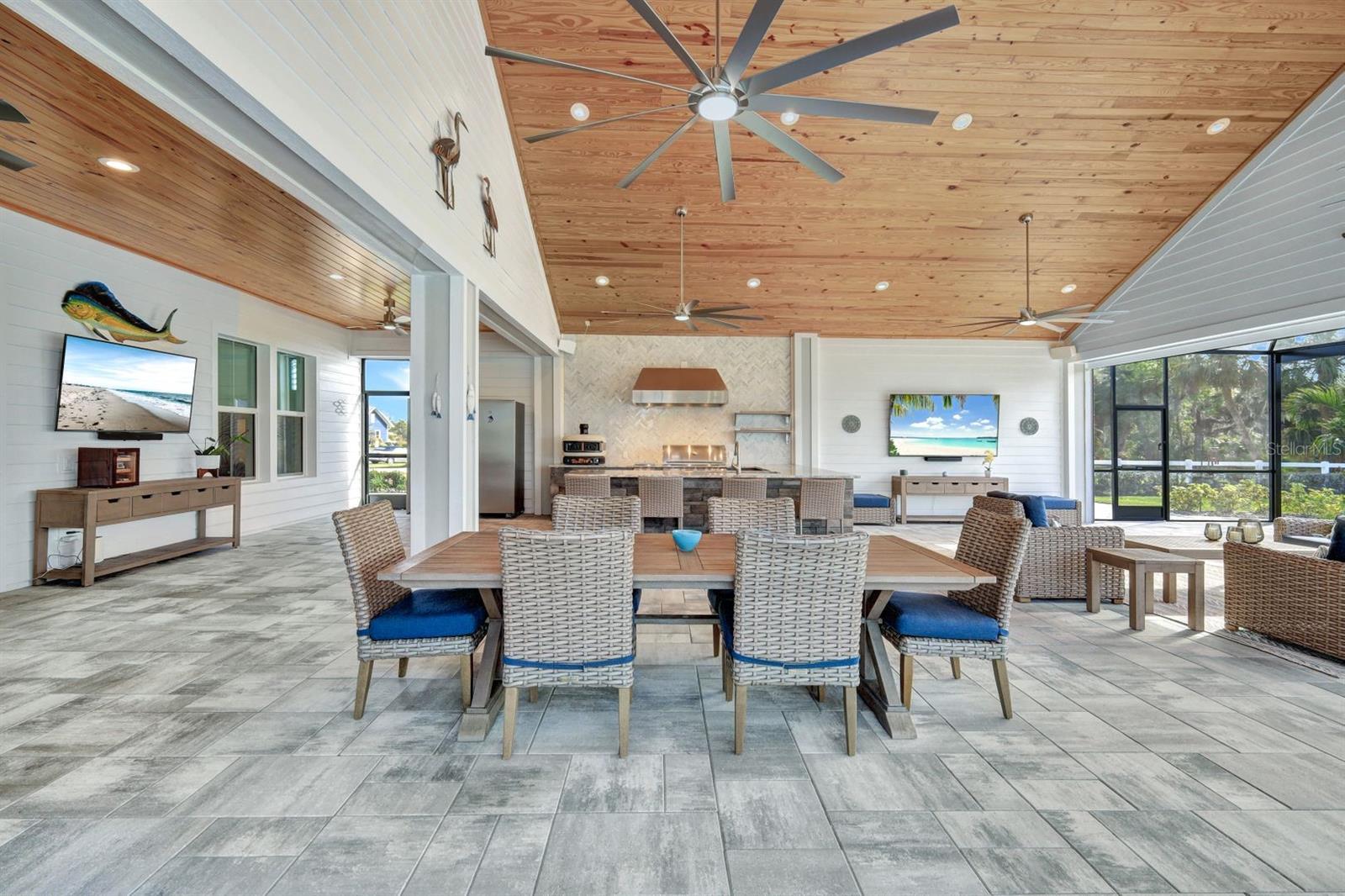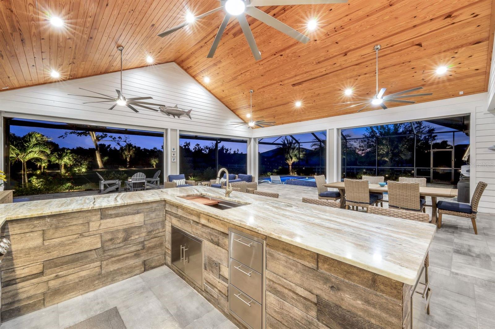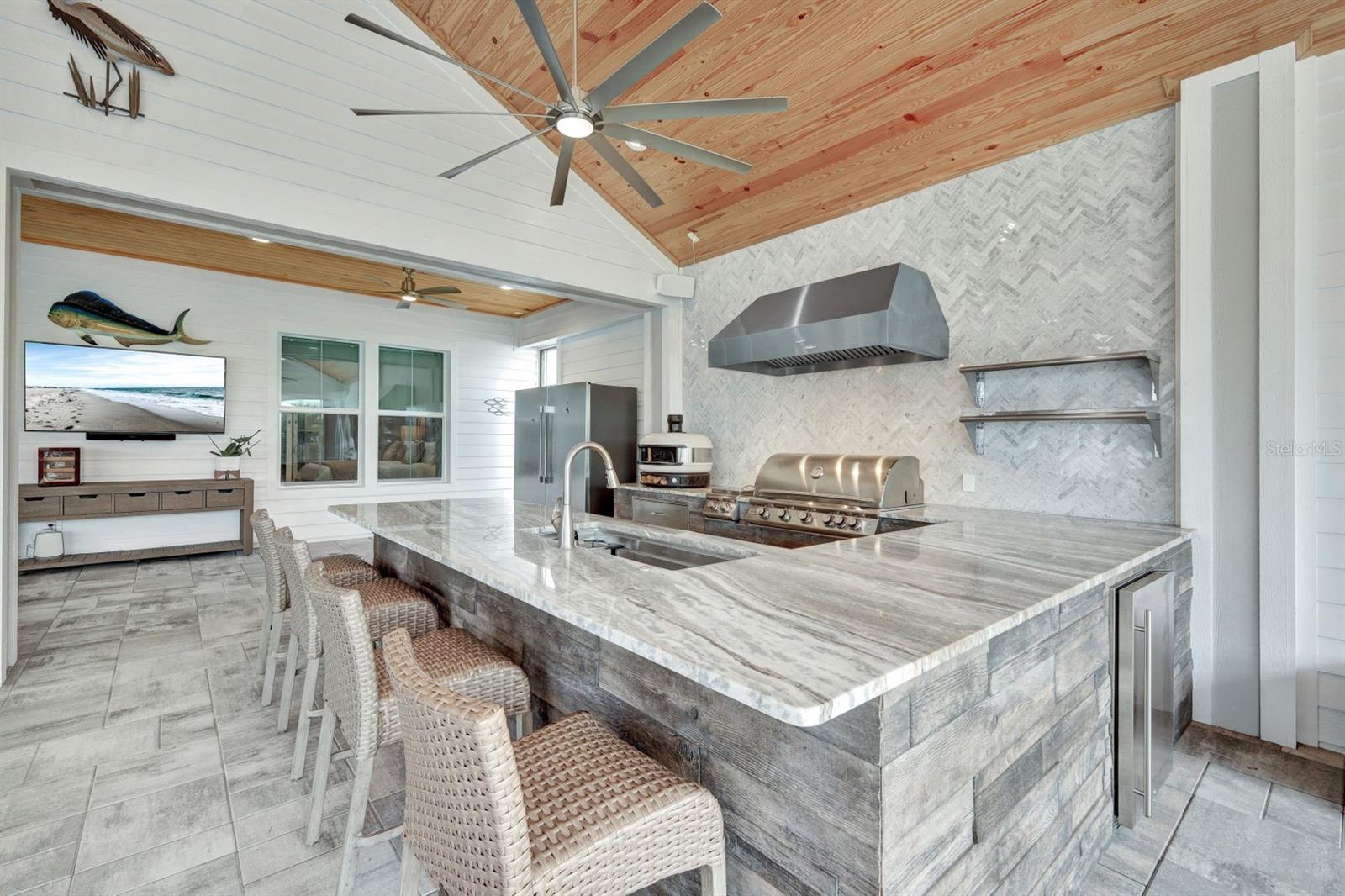 The rarest of opportunities awaits—where country charm, coastal elegance, and modern convenience converge into a dream home of unparalleled beauty. Located in the gated community of the Estates on Peace River, this immaculately maintained and extensively upgraded property is a true masterpiece of craftsmanship and thoughtful design. Step inside and be captivated by the inviting, open layout that seamlessly blends sophisticated elegance with luxurious comfort. The four spacious bedrooms and three beautifully appointed baths offer generous space for both family and guests. The private, well-sized primary suite is a serene retreat, boasting a spa-worthy bathroom with luxurious finishes that rival your favorite resort, and a large custom closet designed to keep you organized in style. At the heart of the home lies a chef’s dream kitchen—featuring exquisite, high-quality European cabinets that combine sleek design with superior functionality, along with top-of-the-line, built-in Miele appliances for the ultimate in culinary performance. A walk-in pantry completes the space, perfectly designed to meet your every storage need with flair and efficiency. Beyond the impeccable interior, the outdoor living area truly elevates this home to a class of its own. A sprawling lanai, adorned with stunning pine tongue-and-groove ceilings, offers multiple seating areas to relax and entertain. The large outdoor kitchen is fully equipped to handle gatherings of any size, while the saltwater pool and spa create an entertainer’s paradise. Imagine cozy evenings by the custom-built firepit, where you can unwind under a canopy of stars. Boating enthusiasts will revel in the dedicated 12,000-lb boat lift with direct access to Charlotte Harbor and beyond, promising endless waterfront adventures to Sanibel, Captiva, Useppa, and beyond. The expansive, fenced yard includes a puppy run, ensuring your four-legged friends feel just as pampered as you do. Custom touches abound throughout the property, including built-in office cabinetry, a spacious three-car garage equipped with custom storage solutions and an EV charging station, a Whole House RO water system, a comprehensive security and camera system, and a powerful 24kW whole-house generator for continuous peace of mind. Every corner of this extraordinary residence tells a story of luxury, meticulous attention to detail, and modern refinement. This is far more than a house—it’s a lifestyle, a haven, and the perfect canvas for creating lifelong memories.