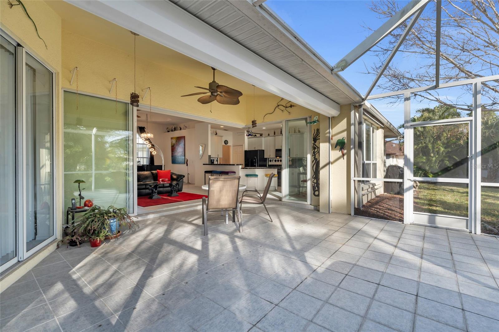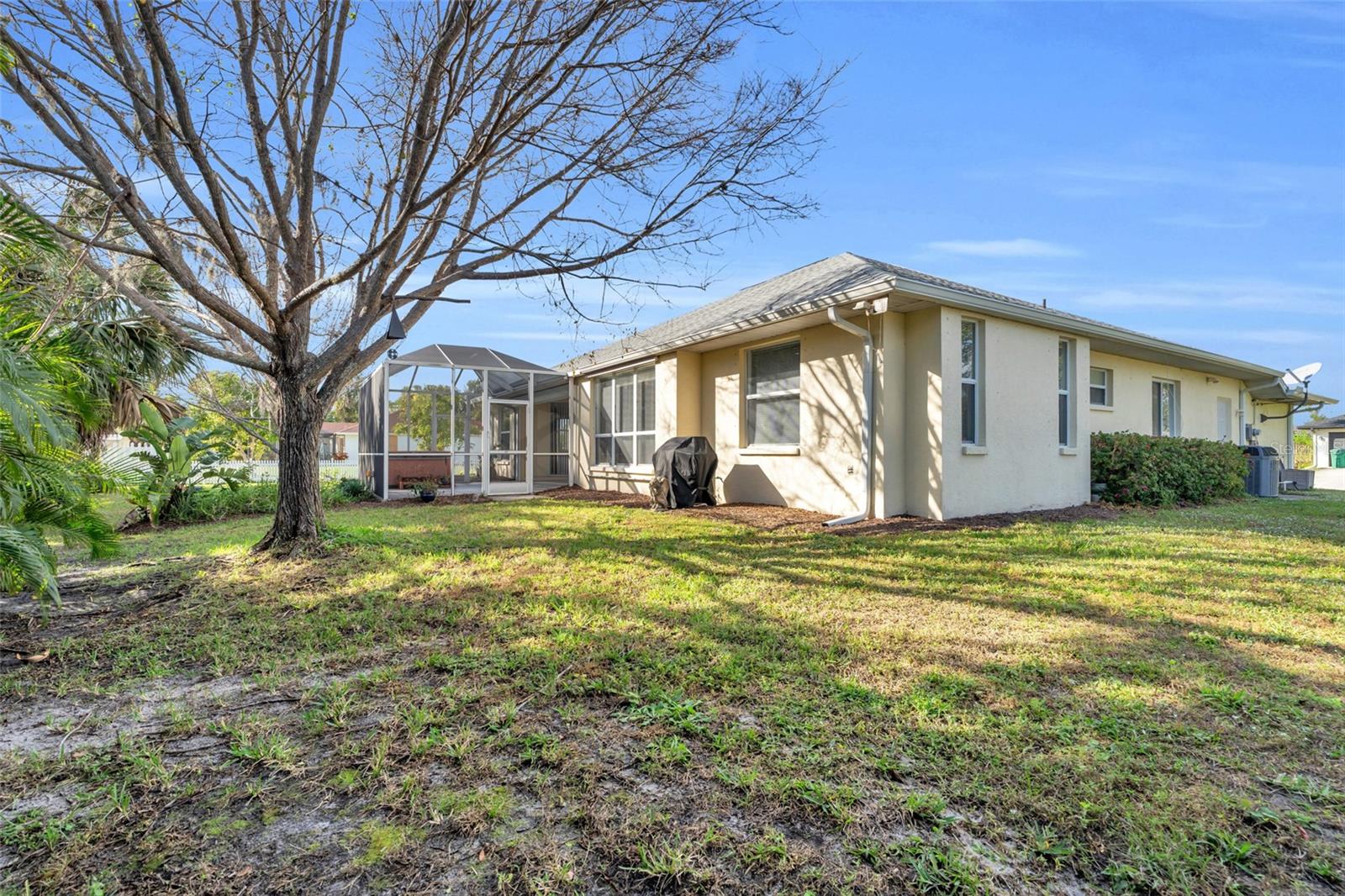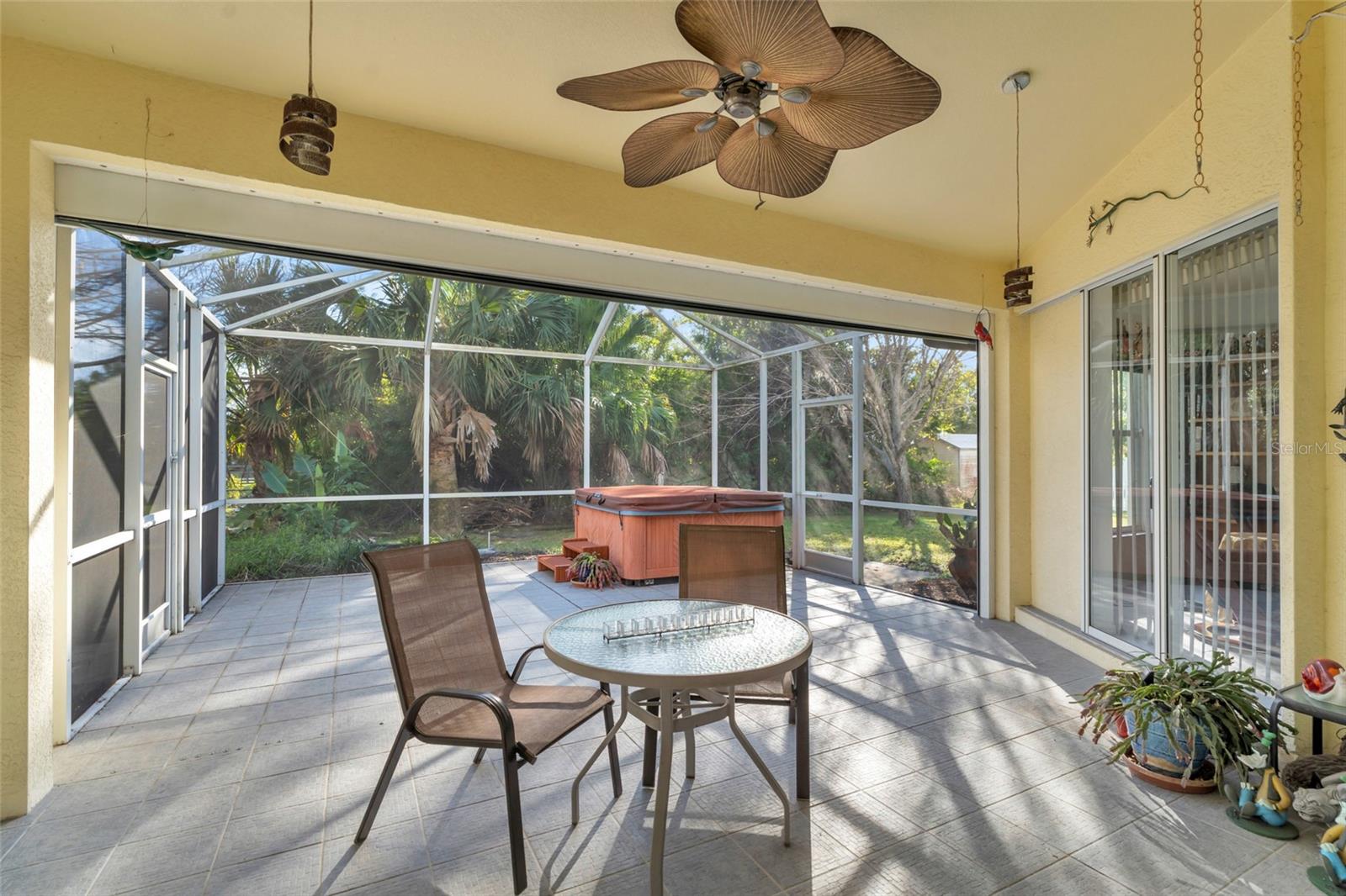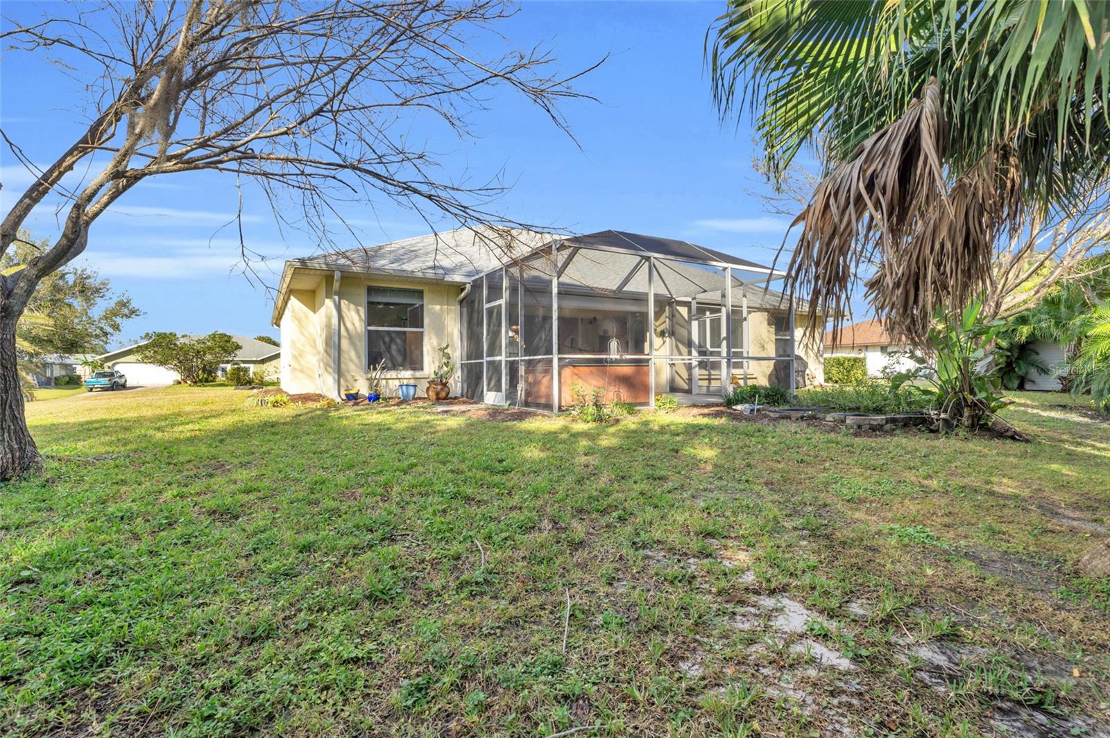 Welcome to your new horizon! This exquisite Plantation Model home, built by McCandless Builders, offers seamless indoor-outdoor living with zero-corner sliding doors that bring the beauty of the private backyard into multiple rooms. Featuring 3 bedrooms, 2 bathrooms, and a 2-car garage, this home is designed for modern living. Relax in your spa tub on the lanai, enjoy the serene fishpond, and take advantage of the oversized lot. The home boasts elegant cabinetry throughout, a built-in vacuum system, LED lighting, and a generator with remote control for added convenience. Culinary enthusiasts will appreciate the buried propane tank that powers a tankless water heater, gas stove, and gas grill. The property also includes a unique shed with air conditioning and running water, perfect for a workshop or hobby space. Additionally, the sprinkler system uses clean water with no ferrous oxide deposits, ensuring your landscaping stays pristine. This home remained completely dry during recent storms, eliminating the need for flood insurance, and boasts a new roof installed in 2023. Lovingly cared for by the original owners, it’s in excellent condition and move-in ready. Don’t miss the opportunity to make this exceptional property yours!