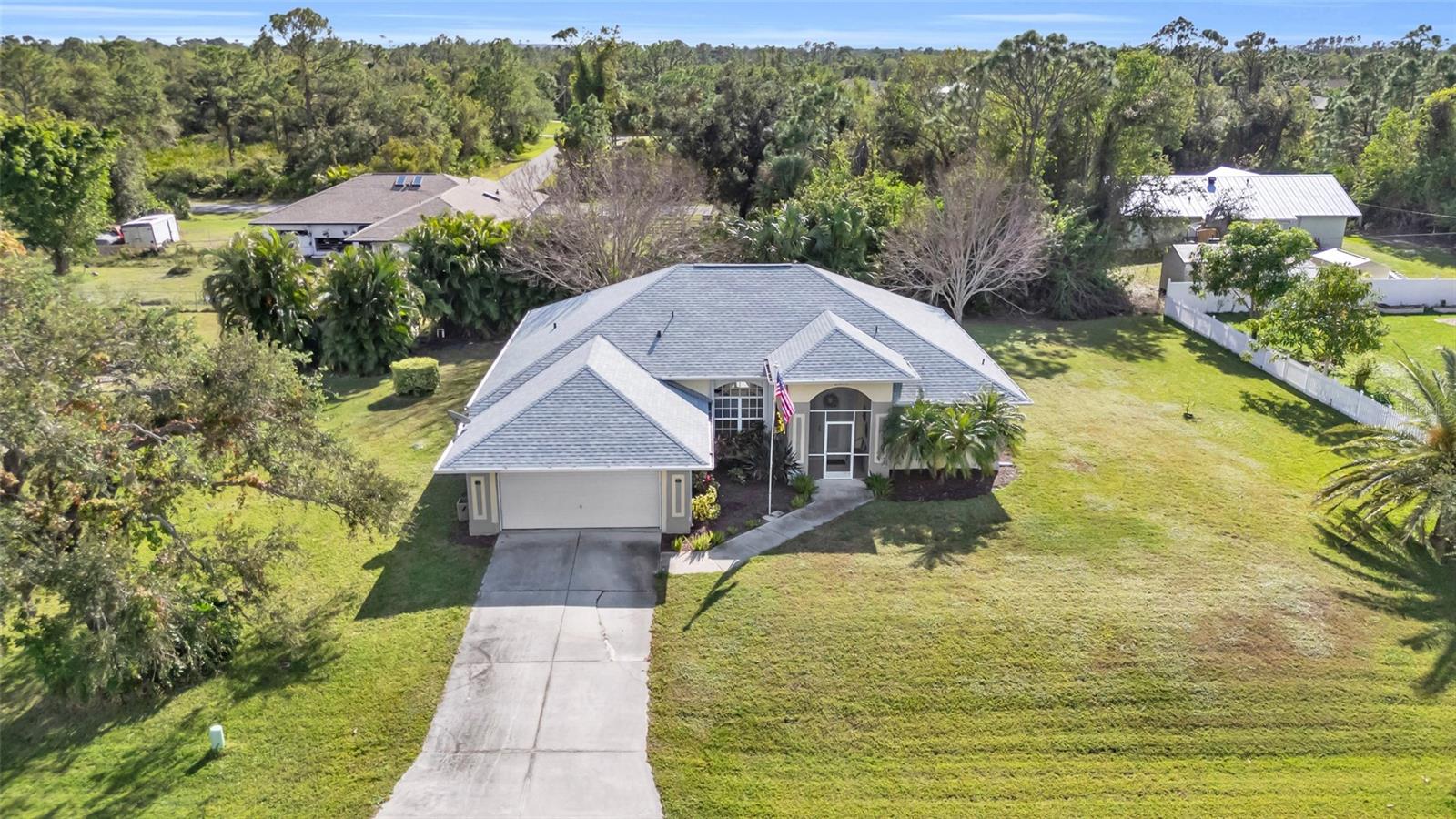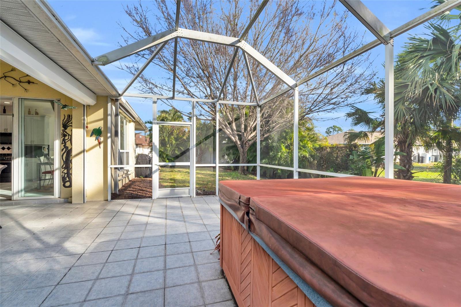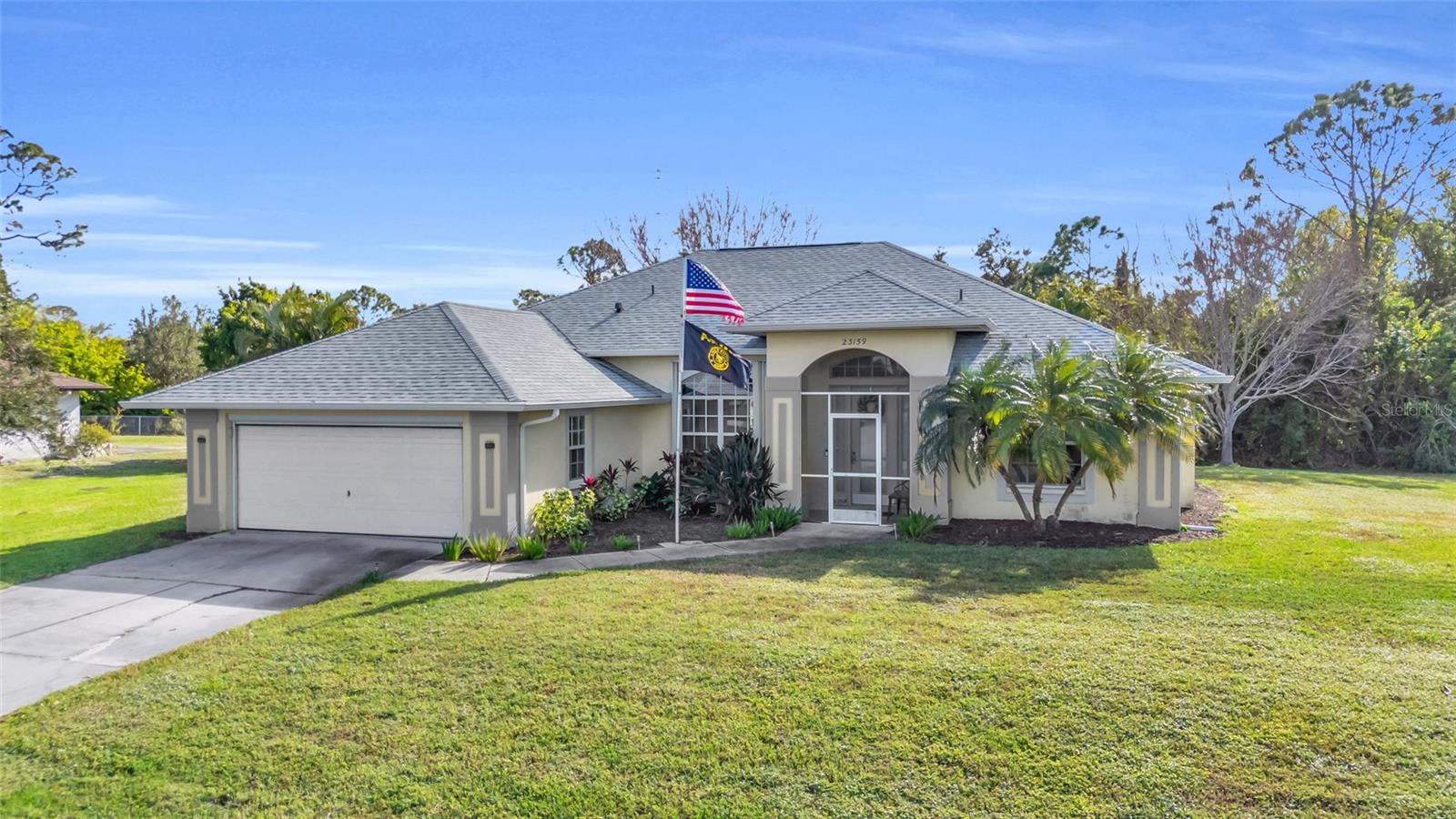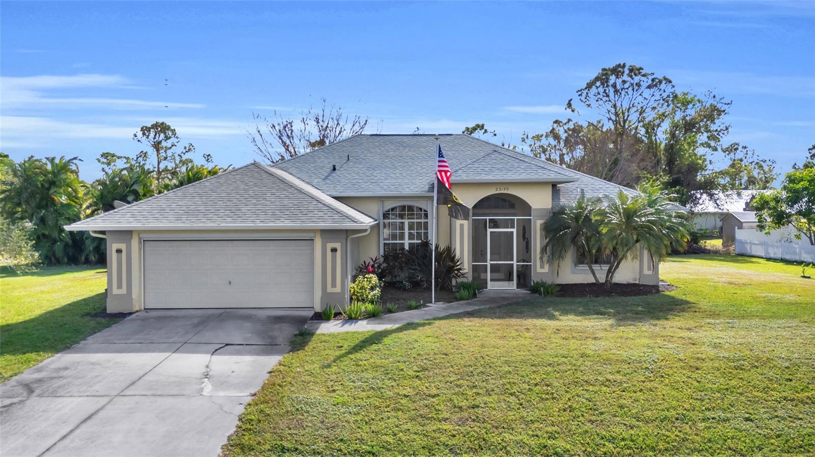 Welcome to your new horizon! This exquisite Plantation Model home, built by McCandless Builders, offers seamless indoor-outdoor living with zero-corner sliding doors that bring the beauty of the private backyard into multiple rooms. Featuring 3 bedrooms, 2 bathrooms, and a 2-car garage, this home is designed for modern living. Relax in your spa tub on the lanai, enjoy the serene fishpond, and take advantage of the oversized lot. The home boasts elegant cabinetry throughout, a built-in vacuum system, LED lighting, and a generator with remote control for added convenience. Culinary enthusiasts will appreciate the buried propane tank that powers a tankless water heater, gas stove, and gas grill. The property also includes a unique shed with air conditioning and running water, perfect for a workshop or hobby space. Additionally, the sprinkler system uses clean water with no ferrous oxide deposits, ensuring your landscaping stays pristine. This home remained completely dry during recent storms, eliminating the need for flood insurance, and boasts a new roof installed in 2023. Lovingly cared for by the original owners, it’s in excellent condition and move-in ready. Don’t miss the opportunity to make this exceptional property yours!