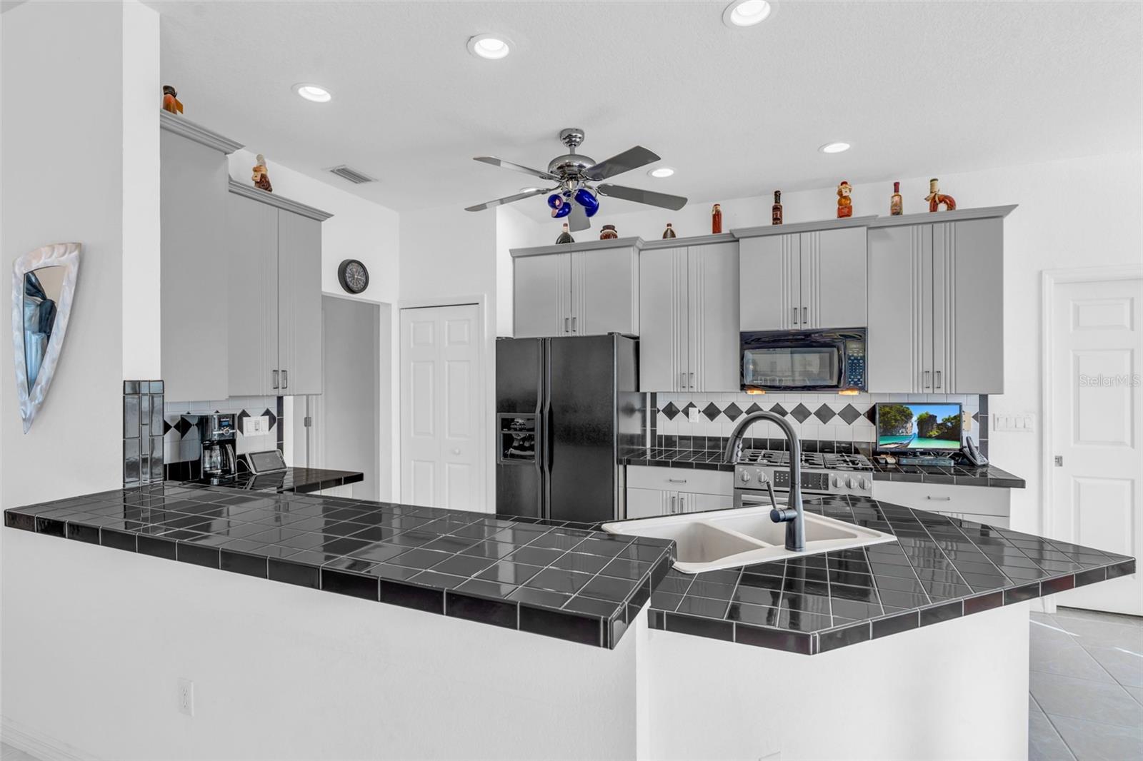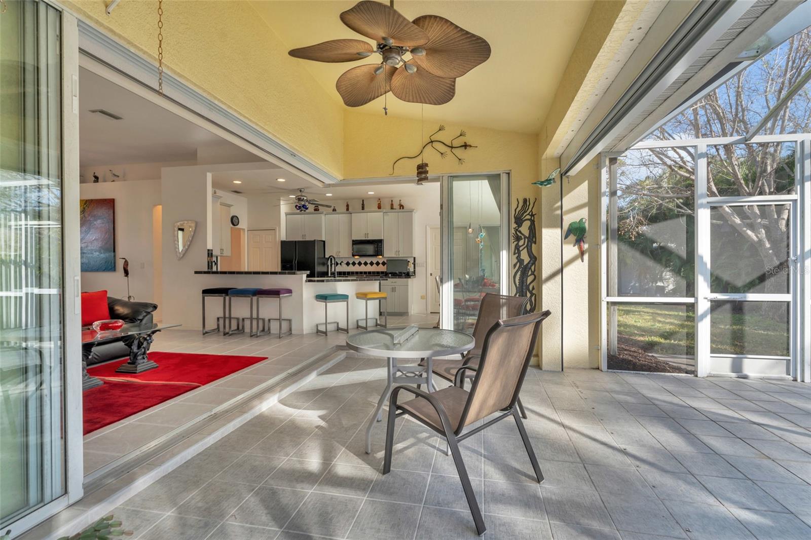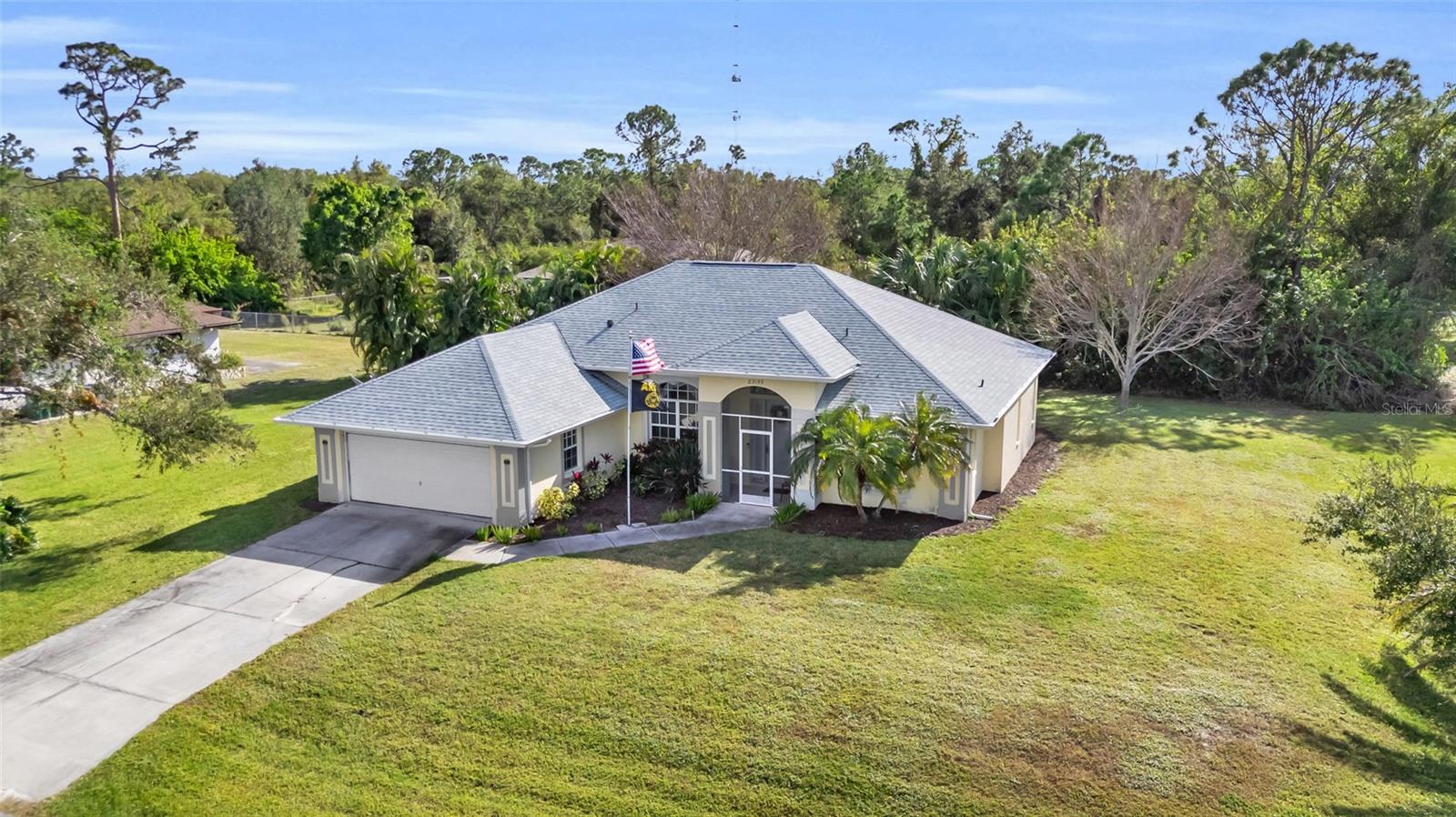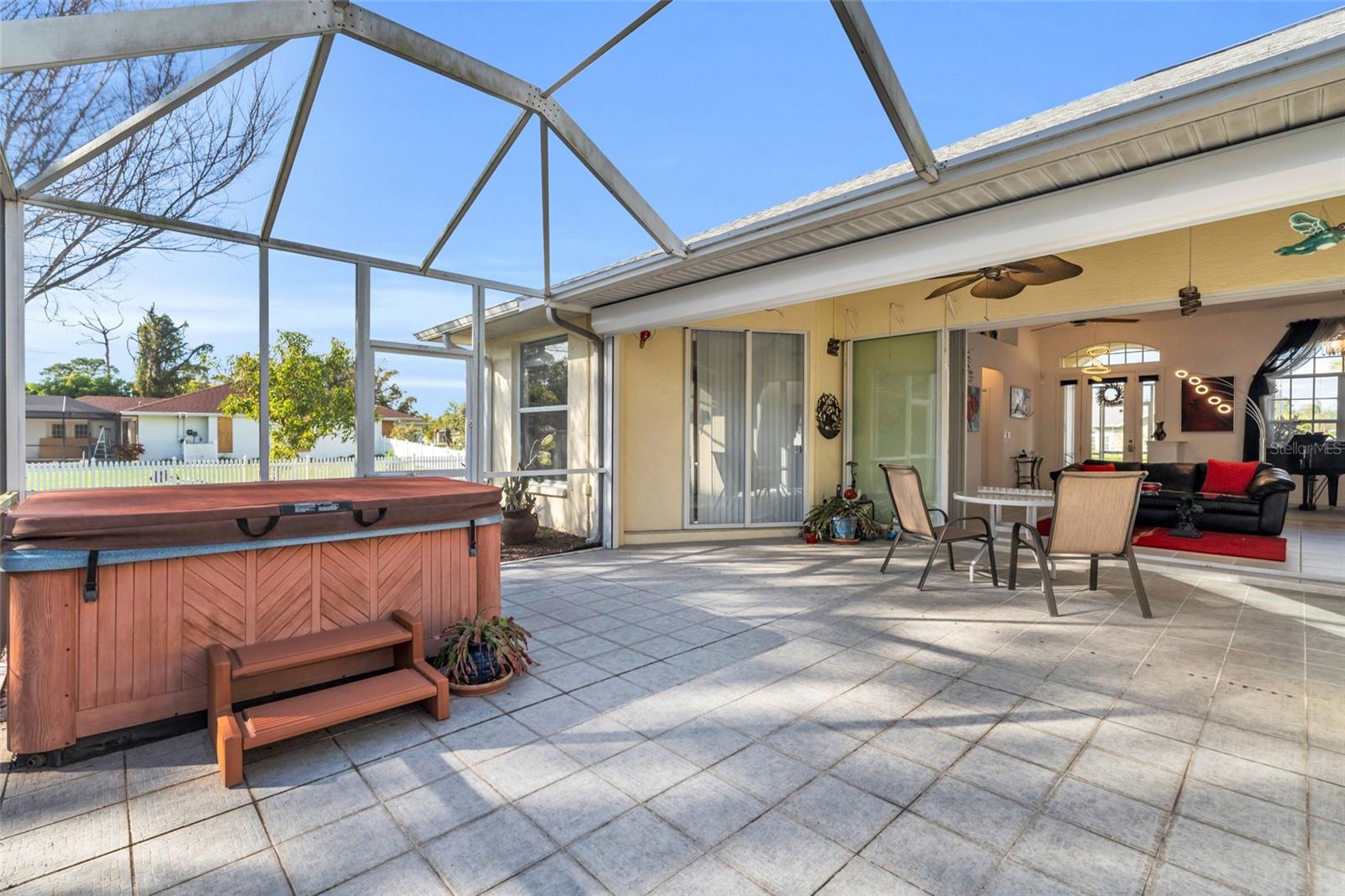Welcome to your new horizon! This exquisite Plantation Model home, built by McCandless Builders, offers seamless indoor-outdoor living with zero-corner sliding doors that bring the beauty of the private backyard into multiple rooms. Featuring 3 bedrooms, 2 bathrooms, and a 2-car garage, this home is designed for modern living. Relax in your spa tub on the lanai, enjoy the serene fishpond, and take advantage of the oversized lot. The home boasts elegant cabinetry throughout, a built-in vacuum system, LED lighting, and a generator with remote control for added convenience. Culinary enthusiasts will appreciate the buried propane tank that powers a tankless water heater, gas stove, and gas grill. The property also includes a unique shed with air conditioning and running water, perfect for a workshop or hobby space. Additionally, the sprinkler system uses clean water with no ferrous oxide deposits, ensuring your landscaping stays pristine. This home remained completely dry during recent storms, eliminating the need for flood insurance, and boasts a new roof installed in 2023. Lovingly cared for by the original owners, it’s in excellent condition and move-in ready. Don’t miss the opportunity to make this exceptional property yours!