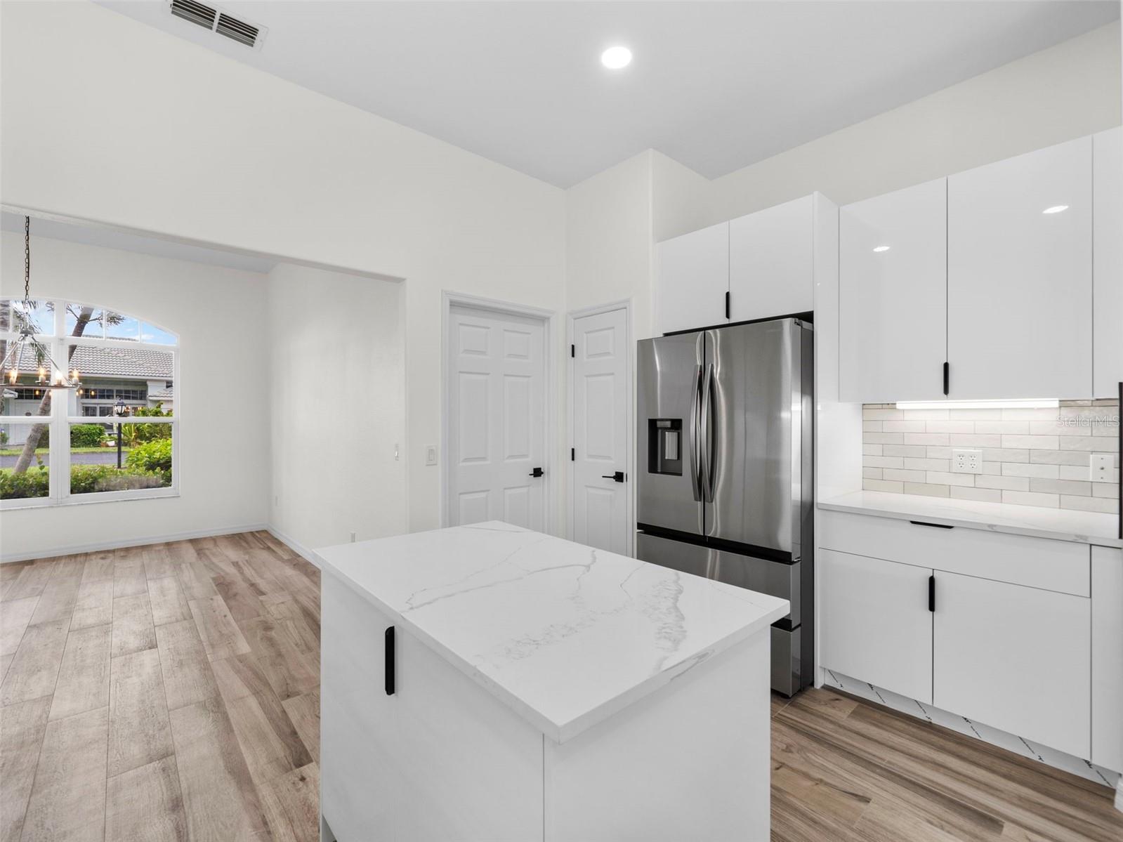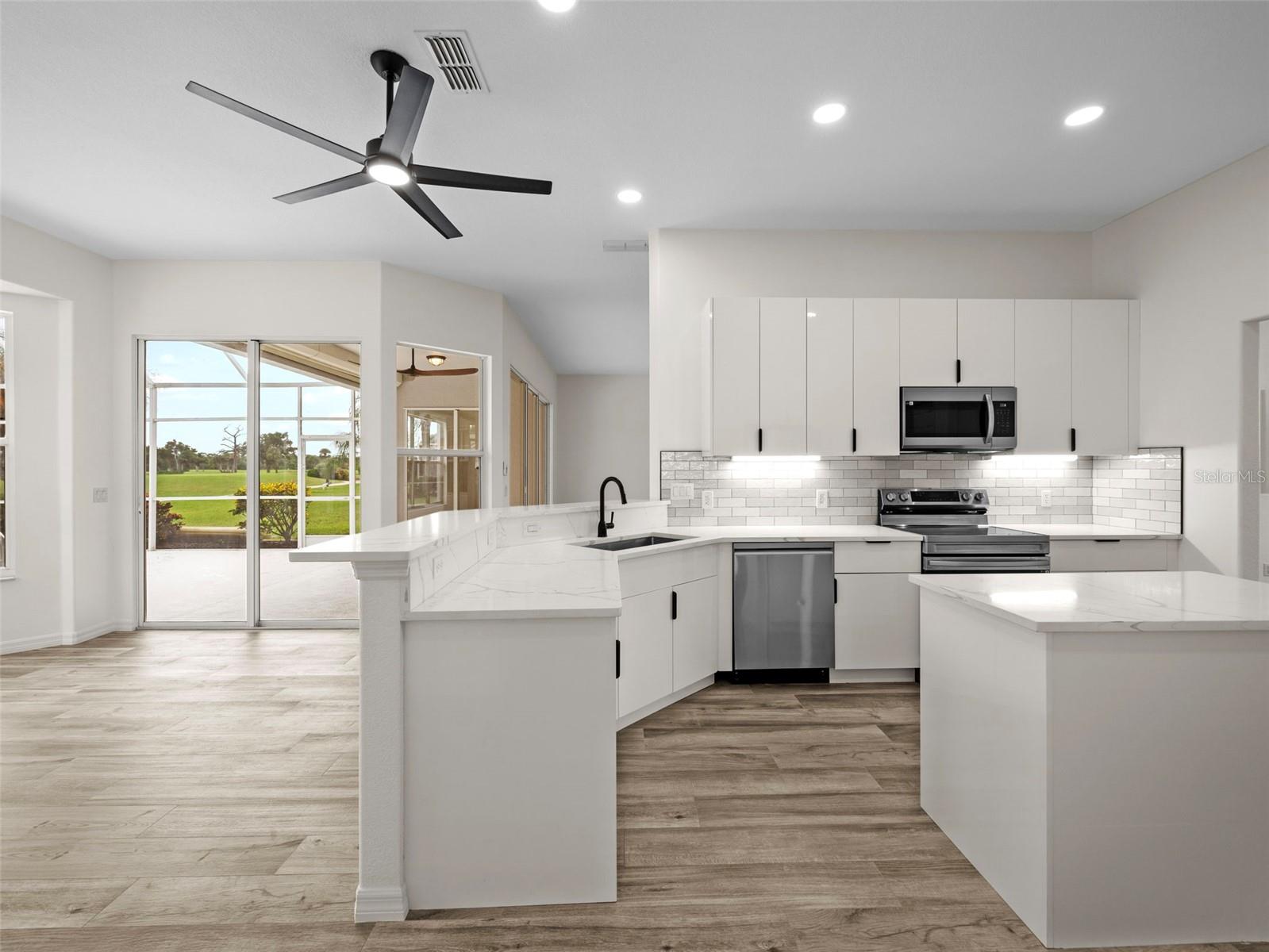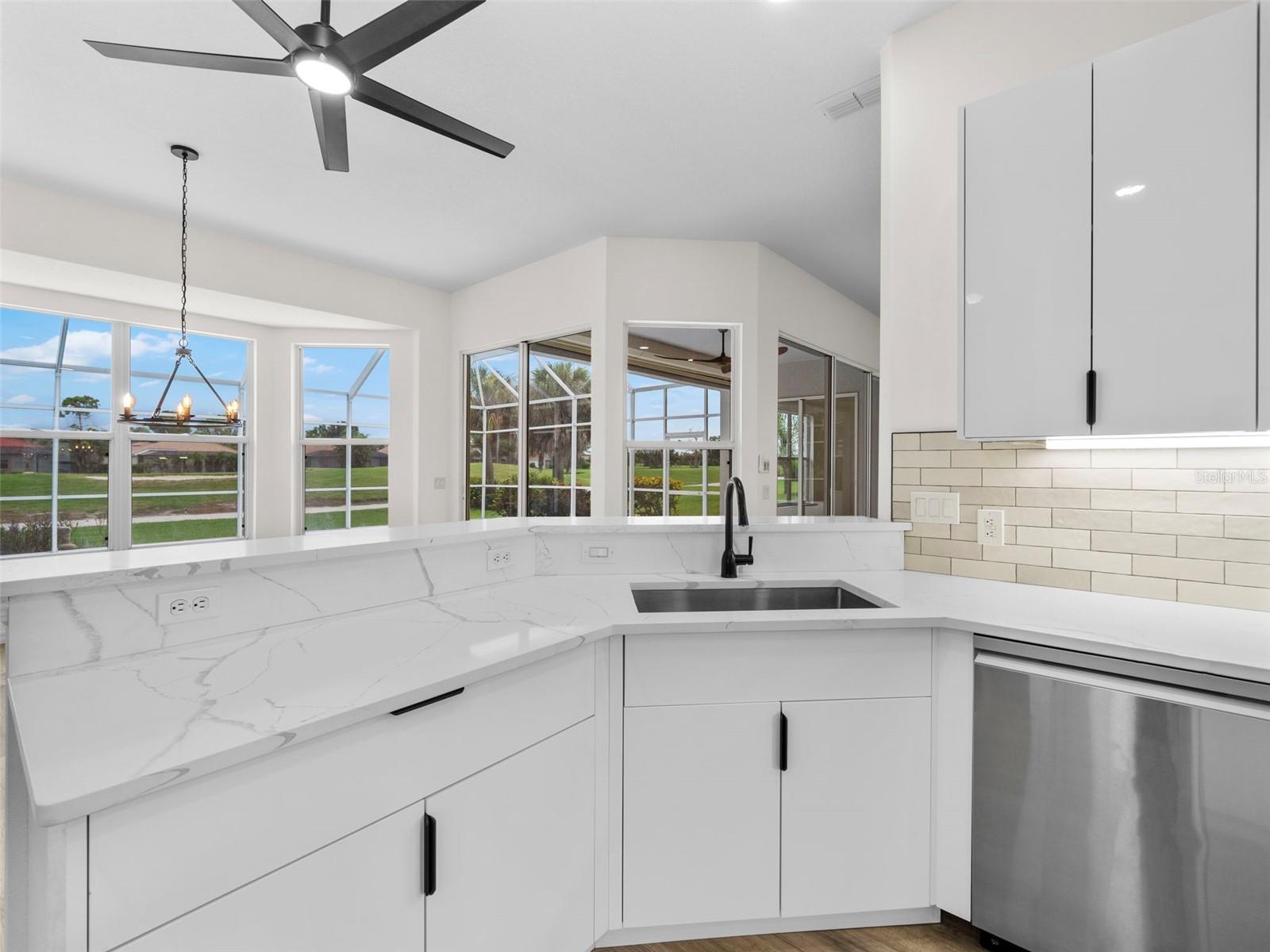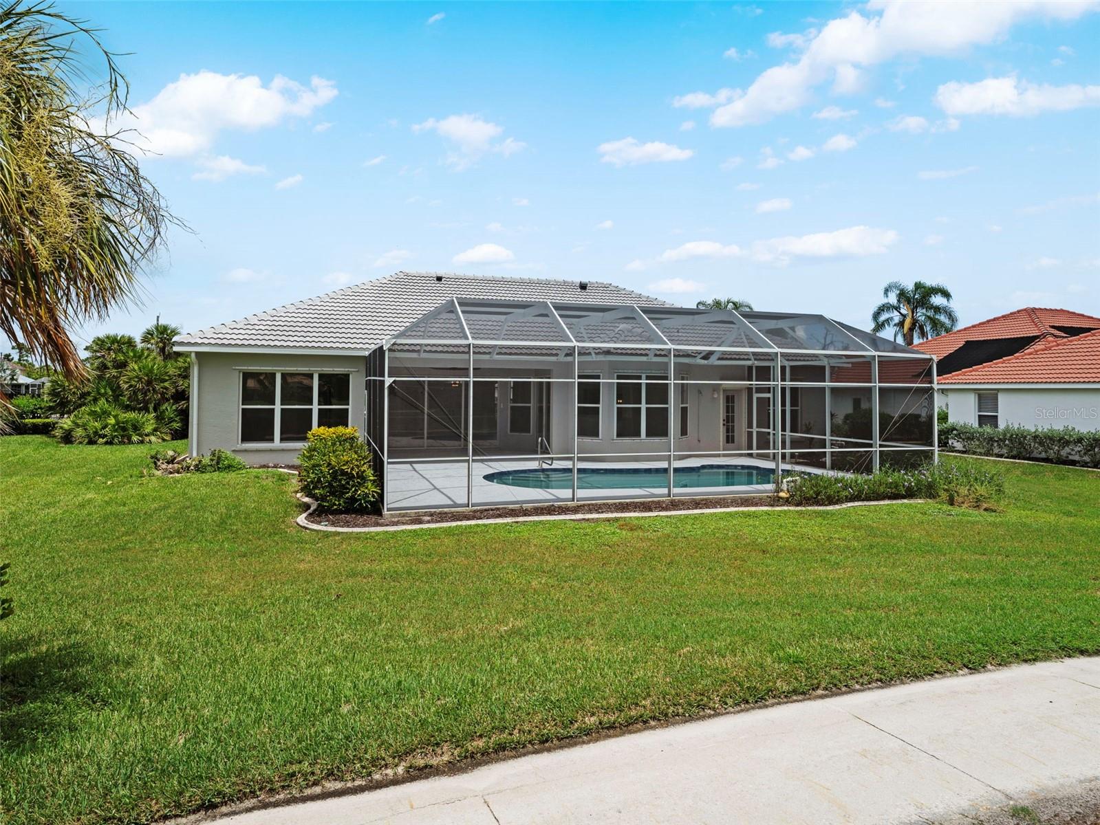 (Motivated Seller) Tranquil living in this 20 unit gated enclave in Burnt Store Marina! This 3-bedroom plus a den), 2-bath home enjoys all the amenities of the Marina and has a in-ground pool, lanai, view of the golf course, and a northern exposure allowing you to enjoy the rising and setting sun. As you walk through the front door you have access to the den/office or 4th bedroom. The kitchen was remodeled with quartz countertops, modern cabinets, stainless steel appliances. A breakfast/dining area is extended with a bay and windows for additional golf views and has double sliders to the lanai. There are cathedral ceilings in the living room, a triple slider that opens for full access to the lanai. A large master bedroom with access to the extended lanai, has walk-in closets, a large bath with double sinks, a separate tub, shower. There is also an interior laundry room with a laundry sink! Wood look tile floor installed through out the house. Other Marina amenities available for an additional fee include a 27-hole golf course, tennis, pickleball, fitness center, Trading Post deli/market, Yacht & Activity clubs. Burnt Store Marina is the largest deep-water Marina in Southwest Florida. The Marina also features 2 restaurants, Cass Cay and the Links Café. Call today for your private showing and start living the maintenance-free lifestyle of Burnt Store Marina! NEW ROOF 2024 (Check out the 3D Virtual Tour)