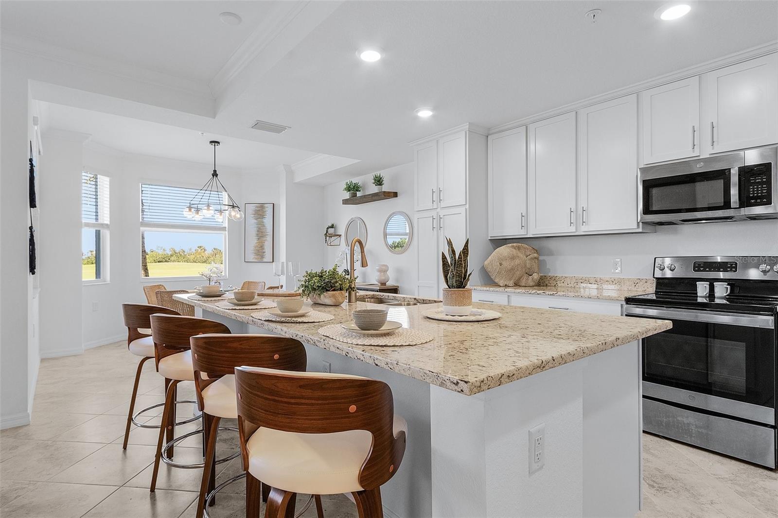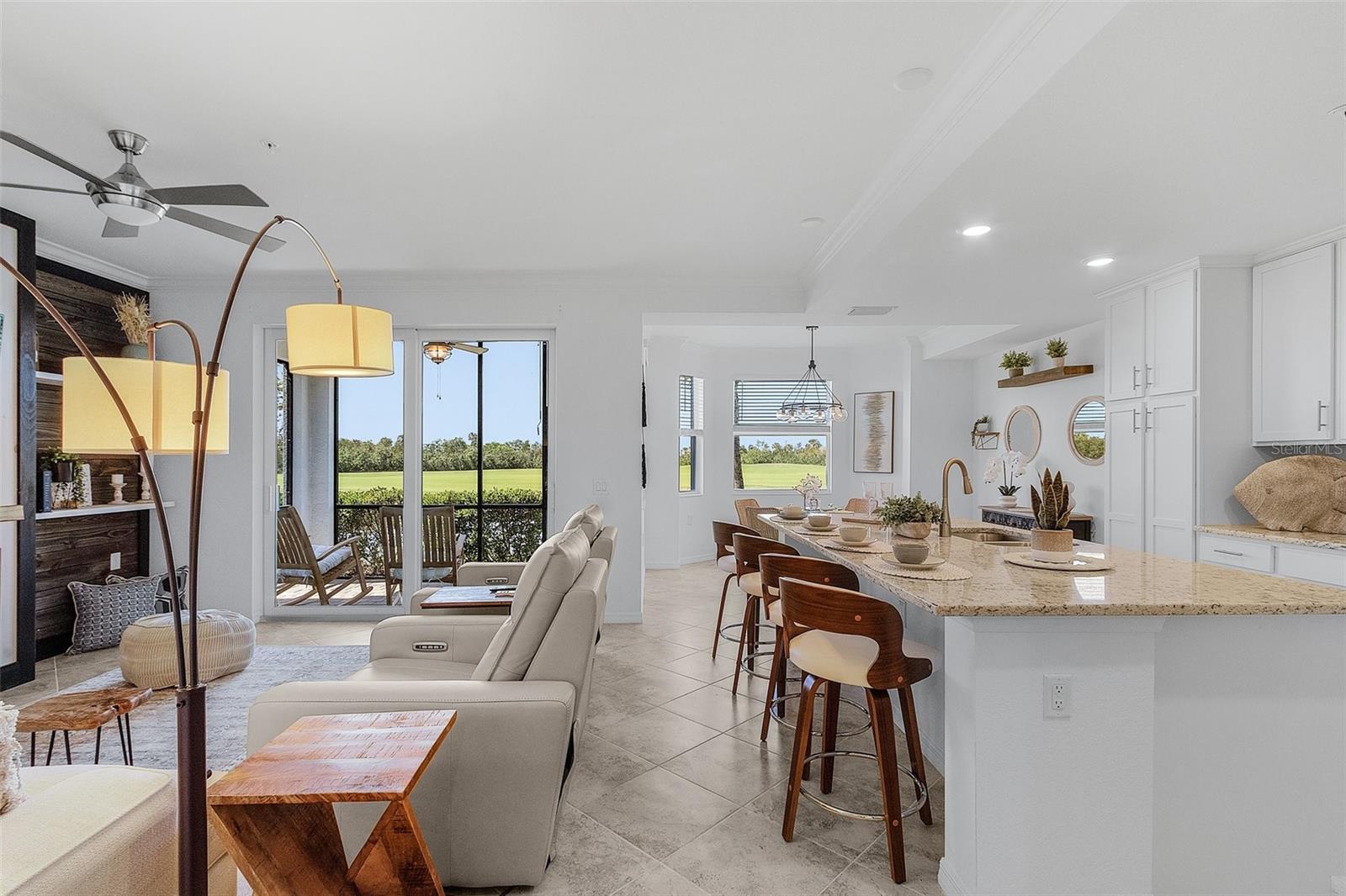 TURNKEY LUXURY CONDO WITH GOLF MEMBERSHIP – BREATHTAKING SUNSET VIEWS! Indulge in the ultimate resort-style living with this exquisitely furnished, move-in-ready Arbor model condo in Heritage Landing Golf & Country Club. Perfectly positioned just across from the community pool, this stunning 2-bedroom, 2-bath retreat offers unparalleled sunset views over the tranquil lake and the 11th hole of the championship golf course—a breathtaking backdrop for your Florida lifestyle. Step inside to discover an elegant open-concept design that seamlessly blends the living, dining, and kitchen spaces—ideal for effortless entertaining or serene relaxation. The chef’s kitchen is beautifully appointed with granite countertops, rich wood cabinetry, stainless steel appliances, a spacious pantry, and an oversized island with a breakfast bar. The primary suite is a true sanctuary, featuring a walk-in closet and a spa-inspired en suite bathroom with a custom-tiled shower. A versatile second bedroom offers an inviting space for guests or a home office, while a dedicated laundry room with washer and dryer adds to the home’s convenience. Enjoy the epitome of Florida luxury with resort-style amenities that include a heated pool and spa, a state-of-the-art fitness center, a full-service spa (massages, manicures, pedicures), tennis and pickleball courts, a tiki bar with live entertainment, and miles of scenic walking and biking trails. Plus, the private, gated community offers 24-hour security and lushly landscaped grounds. Situated near pristine beaches, premier golf courses, and the charming waterfront town of Punta Gorda, this exclusive community provides easy access to local waterways, public boat ramps, and the Gulf of Mexico. With the included golf membership, you’ll enjoy the privilege of playing one of Florida’s most sought-after courses—an amenity reserved only for golf membership homeowners. This is more than a home—it’s a lifestyle. Don’t miss your opportunity to own this luxurious, turnkey retreat in Heritage Landing!