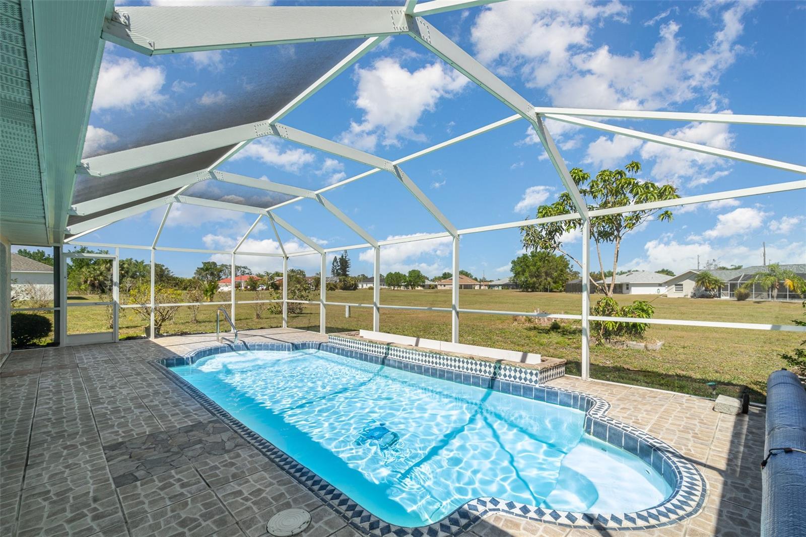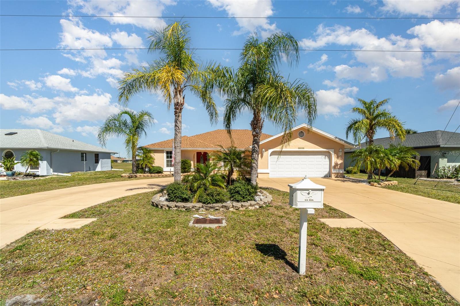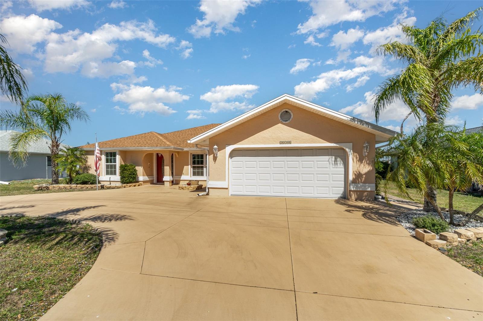 Enjoy the radiant Florida lifestyle in this stunning home. A graceful circular drive welcomes you to your tropical paradise getaway. As you step inside through the entry, you will discover a splendid 3 bedroom, 2.5 bath home adorned with exquisite crown moldings throughout. The kitchen features elegant Prestige Hardwood cabinets, granite countertops, and stainless-steel appliances that invite culinary creativity. The master ensuite is a private retreat, complete with two walk-in closets, a walk-in shower, and a luxurious jetted tub perfect for unwinding. When you step outside to your covered lanai, you are greeted by the tranquil sight of a fiberglass heated pool, creating an oasis of relaxation. You have a pool cage that ensures endless enjoyment throughout the year. The screened garage offers versatile space for living, accommodating all your needs. The pool cage and roof were newly installed in 2022. This property is nestled in the deed-restricted Deep Creek neighborhood, well clear of the flood zone and untouched by Hurricane Ian. Located just minutes away from Fisherman’s Village, the local community park, a nearby boat ramp for harbor access, and the vibrant downtown Punta Gorda, this home offers you a life of leisure, relaxation, and entertainment amidst natural beauty.