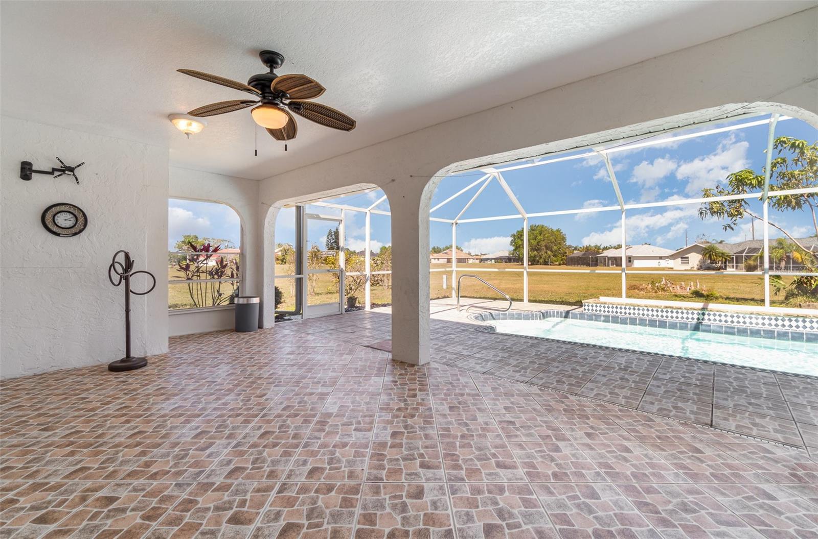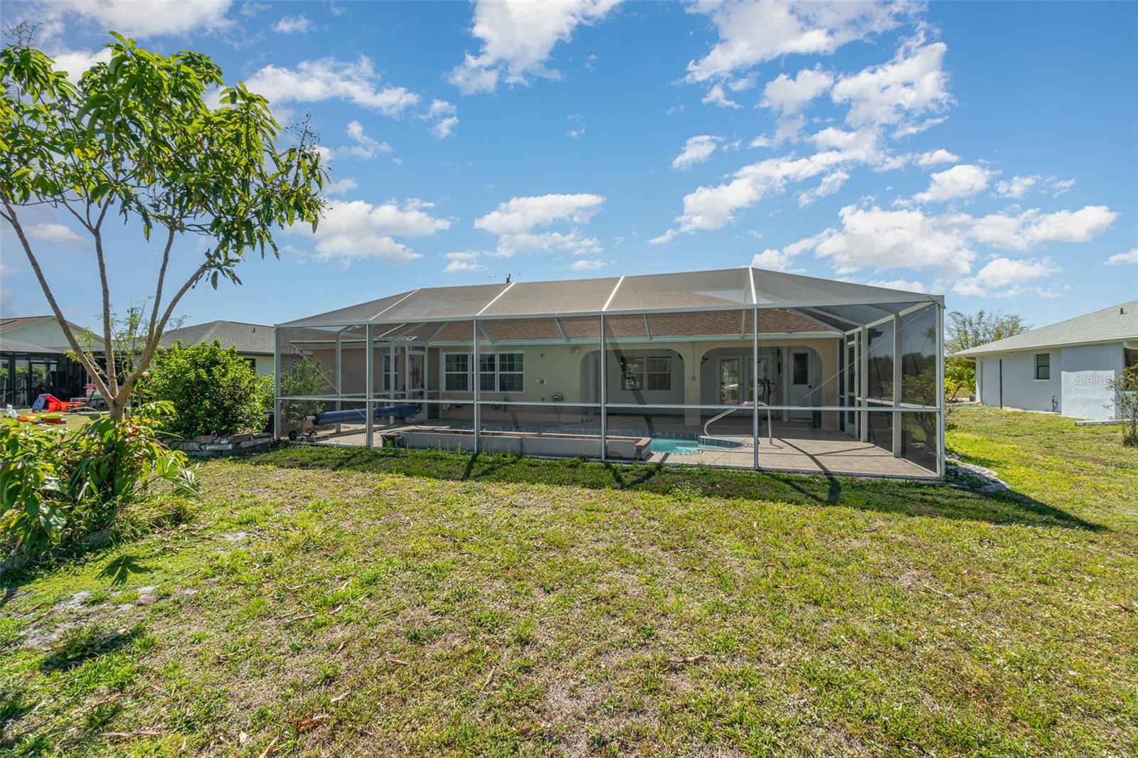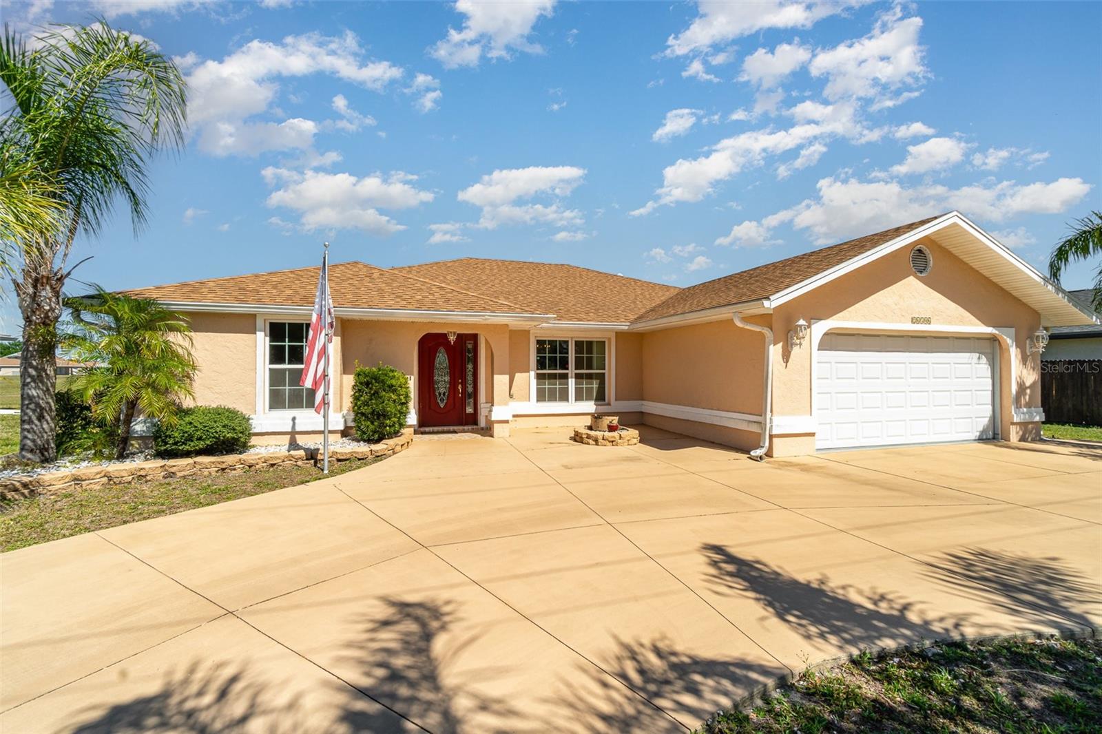 Enjoy the radiant Florida lifestyle in this stunning home. A graceful circular drive welcomes you to your tropical paradise getaway. As you step inside through the entry, you will discover a splendid 3 bedroom, 2.5 bath home adorned with exquisite crown moldings throughout. The kitchen features elegant Prestige Hardwood cabinets, granite countertops, and stainless-steel appliances that invite culinary creativity. The master ensuite is a private retreat, complete with two walk-in closets, a walk-in shower, and a luxurious jetted tub perfect for unwinding. When you step outside to your covered lanai, you are greeted by the tranquil sight of a fiberglass heated pool, creating an oasis of relaxation. You have a pool cage that ensures endless enjoyment throughout the year. The screened garage offers versatile space for living, accommodating all your needs. The pool cage and roof were newly installed in 2022. This property is nestled in the deed-restricted Deep Creek neighborhood, well clear of the flood zone and untouched by Hurricane Ian. Located just minutes away from Fisherman’s Village, the local community park, a nearby boat ramp for harbor access, and the vibrant downtown Punta Gorda, this home offers you a life of leisure, relaxation, and entertainment amidst natural beauty.