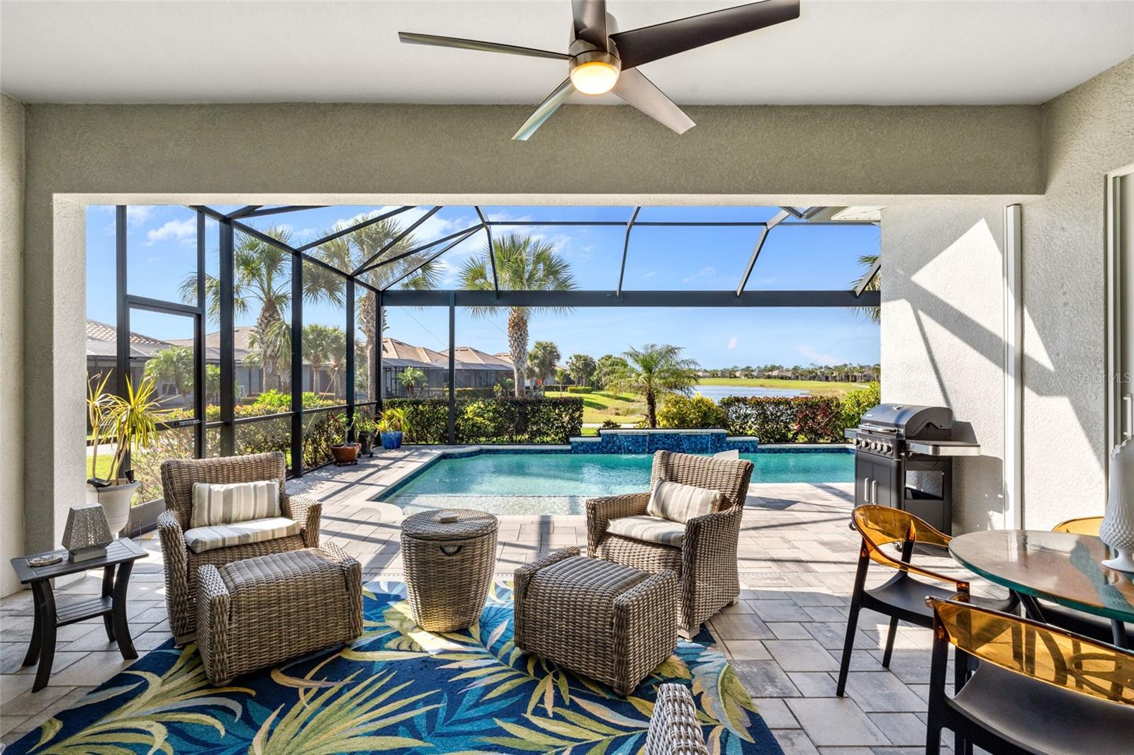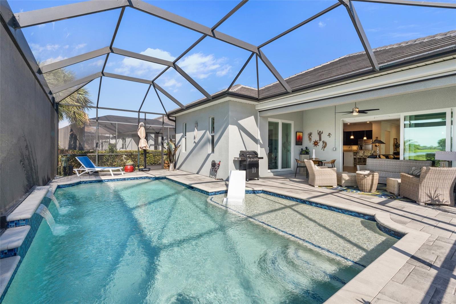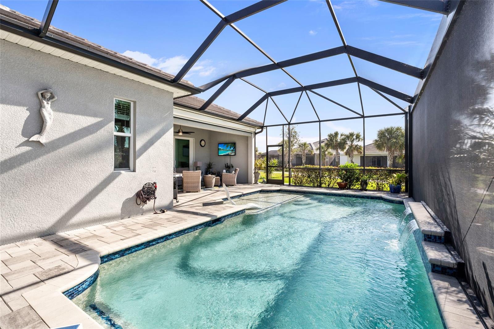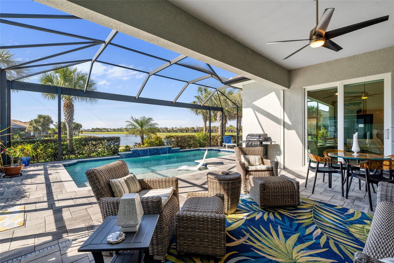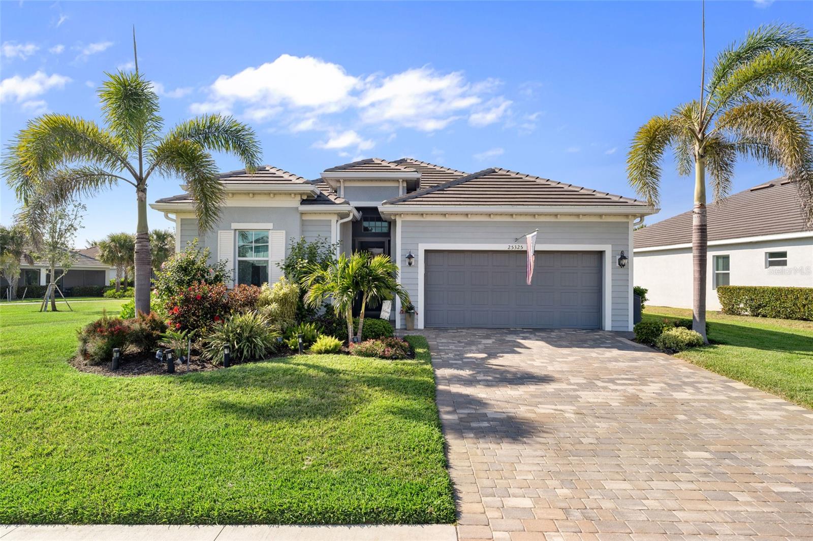 Upgrades deluxe in this home located in the gated Heritage Landing Golf & Country Club - a resort-style golf community within the charming town of Punta Gorda. Golfers will delight with the golf membership included with the home purchase as they get to play on a Gordon G. Lewis-designed private course, it's as visually stunning as it is challenging. The home, built in 2020, has only had one owner, who spared no expense to customize it for stress-free living. As you enter through the screened entrance, you will immediately notice the neutral plank tile floor installed throughout the home. All the rooms also have new ceiling fans as well as the premium light fixture package. The kitchen, with ample storage & a walk-in pantry, maintains a sleek and modern design offset by cool stainless-steel appliances and a large center island. All 3 bedrooms have their own full bath, one guest room with a tub/shower combo, while the 2nd guest & primary bedrooms have walk-in showers. The spacious great room & dining rooms have tray ceilings & upgraded crown moldings. The home radiates light with its stacking sliders opening into a sumptuous outdoor retreat featuring a picture window cage overlooking the 16th Fairway & Lake. The large custom salt-water pool, finished in 2021, is equipped with an electric heat pump and a self-monitoring underground autofill system - you will never again sully your view with a hose in the pool! The pool shell and pool finish also have Lifetime Warranties. A relaxing, lighted waterfall and Sunshelf with a Color Vision bubbler will keep you refreshed while you enjoy the morning sun. Tired of basking in the sun? Simply retreat to the lanai with its convenient motorized sun-screen, capable of withstanding impacts up to 45-mph. Plus, not only will you be protected from nasty sunburns, all of your systems and appliances are protected from mineral build-up with the whole house water-softening system. Adding to your peace-of-mind is the Smart Home system available with the home - it's WIFI capable, controlling such features as door locks, the RING doorbell, appliances, the pool systems, etc. Storms won't be a problem either with impact-resistant windows and doors, a hurricane-rated pool frame (up to 179 mph) and a whole house surge protector. This worry-free lifestyle extends throughout the whole community and is like no other in Punta Gorda - in addition to the golf membership, homeowners will have access to a full array of athletic activities starting with a resort-style pool with gradual entry and lap lanes (plus 2 smaller satellite pools), 5 lighted clay tennis courts, 6 pickleball and bocce ball courts and a fully-equipped 24-hr fitness center and aerobics room. If an active lifestyle doesn't suit you, the relaxed atmosphere of the community will entice you. You will have access to a state-of-the-art clubhouse with thriving social gatherings, 3 on-site restaurants, 2 full-service bars and a full-service spa.