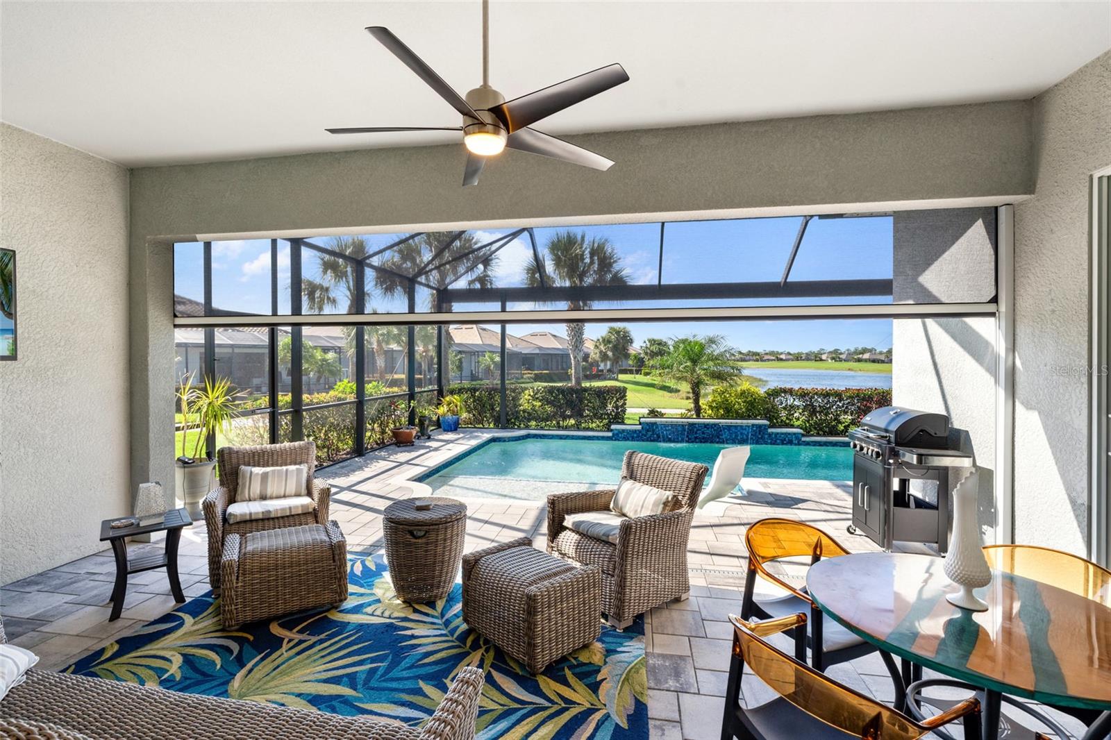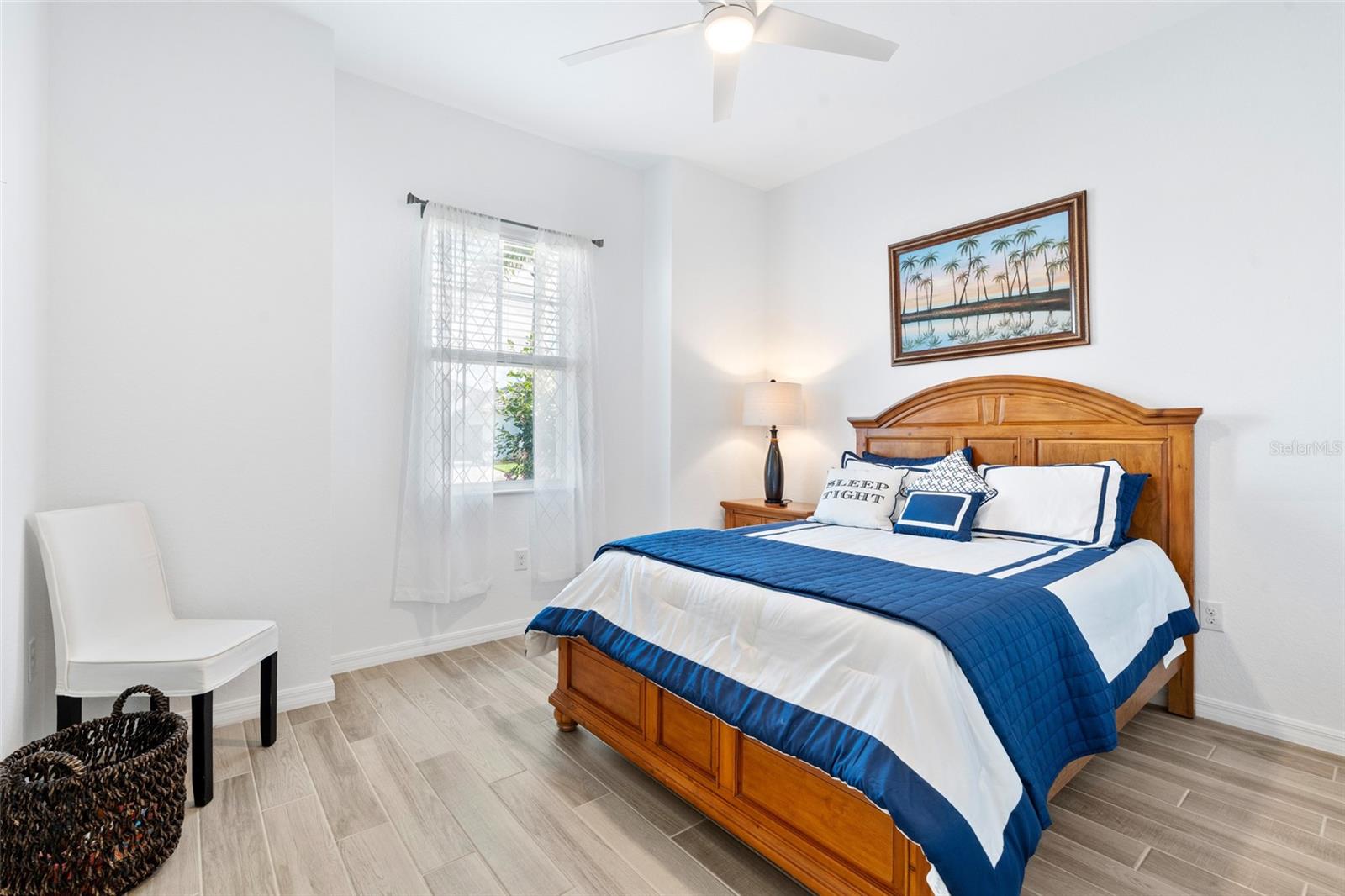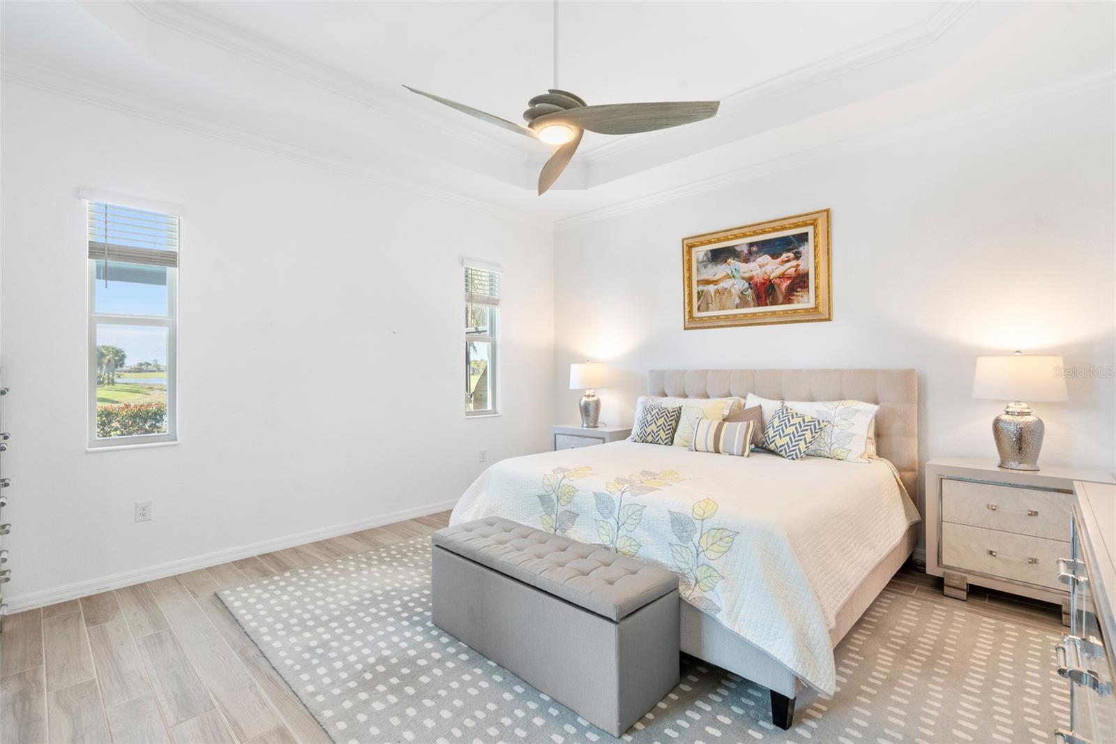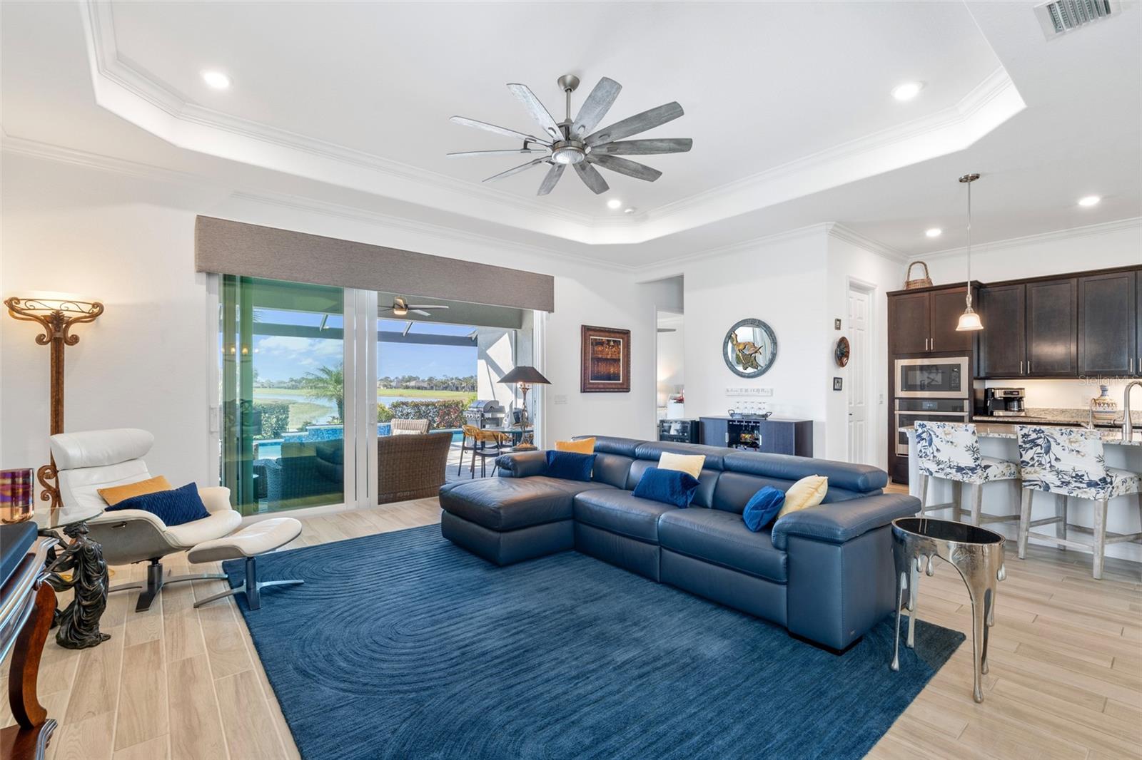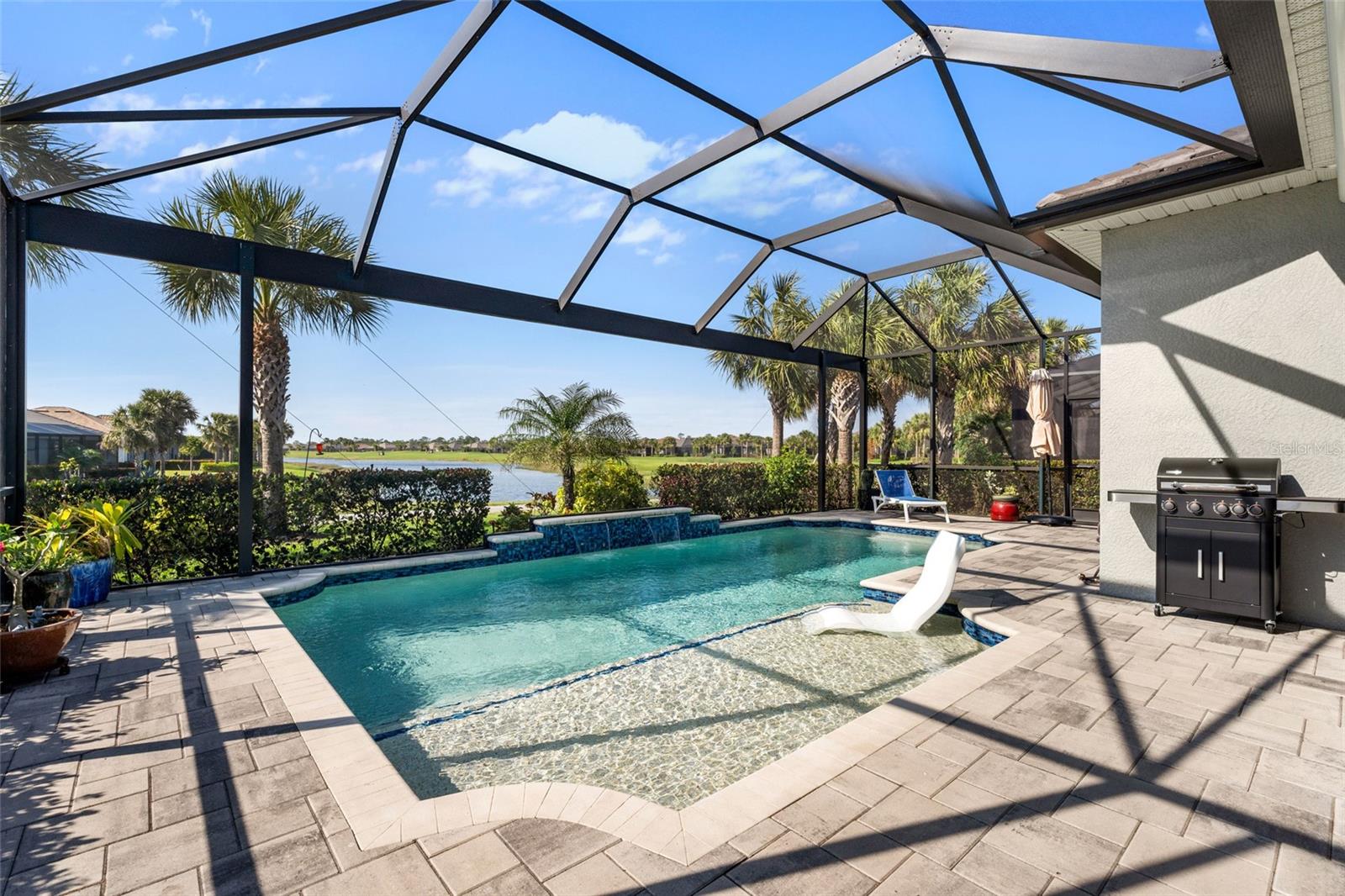 Upgrades deluxe in this home located in the gated Heritage Landing Golf & Country Club - a resort-style golf community within the charming town of Punta Gorda. Golfers will delight with the golf membership included with the home purchase as they get to play on a Gordon G. Lewis-designed private course, it's as visually stunning as it is challenging. The home, built in 2020, has only had one owner, who spared no expense to customize it for stress-free living. As you enter through the screened entrance, you will immediately notice the neutral plank tile floor installed throughout the home. All the rooms also have new ceiling fans as well as the premium light fixture package. The kitchen, with ample storage & a walk-in pantry, maintains a sleek and modern design offset by cool stainless-steel appliances and a large center island. All 3 bedrooms have their own full bath, one guest room with a tub/shower combo, while the 2nd guest & primary bedrooms have walk-in showers. The spacious great room & dining rooms have tray ceilings & upgraded crown moldings. The home radiates light with its stacking sliders opening into a sumptuous outdoor retreat featuring a picture window cage overlooking the 16th Fairway & Lake. The large custom salt-water pool, finished in 2021, is equipped with an electric heat pump and a self-monitoring underground autofill system - you will never again sully your view with a hose in the pool! The pool shell and pool finish also have Lifetime Warranties. A relaxing, lighted waterfall and Sunshelf with a Color Vision bubbler will keep you refreshed while you enjoy the morning sun. Tired of basking in the sun? Simply retreat to the lanai with its convenient motorized sun-screen, capable of withstanding impacts up to 45-mph. Plus, not only will you be protected from nasty sunburns, all of your systems and appliances are protected from mineral build-up with the whole house water-softening system. Adding to your peace-of-mind is the Smart Home system available with the home - it's WIFI capable, controlling such features as door locks, the RING doorbell, appliances, the pool systems, etc. Storms won't be a problem either with impact-resistant windows and doors, a hurricane-rated pool frame (up to 179 mph) and a whole house surge protector. This worry-free lifestyle extends throughout the whole community and is like no other in Punta Gorda - in addition to the golf membership, homeowners will have access to a full array of athletic activities starting with a resort-style pool with gradual entry and lap lanes (plus 2 smaller satellite pools), 5 lighted clay tennis courts, 6 pickleball and bocce ball courts and a fully-equipped 24-hr fitness center and aerobics room. If an active lifestyle doesn't suit you, the relaxed atmosphere of the community will entice you. You will have access to a state-of-the-art clubhouse with thriving social gatherings, 3 on-site restaurants, 2 full-service bars and a full-service spa.
