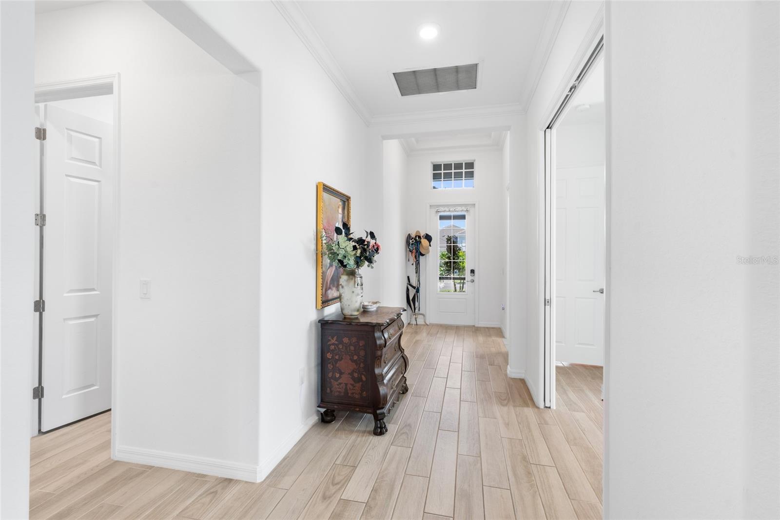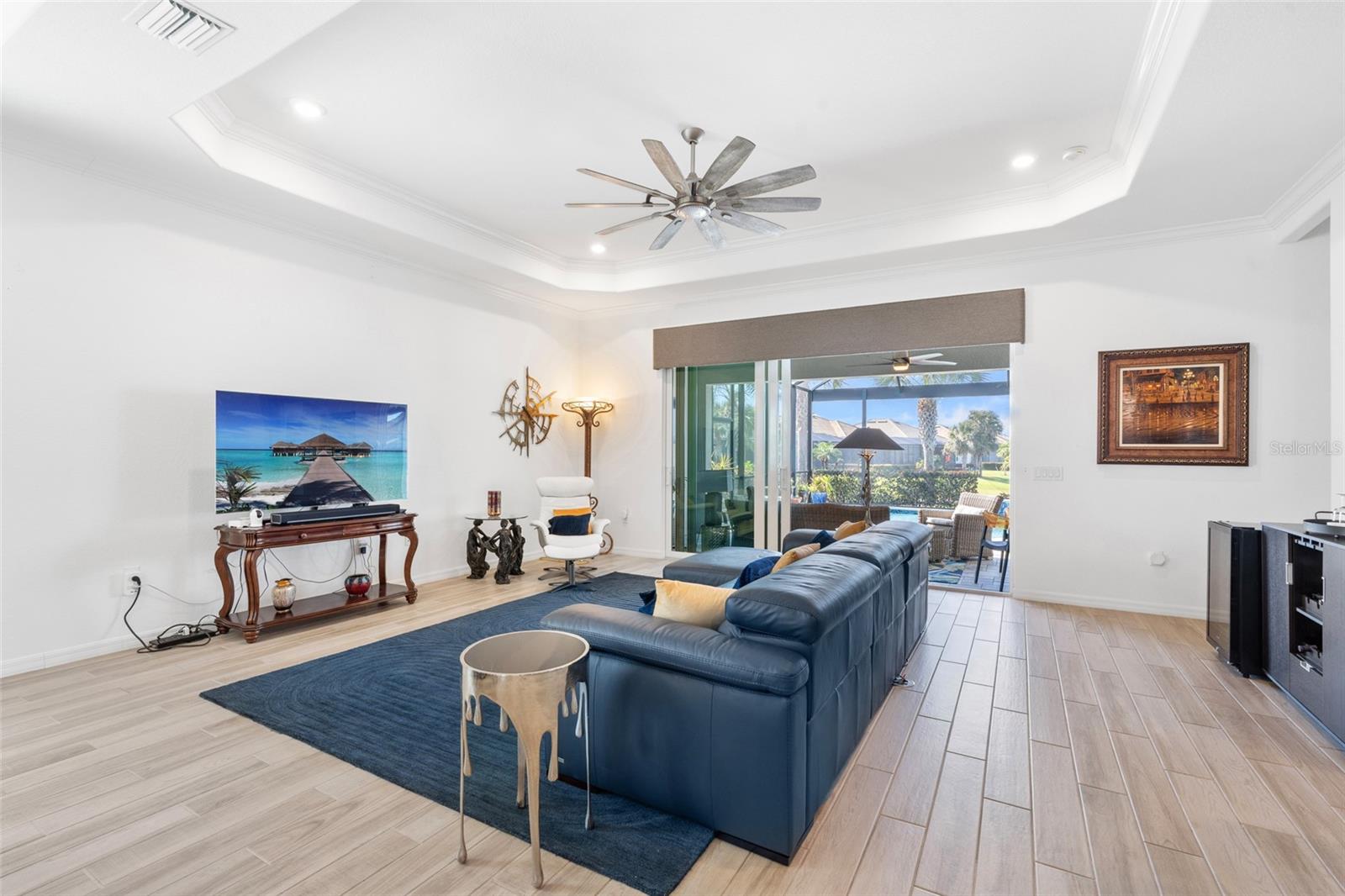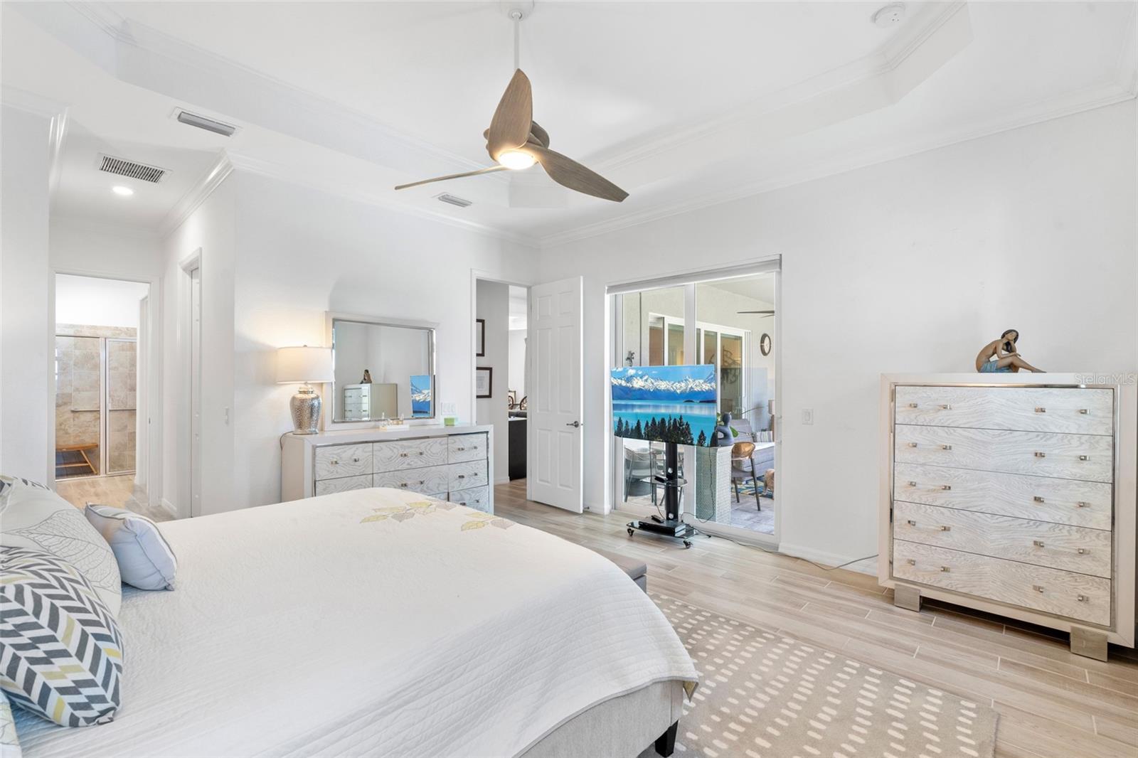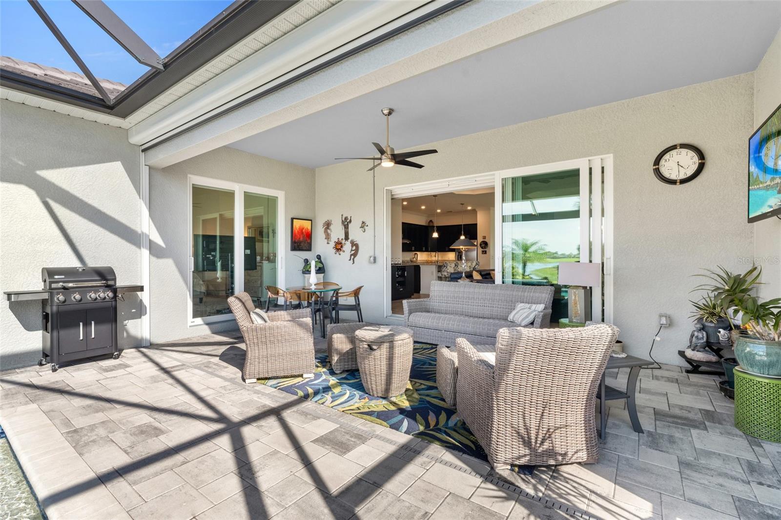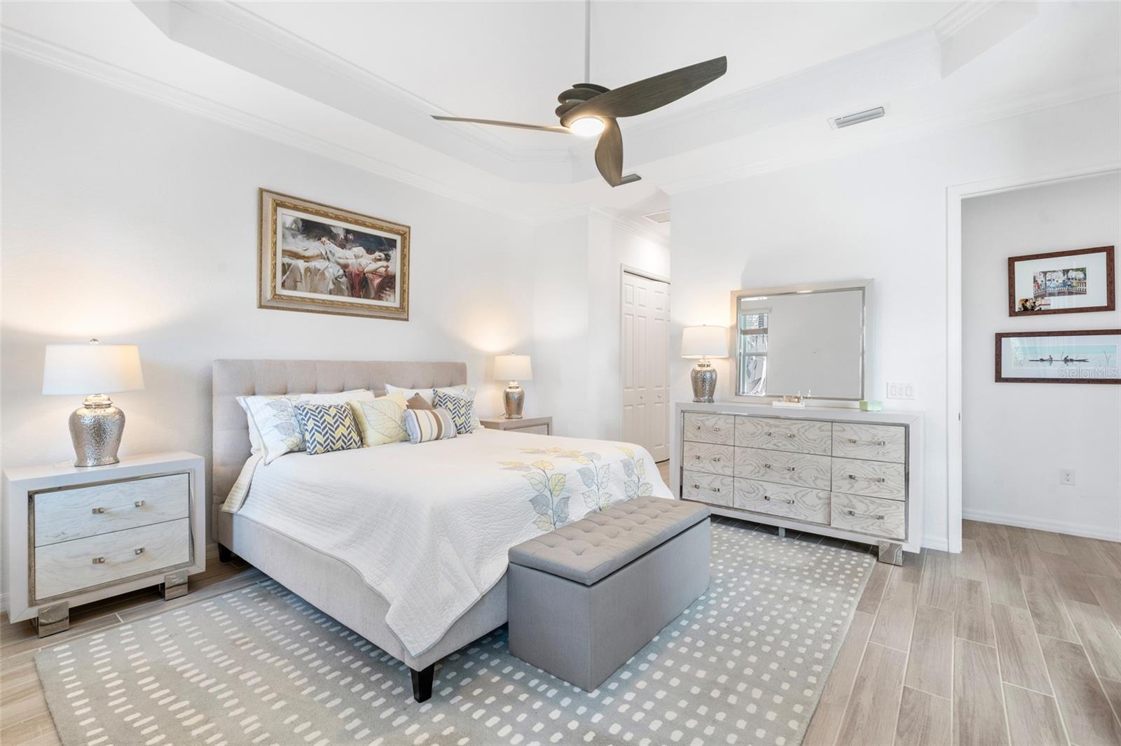 Upgrades deluxe in this home located in the gated Heritage Landing Golf & Country Club - a resort-style golf community within the charming town of Punta Gorda. Golfers will delight with the golf membership included with the home purchase as they get to play on a Gordon G. Lewis-designed private course, it's as visually stunning as it is challenging. The home, built in 2020, has only had one owner, who spared no expense to customize it for stress-free living. As you enter through the screened entrance, you will immediately notice the neutral plank tile floor installed throughout the home. All the rooms also have new ceiling fans as well as the premium light fixture package. The kitchen, with ample storage & a walk-in pantry, maintains a sleek and modern design offset by cool stainless-steel appliances and a large center island. All 3 bedrooms have their own full bath, one guest room with a tub/shower combo, while the 2nd guest & primary bedrooms have walk-in showers. The spacious great room & dining rooms have tray ceilings & upgraded crown moldings. The home radiates light with its stacking sliders opening into a sumptuous outdoor retreat featuring a picture window cage overlooking the 16th Fairway & Lake. The large custom salt-water pool, finished in 2021, is equipped with an electric heat pump and a self-monitoring underground autofill system - you will never again sully your view with a hose in the pool! The pool shell and pool finish also have Lifetime Warranties. A relaxing, lighted waterfall and Sunshelf with a Color Vision bubbler will keep you refreshed while you enjoy the morning sun. Tired of basking in the sun? Simply retreat to the lanai with its convenient motorized sun-screen, capable of withstanding impacts up to 45-mph. Plus, not only will you be protected from nasty sunburns, all of your systems and appliances are protected from mineral build-up with the whole house water-softening system. Adding to your peace-of-mind is the Smart Home system available with the home - it's WIFI capable, controlling such features as door locks, the RING doorbell, appliances, the pool systems, etc. Storms won't be a problem either with impact-resistant windows and doors, a hurricane-rated pool frame (up to 179 mph) and a whole house surge protector. This worry-free lifestyle extends throughout the whole community and is like no other in Punta Gorda - in addition to the golf membership, homeowners will have access to a full array of athletic activities starting with a resort-style pool with gradual entry and lap lanes (plus 2 smaller satellite pools), 5 lighted clay tennis courts, 6 pickleball and bocce ball courts and a fully-equipped 24-hr fitness center and aerobics room. If an active lifestyle doesn't suit you, the relaxed atmosphere of the community will entice you. You will have access to a state-of-the-art clubhouse with thriving social gatherings, 3 on-site restaurants, 2 full-service bars and a full-service spa.