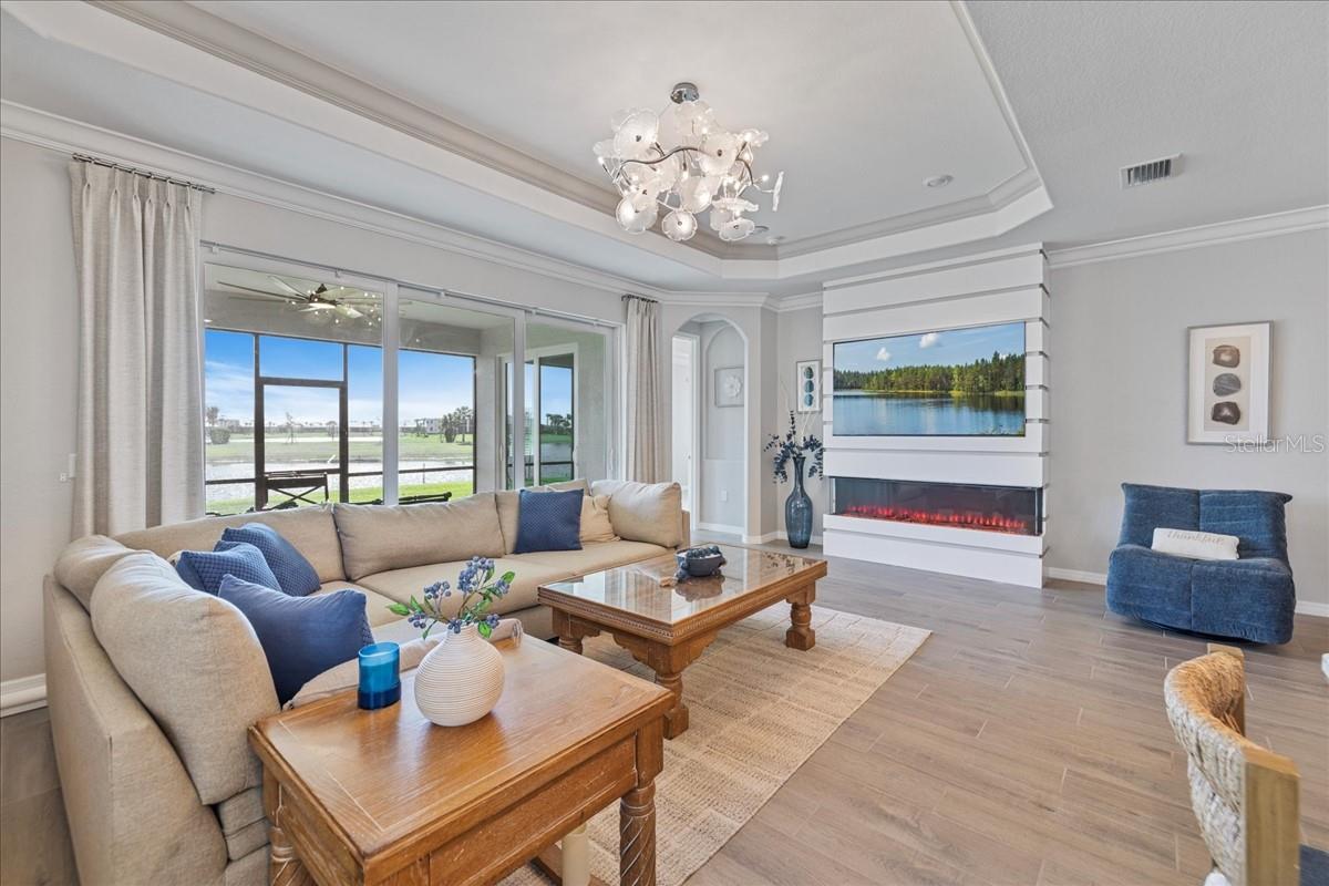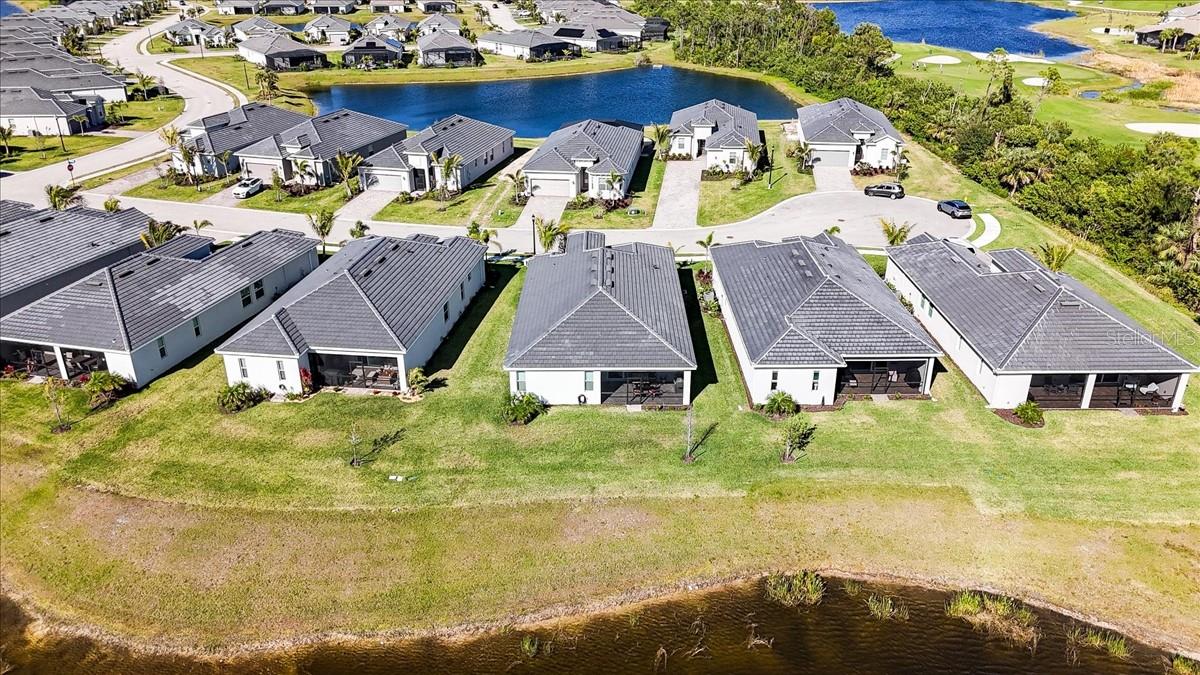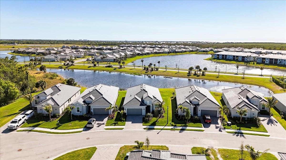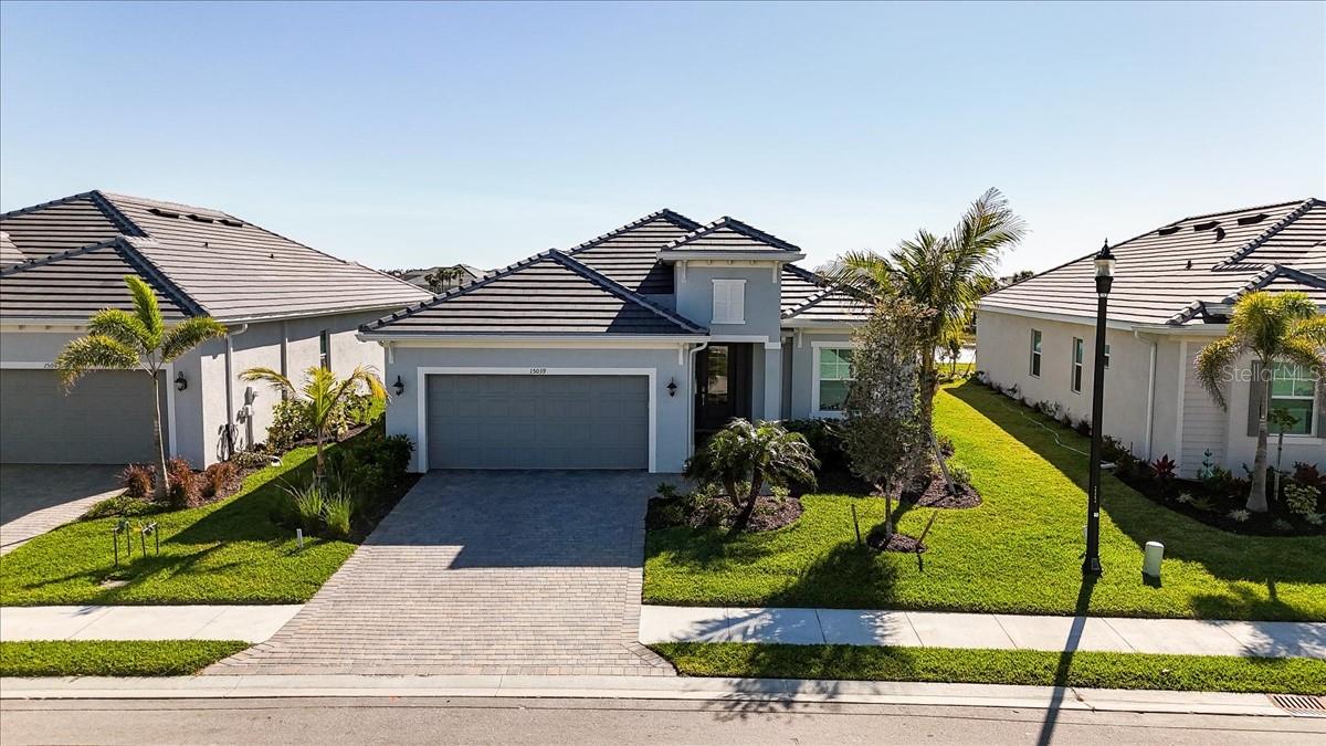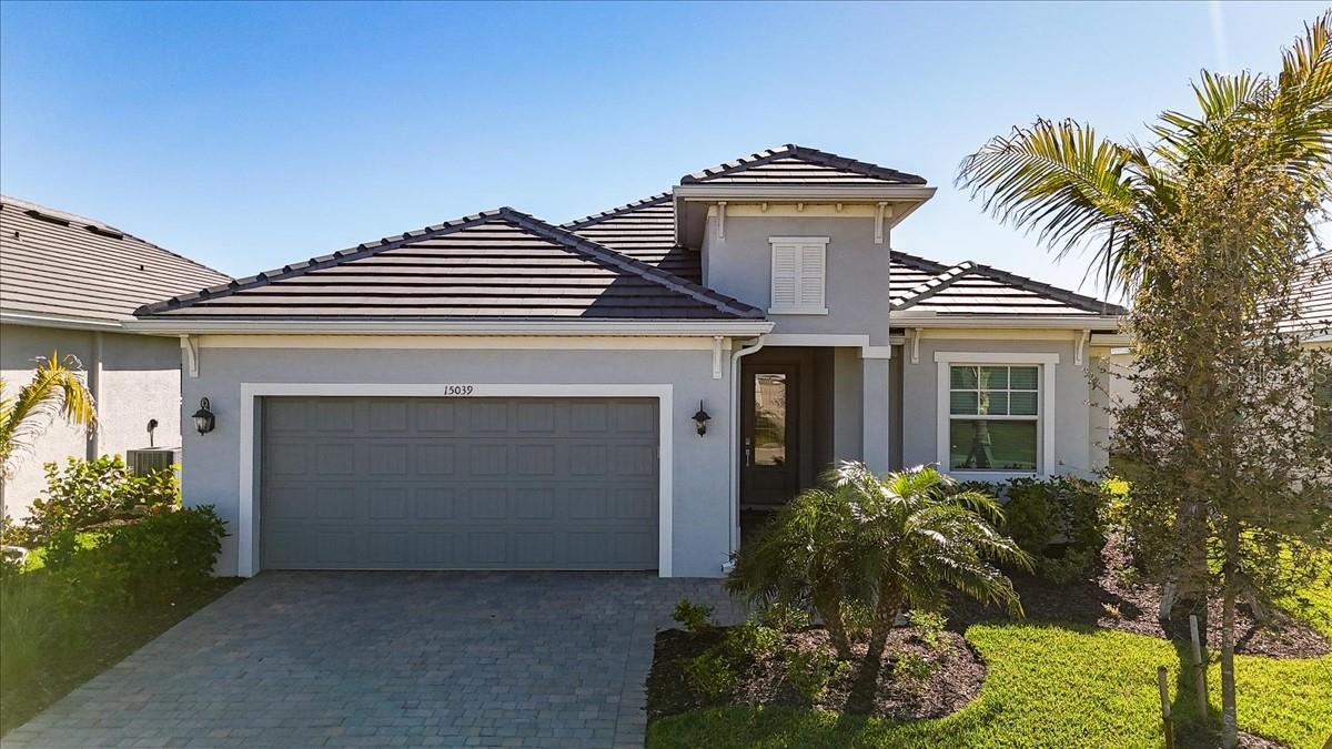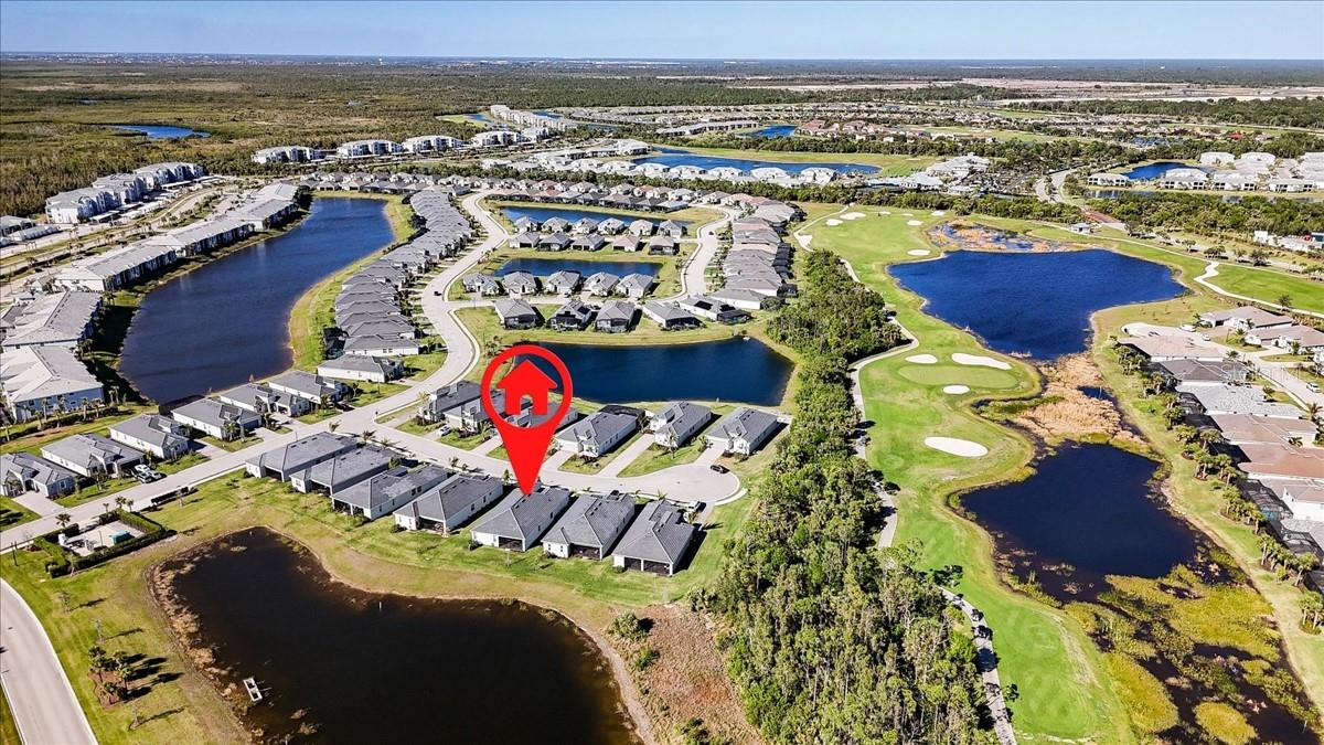 Highly customized, better than new and barely lived in waterfront, spacious, 3 bedroom plus den, 2 bathroom home with designer upgrades including; crown molding, custom electric fireplace with TV, designer high-end light fixtures, custom window coverings, all tile (no carpet), and epoxy garage. Just over 2,000 square feet under air home with hurricane impact windows and doors on an extra large lot! This home is NOT in a flood zone. The serene Water views and daily sunsets are the perfect backdrop to this very special one of a kind home built in 2024 located in the BRAND NEW Heritage Landing premium luxury community. The low HOA includes a social membership. Amenities include: Pickleball and tennis courts, bocce ball, golf course optional, resort style pool and hot spa, onsite restaurant and bar, full spa, clubhouse, walking trails, weight room and fitness center. Excellent central location with quick access to Punta Gorda airport, I 75, Cape Coral, Fort Myers and Venice/ Venice and ENGLEWOOD beaches . This is a TRUE BEAUTY!