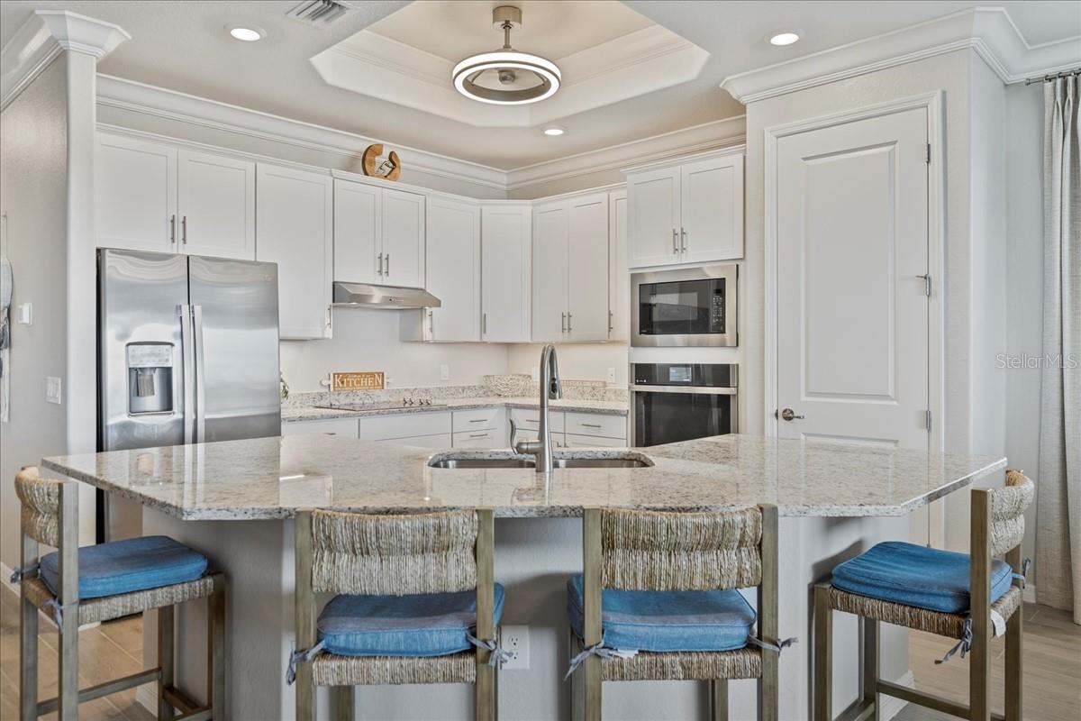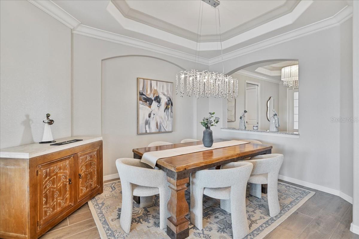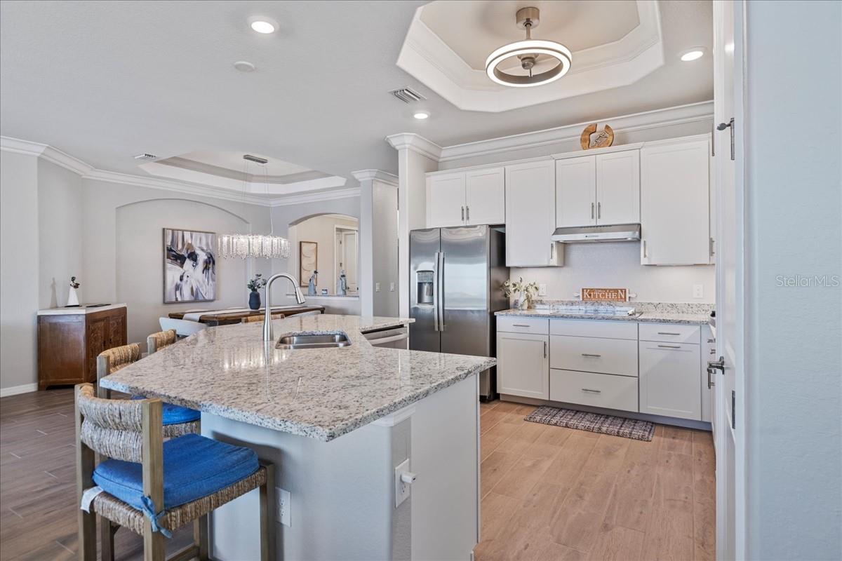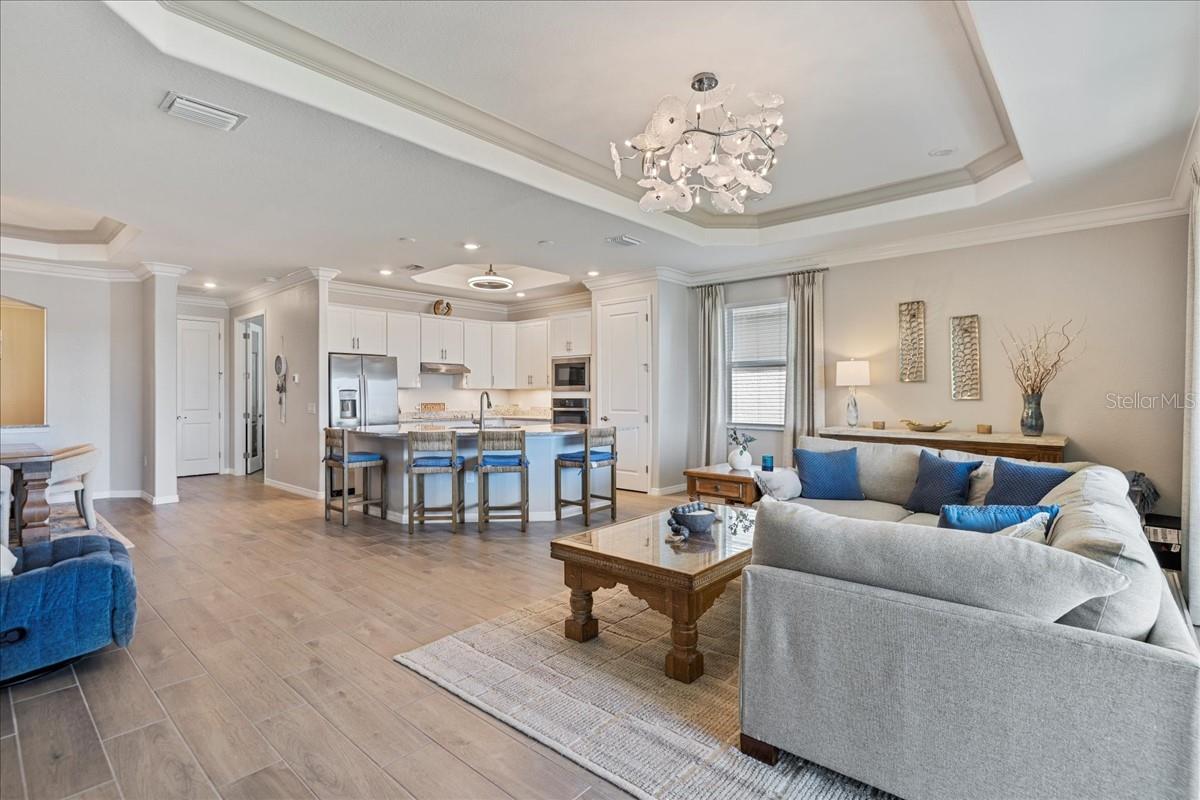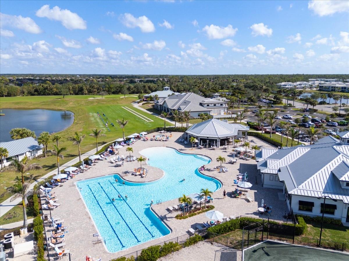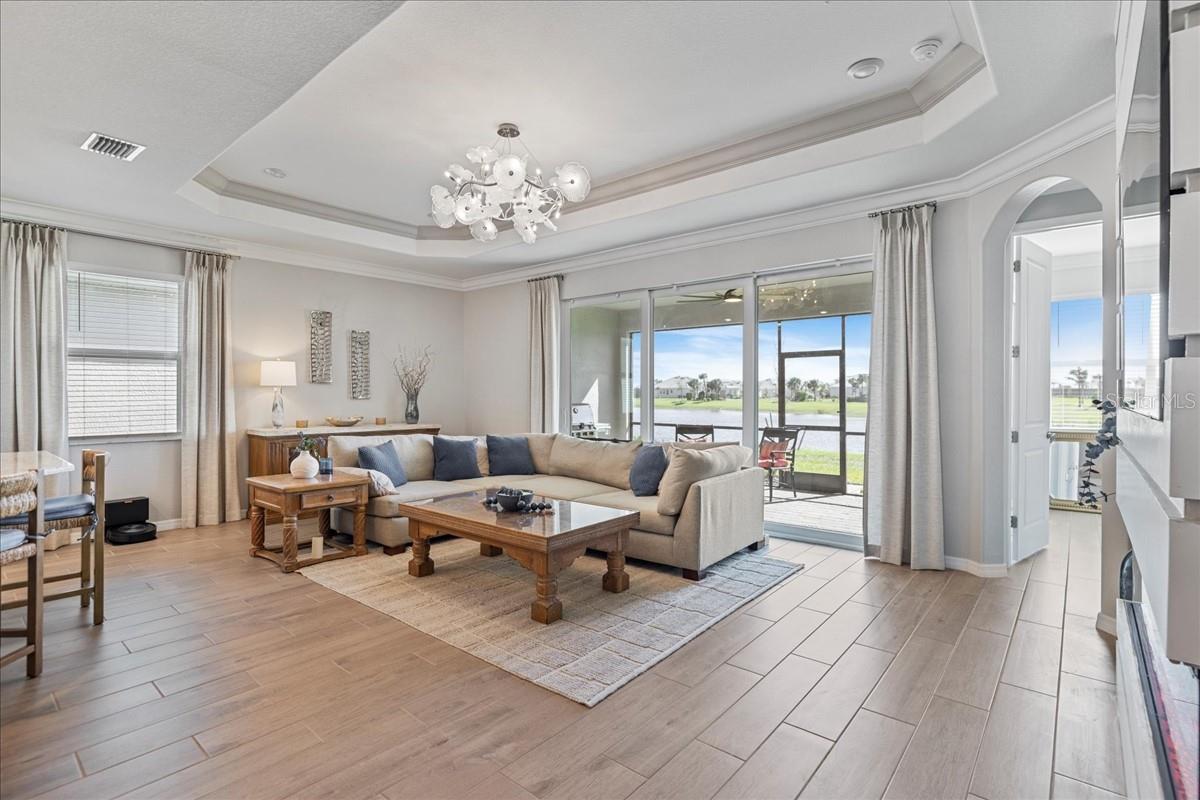 Highly customized, better than new and barely lived in waterfront, spacious, 3 bedroom plus den, 2 bathroom home with designer upgrades including; crown molding, custom electric fireplace with TV, designer high-end light fixtures, custom window coverings, all tile (no carpet), and epoxy garage. Just over 2,000 square feet under air home with hurricane impact windows and doors on an extra large lot! This home is NOT in a flood zone. The serene Water views and daily sunsets are the perfect backdrop to this very special one of a kind home built in 2024 located in the BRAND NEW Heritage Landing premium luxury community. The low HOA includes a social membership. Amenities include: Pickleball and tennis courts, bocce ball, golf course optional, resort style pool and hot spa, onsite restaurant and bar, full spa, clubhouse, walking trails, weight room and fitness center. Excellent central location with quick access to Punta Gorda airport, I 75, Cape Coral, Fort Myers and Venice/ Venice and ENGLEWOOD beaches . This is a TRUE BEAUTY!