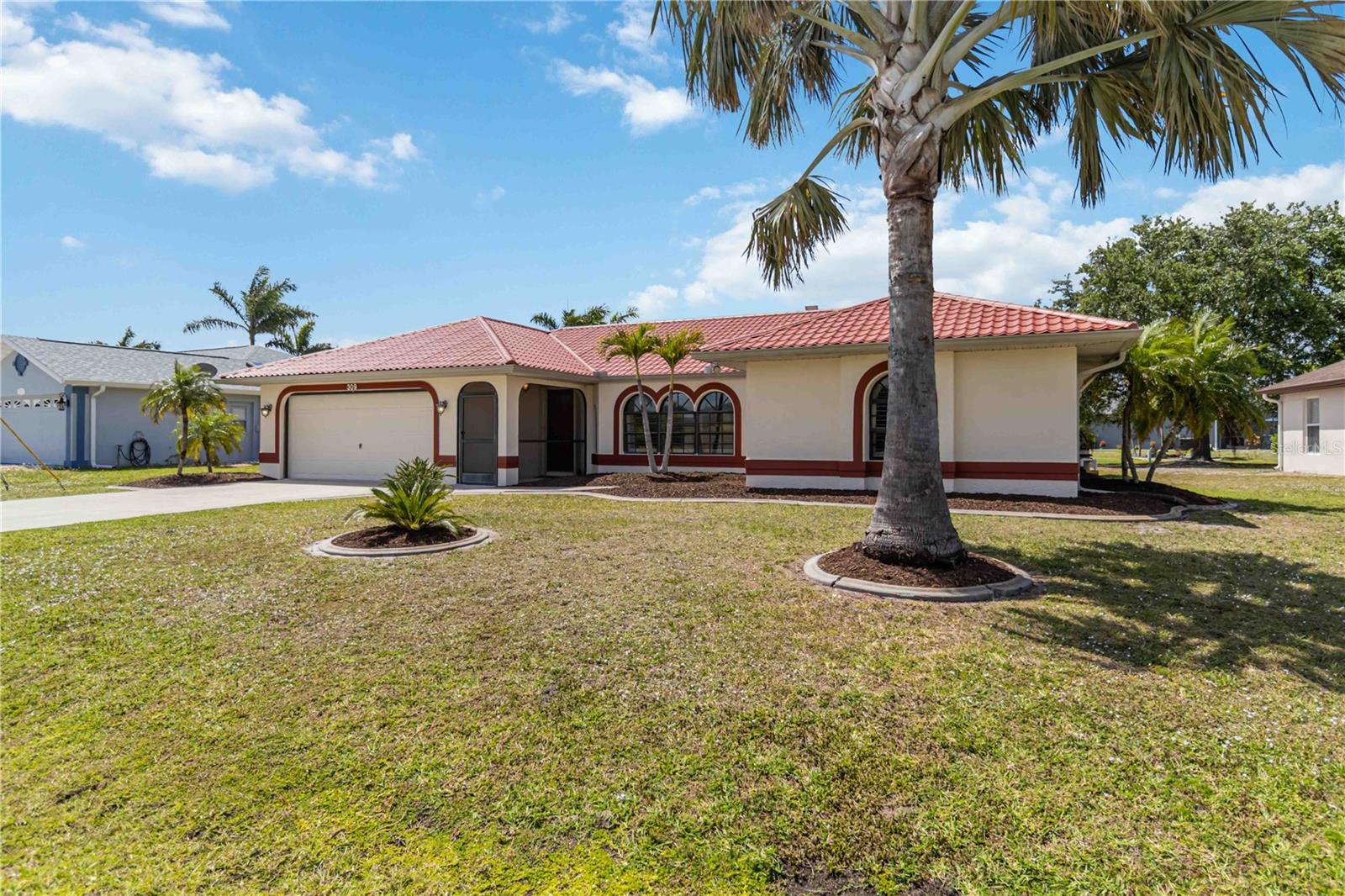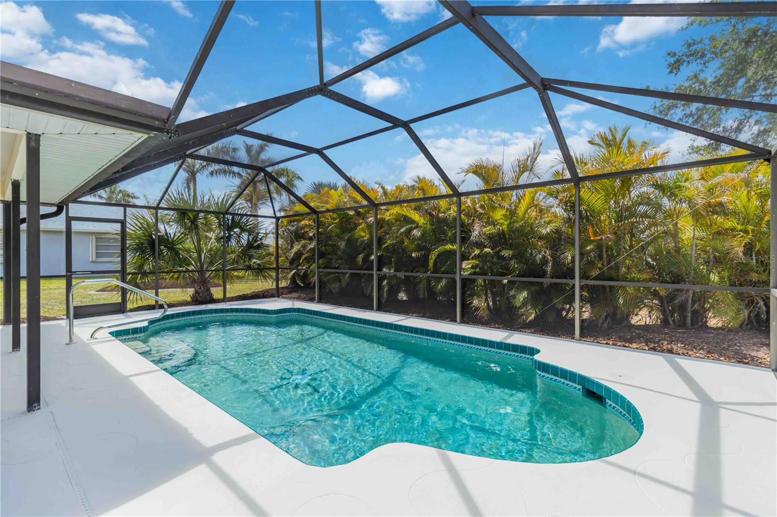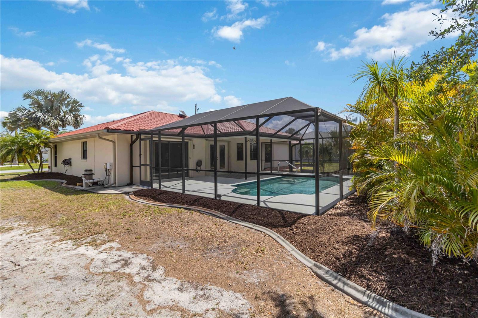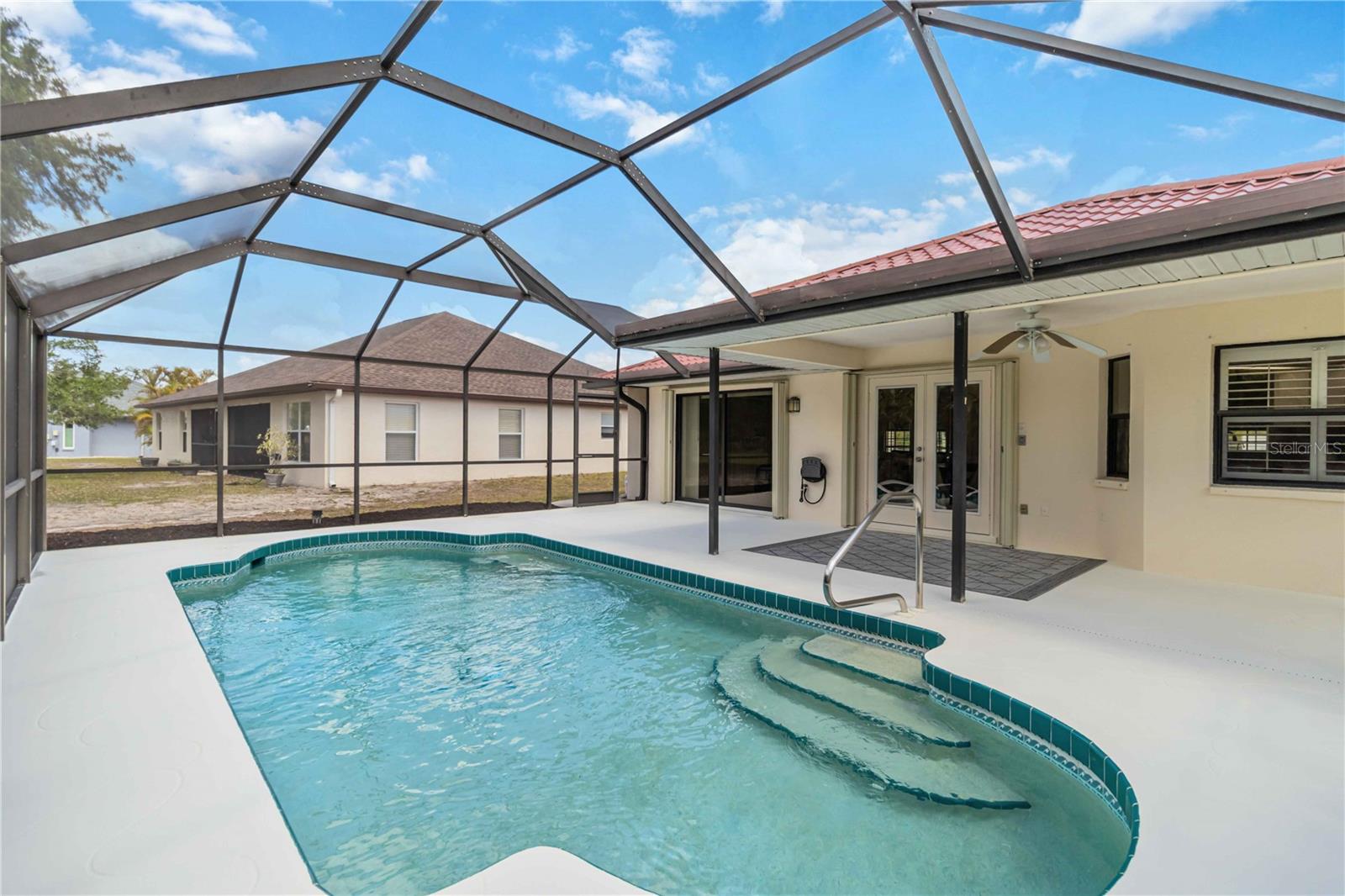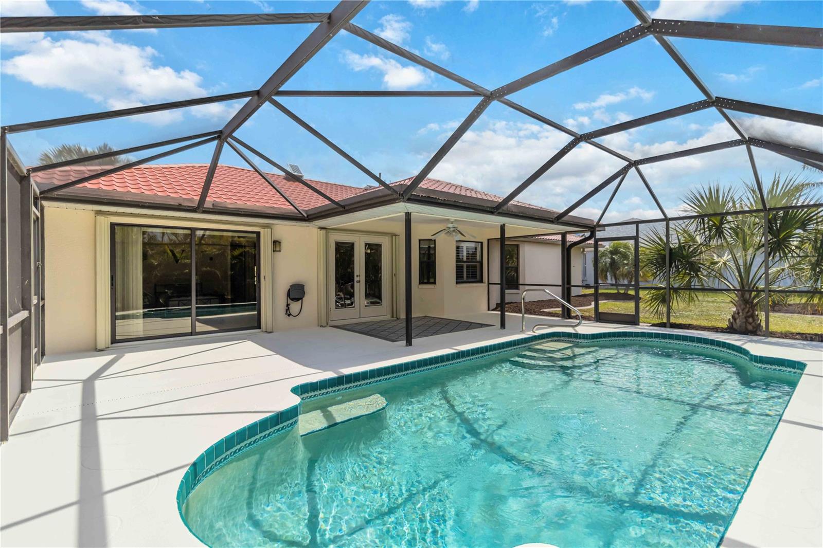 One or more photo(s) has been virtually staged. This stunning 3-bedroom, 2-bathroom pool home with an additional bonus room offers a perfect blend of modern updates, functionality, and prime location. As you step inside, you're welcomed into a spacious great room with tall ceilings, seamlessly flowing into the dining area and a beautifully updated kitchen. Designed for both style and efficiency, the kitchen boasts granite countertops, stainless steel appliances, a generous breakfast bar, and a charming bay window that fills the space with natural light. The home features a neutral tile floor and fresh paint throughout, adding to its light and airy feel. French doors off the dining area lead to an expansive lanai and in-ground pool, creating the ultimate outdoor retreat. Whether you're entertaining guests or enjoying a quiet evening, this extended outdoor space offers endless possibilities. The split-bedroom floor plan provides privacy and comfort. The primary suite is a tranquil escape, complete with a walk-in closet and private bath. The secondary bedrooms are positioned on the opposite side of the home, sharing a full bath—one with direct access to the lanai, perfect for guests. The bonus room or fourth bedroom accessed through one of the secondary bedrooms, with its own private entrance, offers incredible versatility as a guest suite, in-law quarters, or even a rentable space for additional income. Built with durability and peace of mind, this home features a newer Spanish tile-style metal roof, hurricane-rated up to 235 mph, and backed by a limited lifetime warranty. Additional highlights include a whole-home water filtration system, elegant plantation-style shutters, and an oversized garage providing ample storage. Ideally situated just a short commute to Punta Gorda’s historic waterfront, where charming shops and excellent dining options await. With easy access to I-75, Punta Gorda Airport just 10 miles away, and a nearby public boat ramp on the Peace River, this home offers the perfect balance of luxury, convenience, and adventure. Don't miss this incredible opportunity—schedule your showing today!