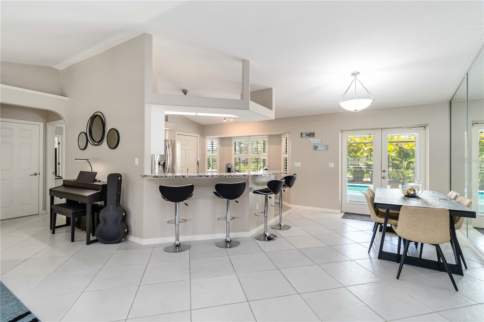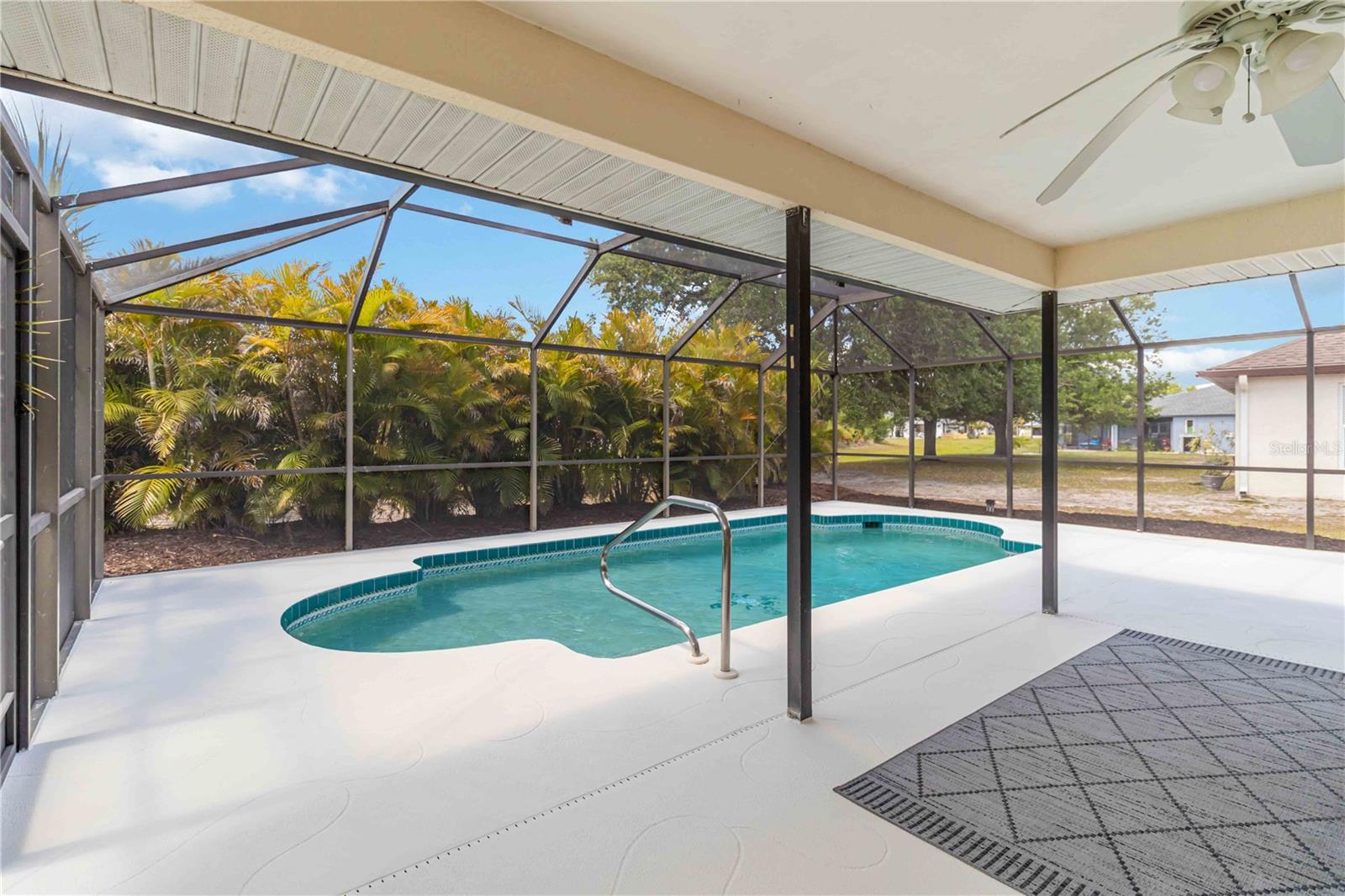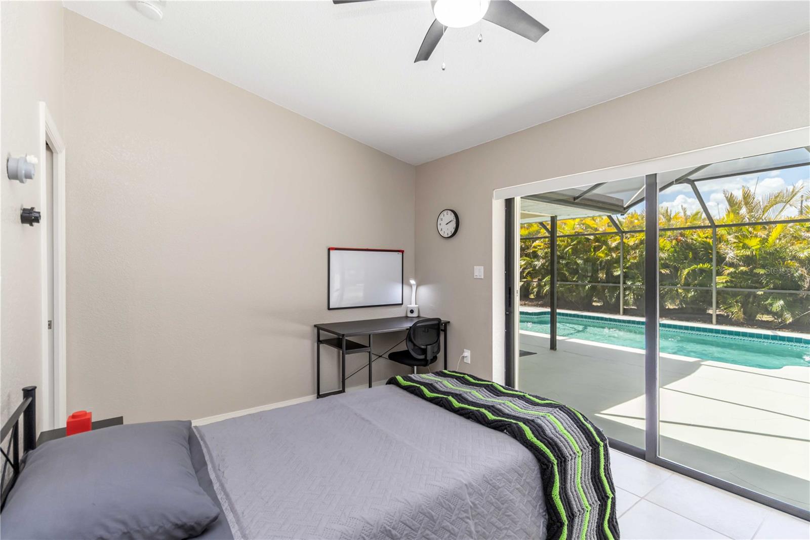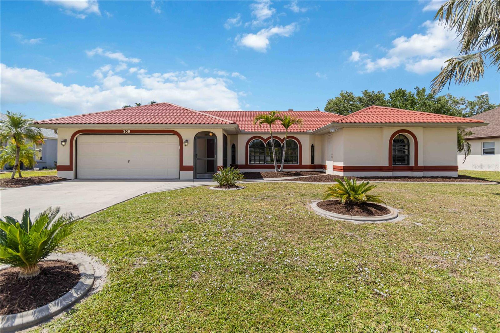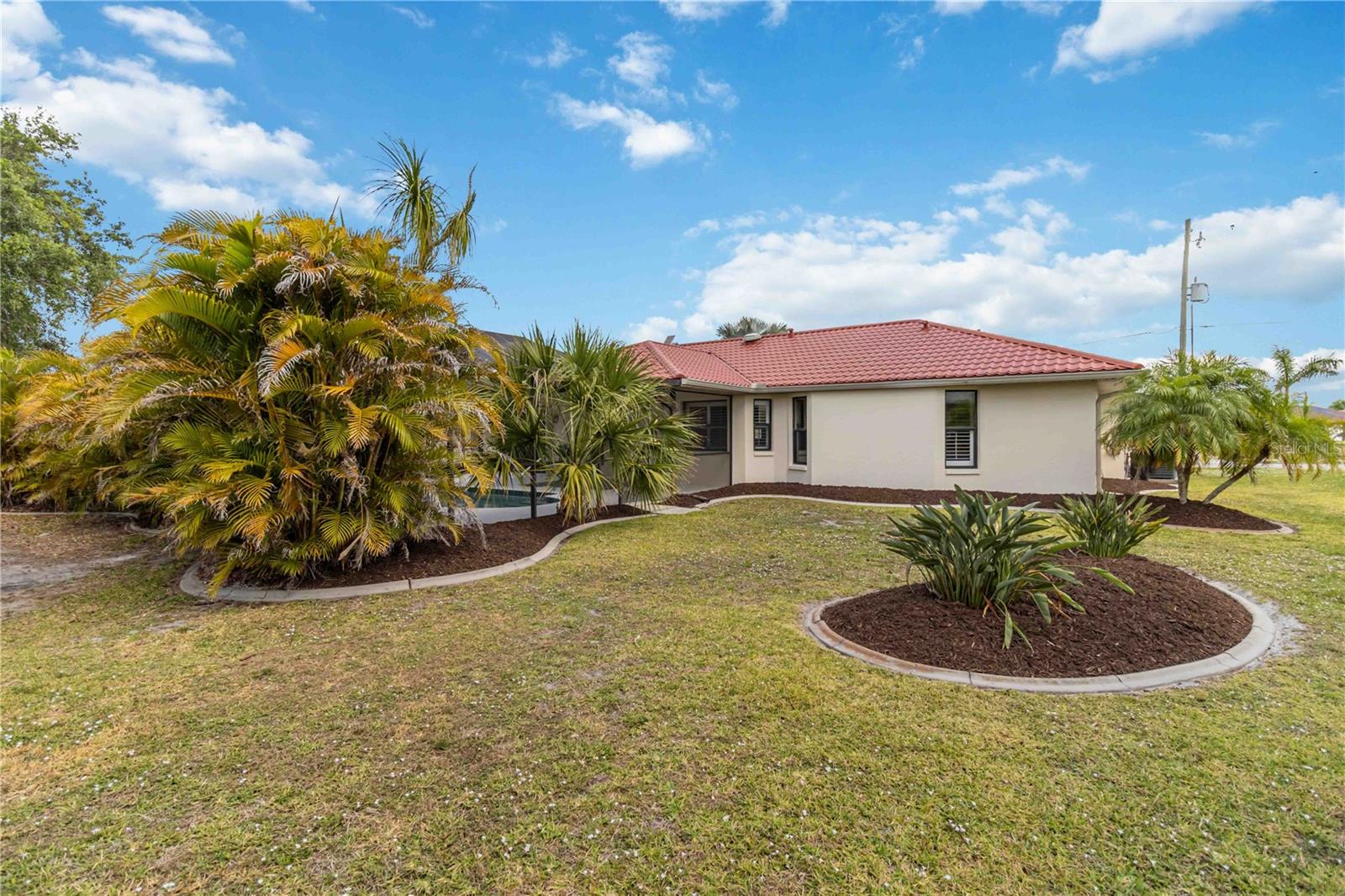 One or more photo(s) has been virtually staged. This stunning 3-bedroom, 2-bathroom pool home with an additional bonus room offers a perfect blend of modern updates, functionality, and prime location. As you step inside, you're welcomed into a spacious great room with tall ceilings, seamlessly flowing into the dining area and a beautifully updated kitchen. Designed for both style and efficiency, the kitchen boasts granite countertops, stainless steel appliances, a generous breakfast bar, and a charming bay window that fills the space with natural light. The home features a neutral tile floor and fresh paint throughout, adding to its light and airy feel. French doors off the dining area lead to an expansive lanai and in-ground pool, creating the ultimate outdoor retreat. Whether you're entertaining guests or enjoying a quiet evening, this extended outdoor space offers endless possibilities. The split-bedroom floor plan provides privacy and comfort. The primary suite is a tranquil escape, complete with a walk-in closet and private bath. The secondary bedrooms are positioned on the opposite side of the home, sharing a full bath—one with direct access to the lanai, perfect for guests. The bonus room or fourth bedroom accessed through one of the secondary bedrooms, with its own private entrance, offers incredible versatility as a guest suite, in-law quarters, or even a rentable space for additional income. Built with durability and peace of mind, this home features a newer Spanish tile-style metal roof, hurricane-rated up to 235 mph, and backed by a limited lifetime warranty. Additional highlights include a whole-home water filtration system, elegant plantation-style shutters, and an oversized garage providing ample storage. Ideally situated just a short commute to Punta Gorda’s historic waterfront, where charming shops and excellent dining options await. With easy access to I-75, Punta Gorda Airport just 10 miles away, and a nearby public boat ramp on the Peace River, this home offers the perfect balance of luxury, convenience, and adventure. Don't miss this incredible opportunity—schedule your showing today!