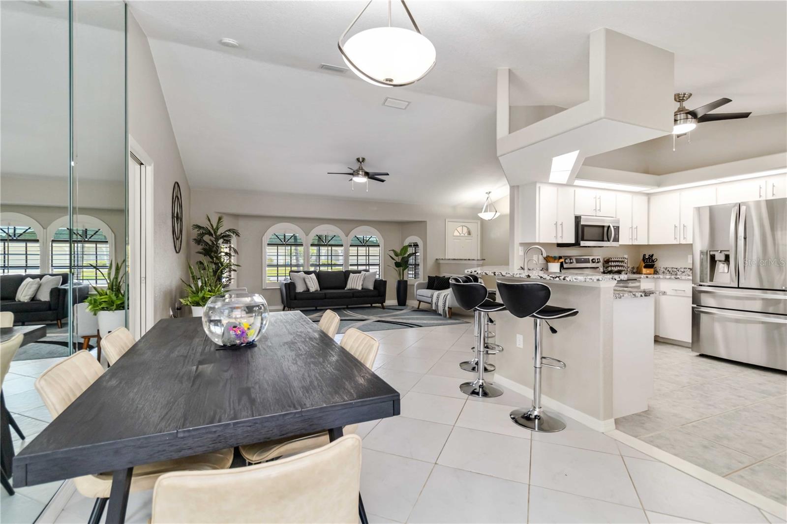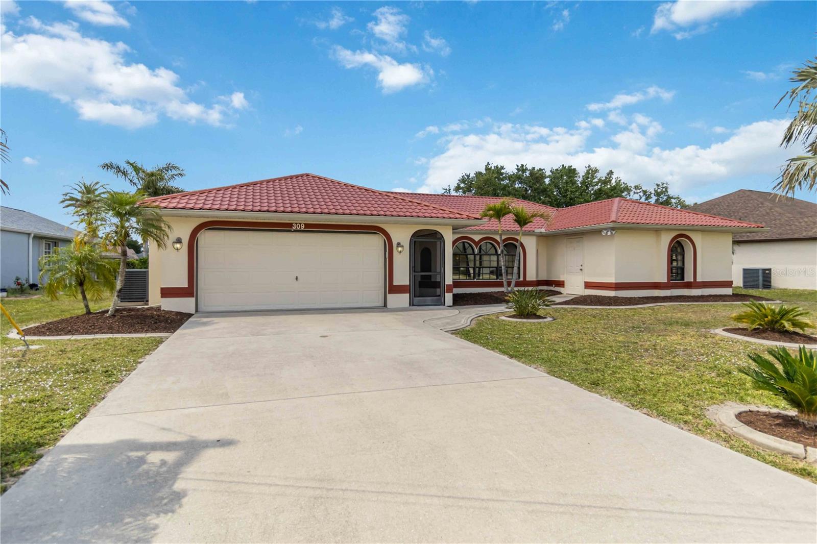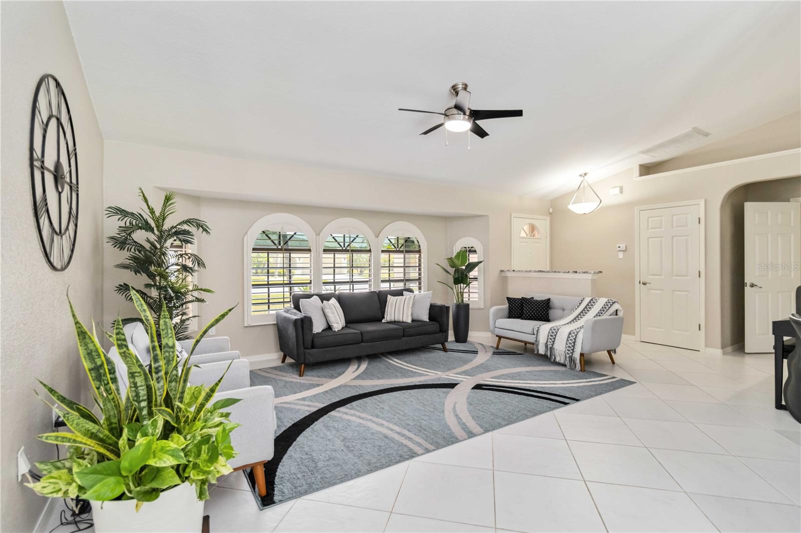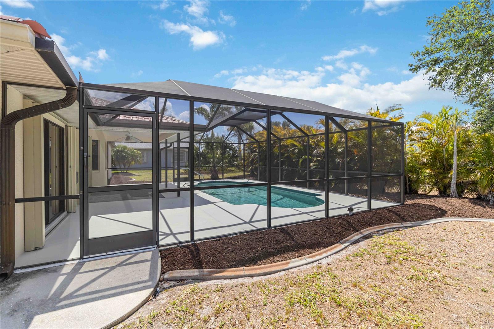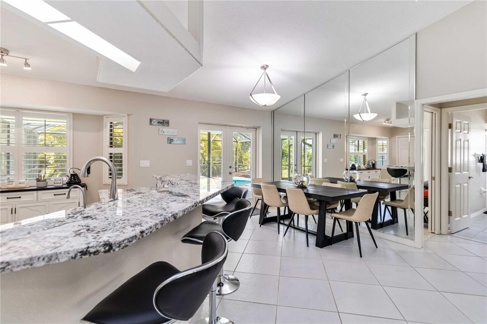 One or more photo(s) has been virtually staged. This stunning 3-bedroom, 2-bathroom pool home with an additional bonus room offers a perfect blend of modern updates, functionality, and prime location. As you step inside, you're welcomed into a spacious great room with tall ceilings, seamlessly flowing into the dining area and a beautifully updated kitchen. Designed for both style and efficiency, the kitchen boasts granite countertops, stainless steel appliances, a generous breakfast bar, and a charming bay window that fills the space with natural light. The home features a neutral tile floor and fresh paint throughout, adding to its light and airy feel. French doors off the dining area lead to an expansive lanai and in-ground pool, creating the ultimate outdoor retreat. Whether you're entertaining guests or enjoying a quiet evening, this extended outdoor space offers endless possibilities. The split-bedroom floor plan provides privacy and comfort. The primary suite is a tranquil escape, complete with a walk-in closet and private bath. The secondary bedrooms are positioned on the opposite side of the home, sharing a full bath—one with direct access to the lanai, perfect for guests. The bonus room or fourth bedroom accessed through one of the secondary bedrooms, with its own private entrance, offers incredible versatility as a guest suite, in-law quarters, or even a rentable space for additional income. Built with durability and peace of mind, this home features a newer Spanish tile-style metal roof, hurricane-rated up to 235 mph, and backed by a limited lifetime warranty. Additional highlights include a whole-home water filtration system, elegant plantation-style shutters, and an oversized garage providing ample storage. Ideally situated just a short commute to Punta Gorda’s historic waterfront, where charming shops and excellent dining options await. With easy access to I-75, Punta Gorda Airport just 10 miles away, and a nearby public boat ramp on the Peace River, this home offers the perfect balance of luxury, convenience, and adventure. Don't miss this incredible opportunity—schedule your showing today!