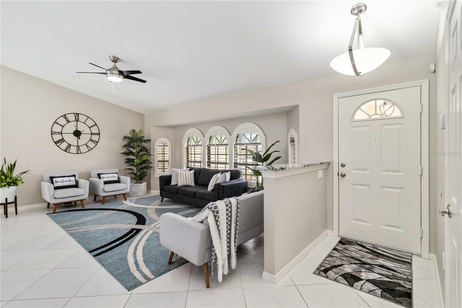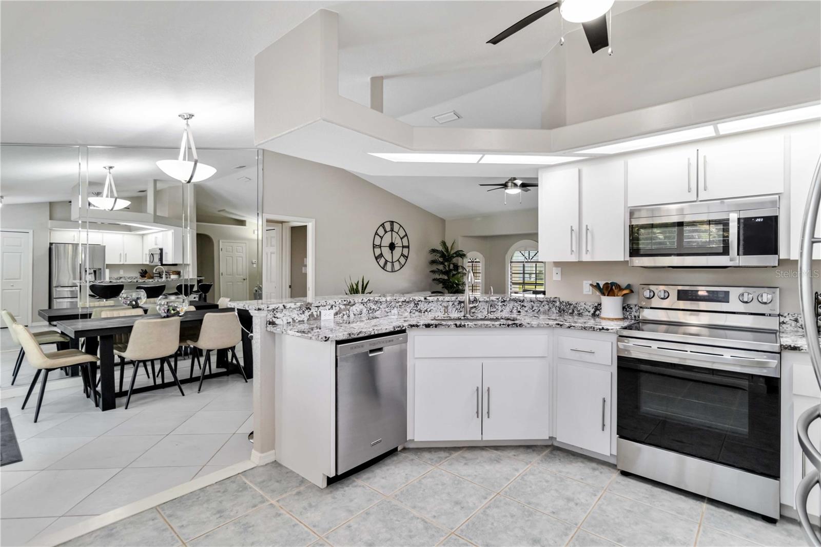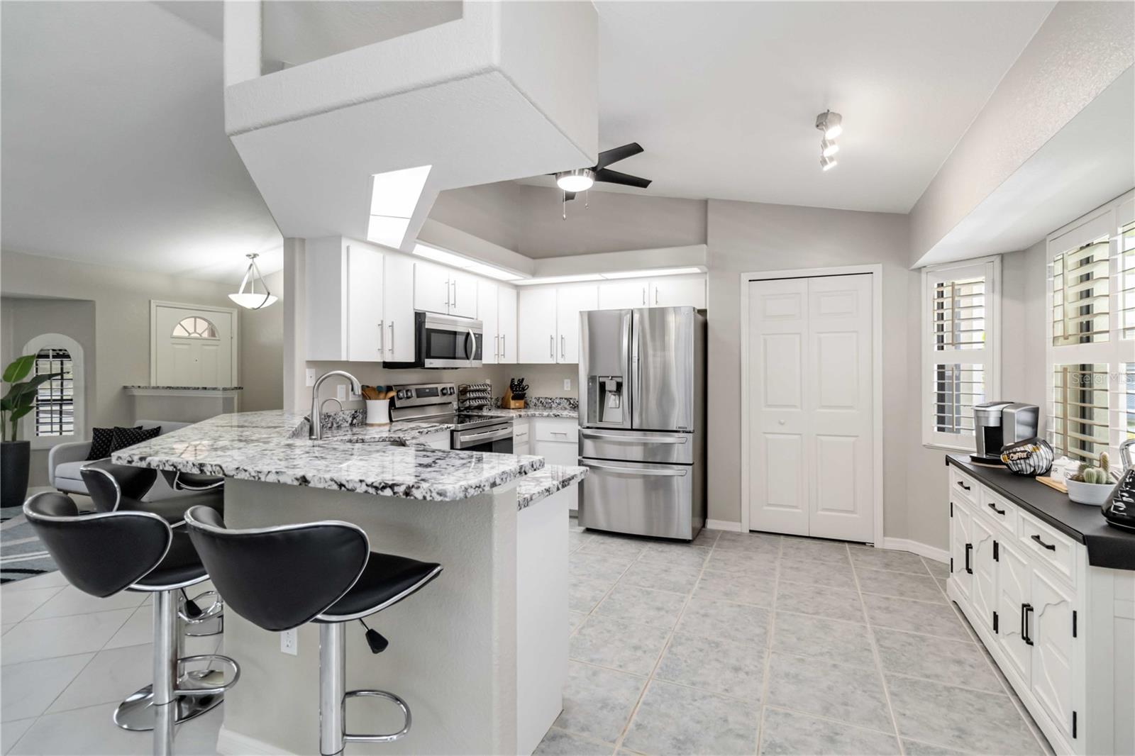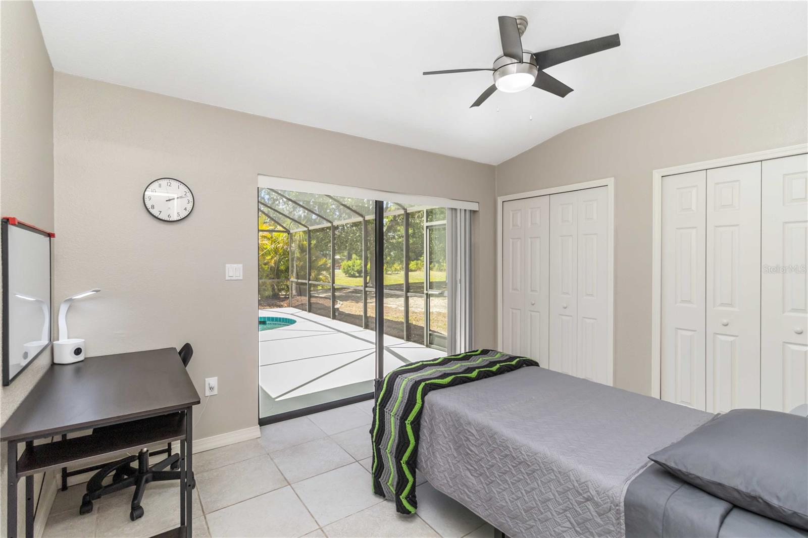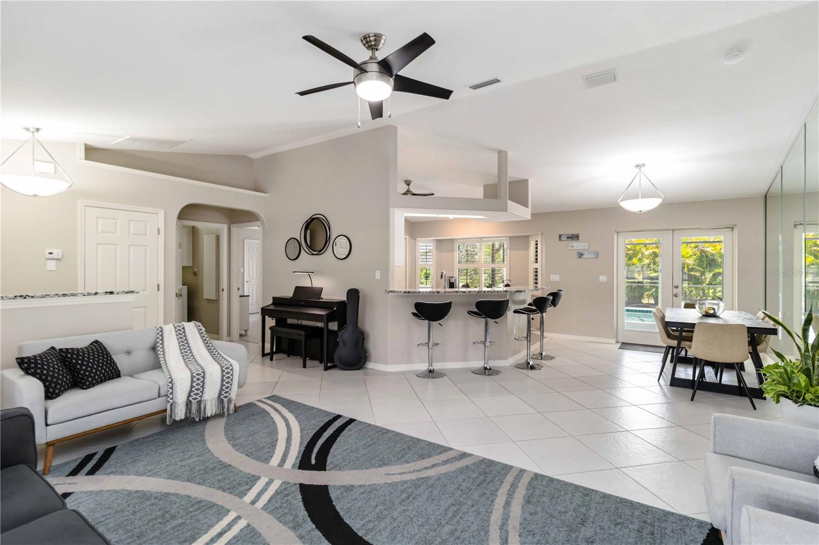 One or more photo(s) has been virtually staged. This stunning 3-bedroom, 2-bathroom pool home with an additional bonus room offers a perfect blend of modern updates, functionality, and prime location. As you step inside, you're welcomed into a spacious great room with tall ceilings, seamlessly flowing into the dining area and a beautifully updated kitchen. Designed for both style and efficiency, the kitchen boasts granite countertops, stainless steel appliances, a generous breakfast bar, and a charming bay window that fills the space with natural light. The home features a neutral tile floor and fresh paint throughout, adding to its light and airy feel. French doors off the dining area lead to an expansive lanai and in-ground pool, creating the ultimate outdoor retreat. Whether you're entertaining guests or enjoying a quiet evening, this extended outdoor space offers endless possibilities. The split-bedroom floor plan provides privacy and comfort. The primary suite is a tranquil escape, complete with a walk-in closet and private bath. The secondary bedrooms are positioned on the opposite side of the home, sharing a full bath—one with direct access to the lanai, perfect for guests. The bonus room or fourth bedroom accessed through one of the secondary bedrooms, with its own private entrance, offers incredible versatility as a guest suite, in-law quarters, or even a rentable space for additional income. Built with durability and peace of mind, this home features a newer Spanish tile-style metal roof, hurricane-rated up to 235 mph, and backed by a limited lifetime warranty. Additional highlights include a whole-home water filtration system, elegant plantation-style shutters, and an oversized garage providing ample storage. Ideally situated just a short commute to Punta Gorda’s historic waterfront, where charming shops and excellent dining options await. With easy access to I-75, Punta Gorda Airport just 10 miles away, and a nearby public boat ramp on the Peace River, this home offers the perfect balance of luxury, convenience, and adventure. Don't miss this incredible opportunity—schedule your showing today!