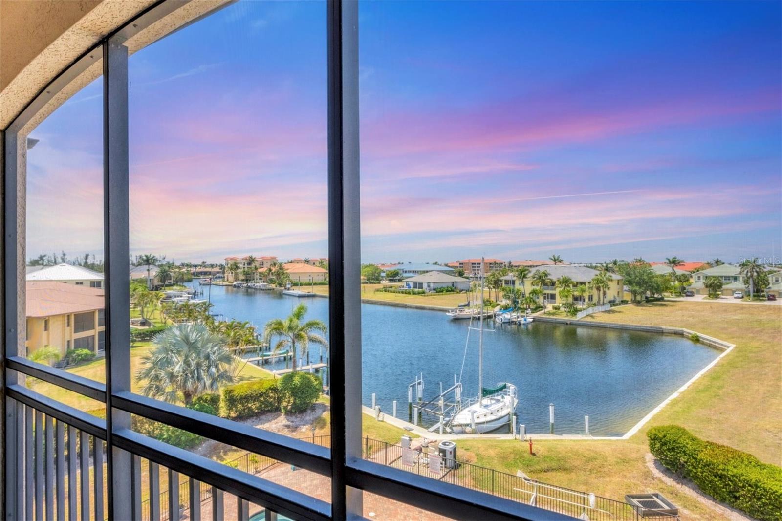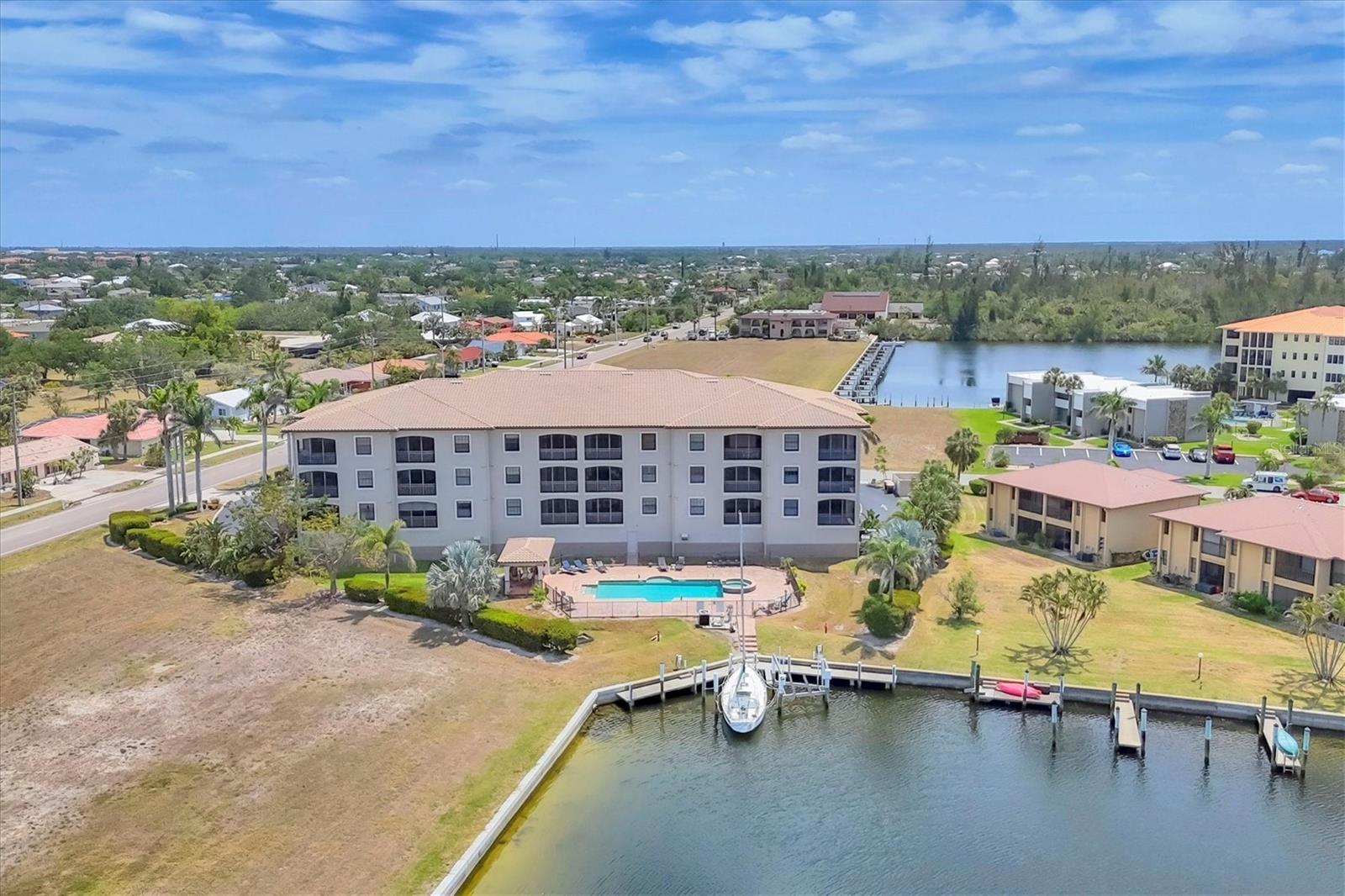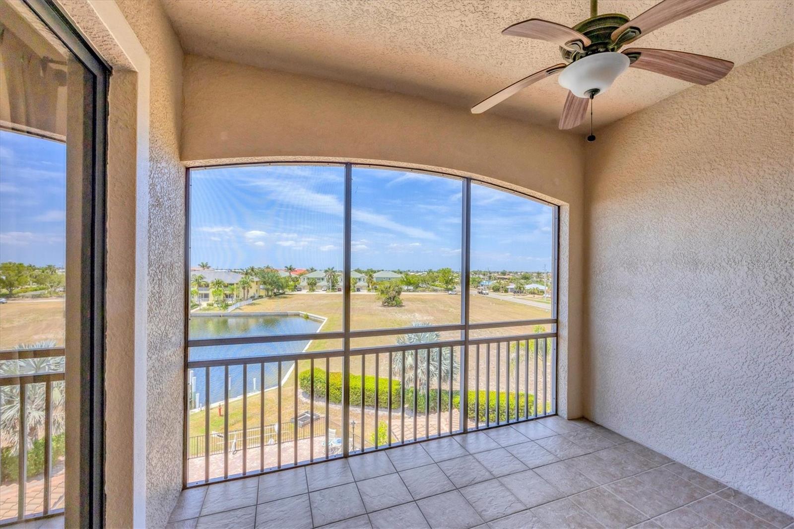 Are you looking for the perfect piece of paradise? This exquisite 4th floor waterfront condo is nestled in the beautiful and sought after area of Punta Gorda Isles. Just minutes from downtown Punta Gorda where you'll find some of the area's best restaurants and eclectic shopping boutiques with that small town vibe. This spacious condo offers nearly 1900 sq ft of living space, embodying the epitome of luxury and style. This top-floor masterpiece of design boasts panoramic views of the skyline that can be enjoyed from the comfort of your living space. The interior features tile floors, creating an ambiance of modern elegance throughout. The living room and dining area showcase soaring ceilings, providing a spacious and airy feel, with seamless access to the enclosed balcony—a perfect spot to unwind and savor the breathtaking surroundings. The kitchen is a chef's delight, with updated raised panel cabinetry, granite countertops, and stainless steel appliances that seamlessly blend form and function. The spacious master suite is a private sanctuary, offering direct access to the screened balcony and a luxurious master bath. The master bath features a vanity with double sinks, an oversized walk-in closet, and a tiled shower. This exclusive condo comes complete with an array of amenities, including a heated in-ground pool, reserved parking, secured entrance, and an elevator for added convenience. Moreover, its prime location is within walking distance to the Isles Yacht Club, Fishermen's Village, and the Ring Around the City walking trails. Discover the epitome of coastal living, where every detail has been carefully curated to offer a lifestyle of unparalleled comfort and sophistication. With nearby attractions including the Sun Seekers Resort in Charlotte Harbor, various golf courses, marinas, and pristine beaches. Come experience a life of luxury and leisure you deserve. Call today for a private showing and start living the lifestyle you've always dreamed of.