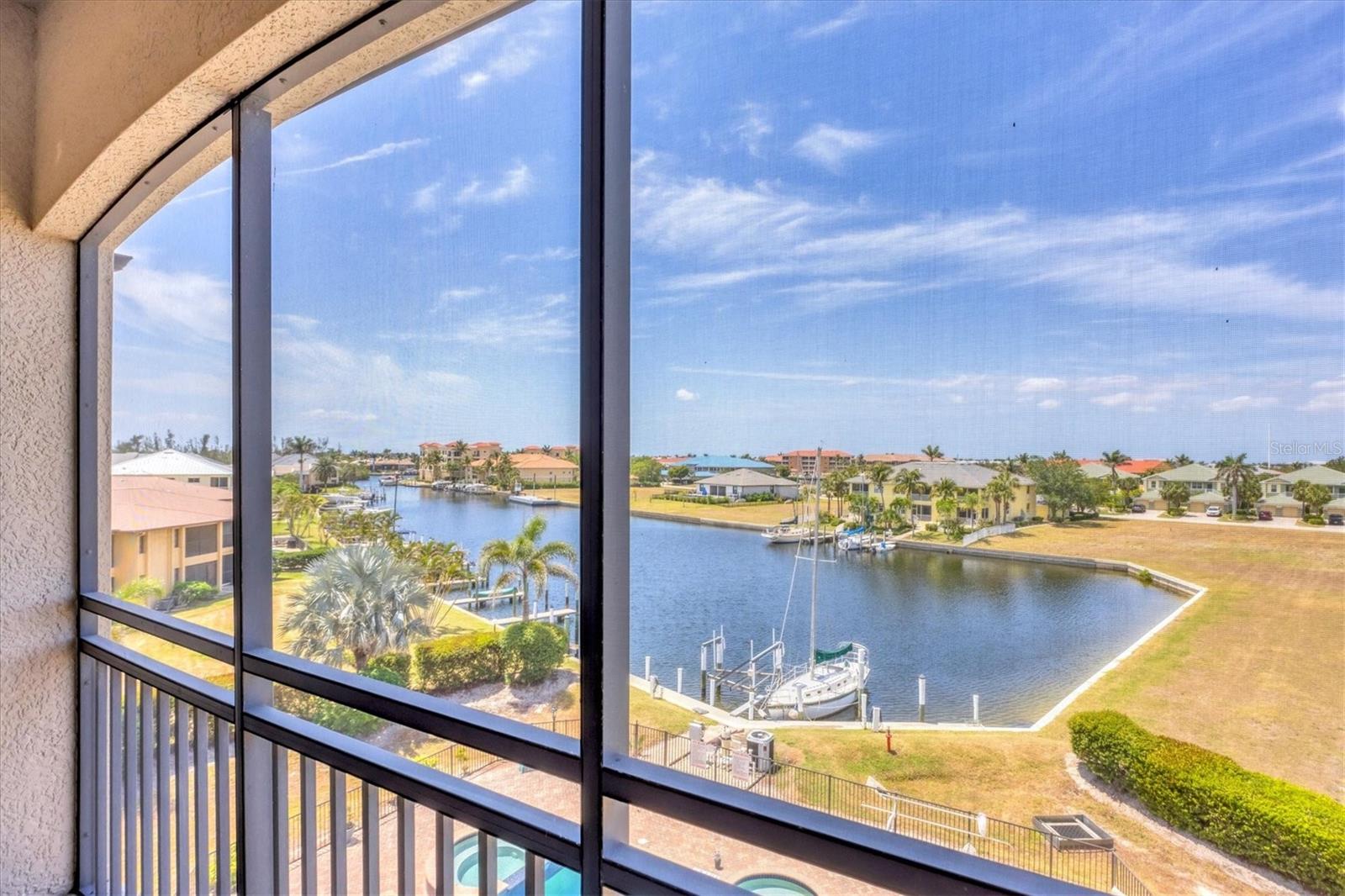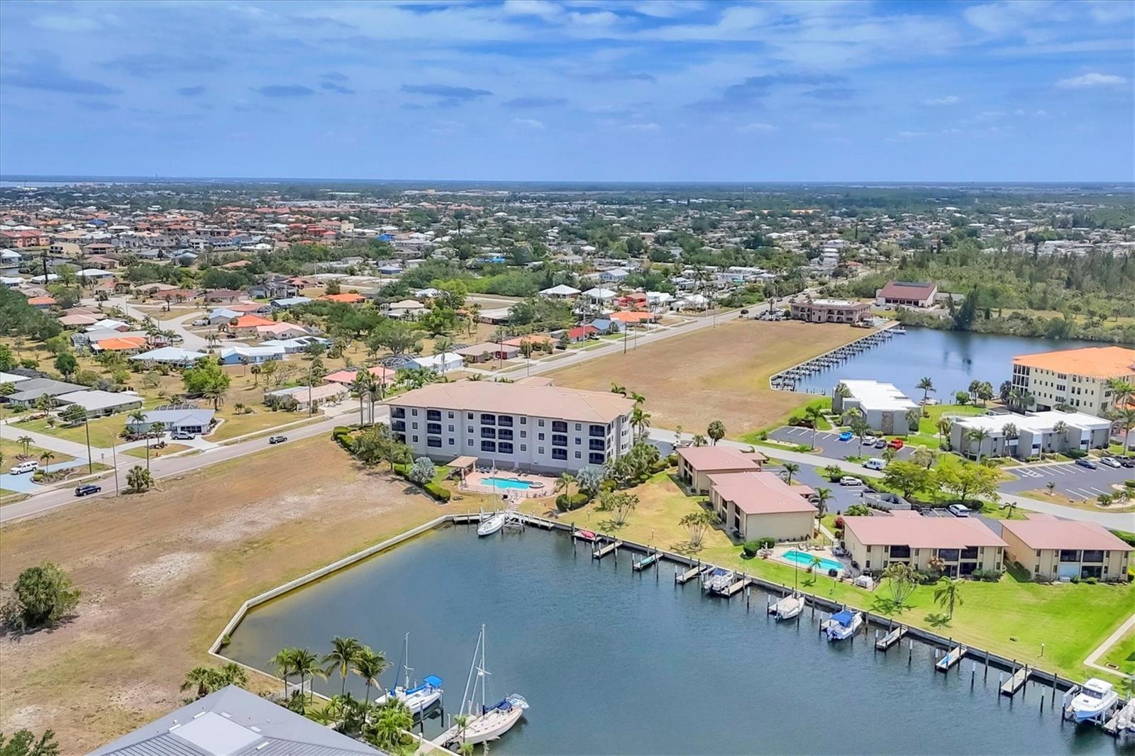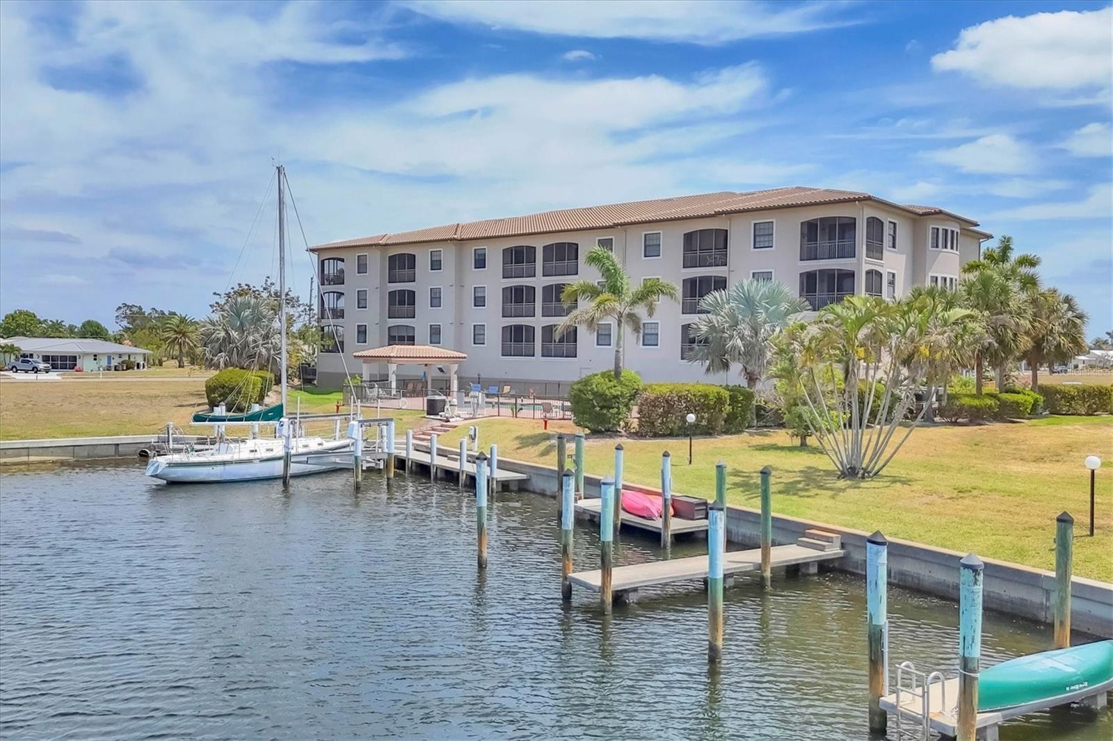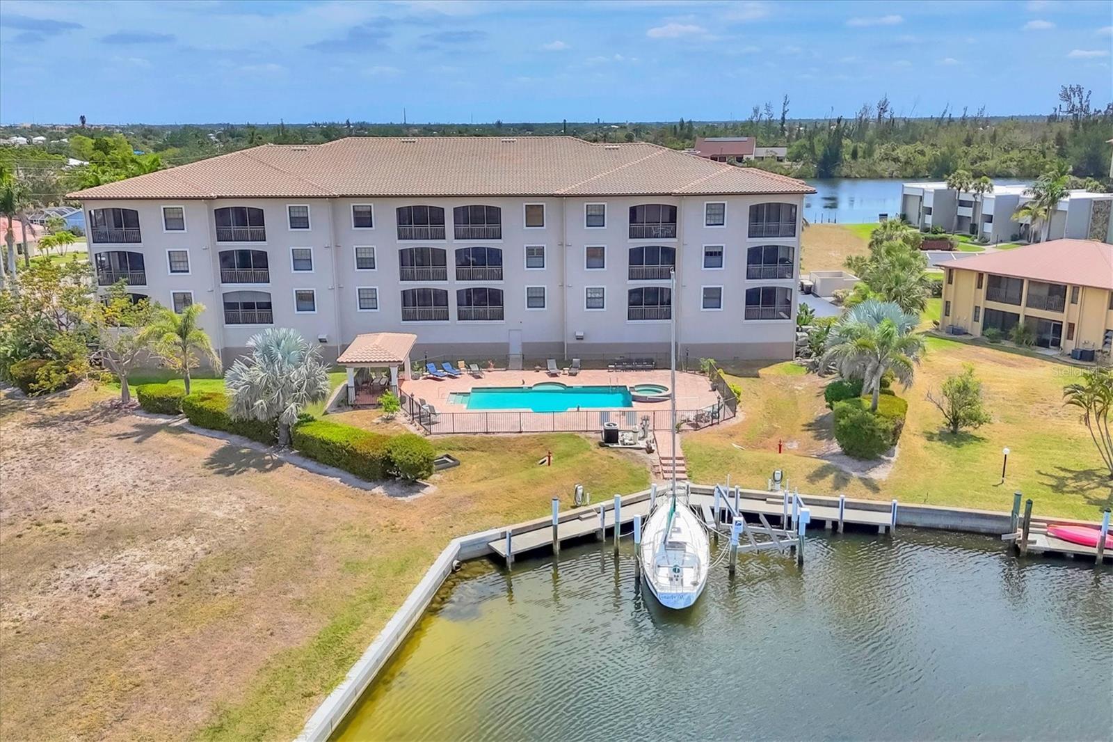 Are you looking for the perfect piece of paradise? This exquisite 4th floor waterfront condo is nestled in the beautiful and sought after area of Punta Gorda Isles. Just minutes from downtown Punta Gorda where you'll find some of the area's best restaurants and eclectic shopping boutiques with that small town vibe. This spacious condo offers nearly 1900 sq ft of living space, embodying the epitome of luxury and style. This top-floor masterpiece of design boasts panoramic views of the skyline that can be enjoyed from the comfort of your living space. The interior features tile floors, creating an ambiance of modern elegance throughout. The living room and dining area showcase soaring ceilings, providing a spacious and airy feel, with seamless access to the enclosed balcony—a perfect spot to unwind and savor the breathtaking surroundings. The kitchen is a chef's delight, with updated raised panel cabinetry, granite countertops, and stainless steel appliances that seamlessly blend form and function. The spacious master suite is a private sanctuary, offering direct access to the screened balcony and a luxurious master bath. The master bath features a vanity with double sinks, an oversized walk-in closet, and a tiled shower. This exclusive condo comes complete with an array of amenities, including a heated in-ground pool, reserved parking, secured entrance, and an elevator for added convenience. Moreover, its prime location is within walking distance to the Isles Yacht Club, Fishermen's Village, and the Ring Around the City walking trails. Discover the epitome of coastal living, where every detail has been carefully curated to offer a lifestyle of unparalleled comfort and sophistication. With nearby attractions including the Sun Seekers Resort in Charlotte Harbor, various golf courses, marinas, and pristine beaches. Come experience a life of luxury and leisure you deserve. Call today for a private showing and start living the lifestyle you've always dreamed of.