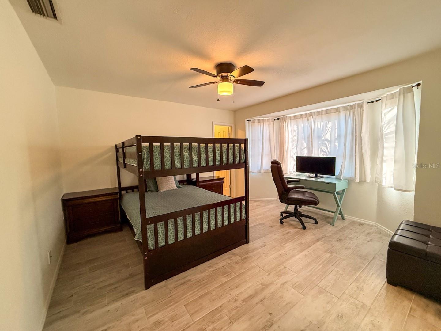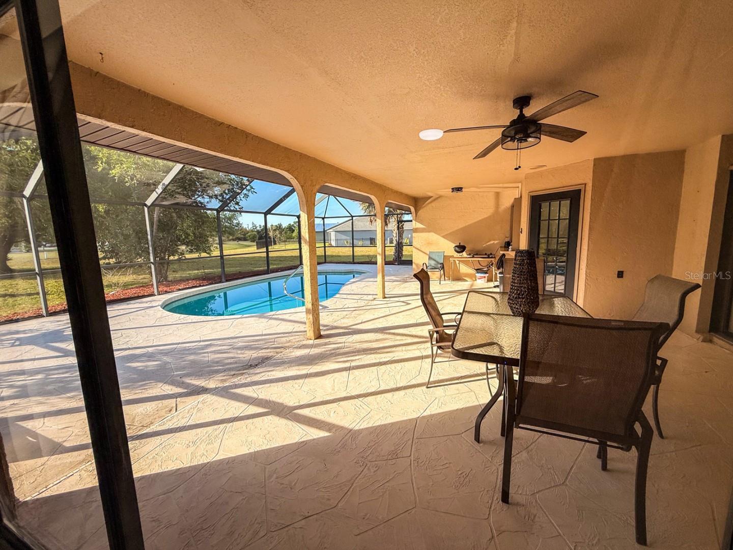 Nestled in the USDA mortgage-eligible area of Deep Creek, this spacious 4/3 home boasts a renovated kitchen with modern appliances and stone countertops. Durable, updated flooring runs throughout, while the primary suite features ample closets and an upgraded bath. The oversized corner lot offers a private backyard with a pool, protective enclosure, and covered outdoor living area overlooking natural views. Updates include newer AC, insulation, and plumbing, plus a long-lasting roof. Fully furnished and set in an elevated location, the property enjoys minimal community fees and affordable insurance. Convenient to highways, shopping, and recreation, this is a prime opportunity for homeowners or investors in an established neighborhood.