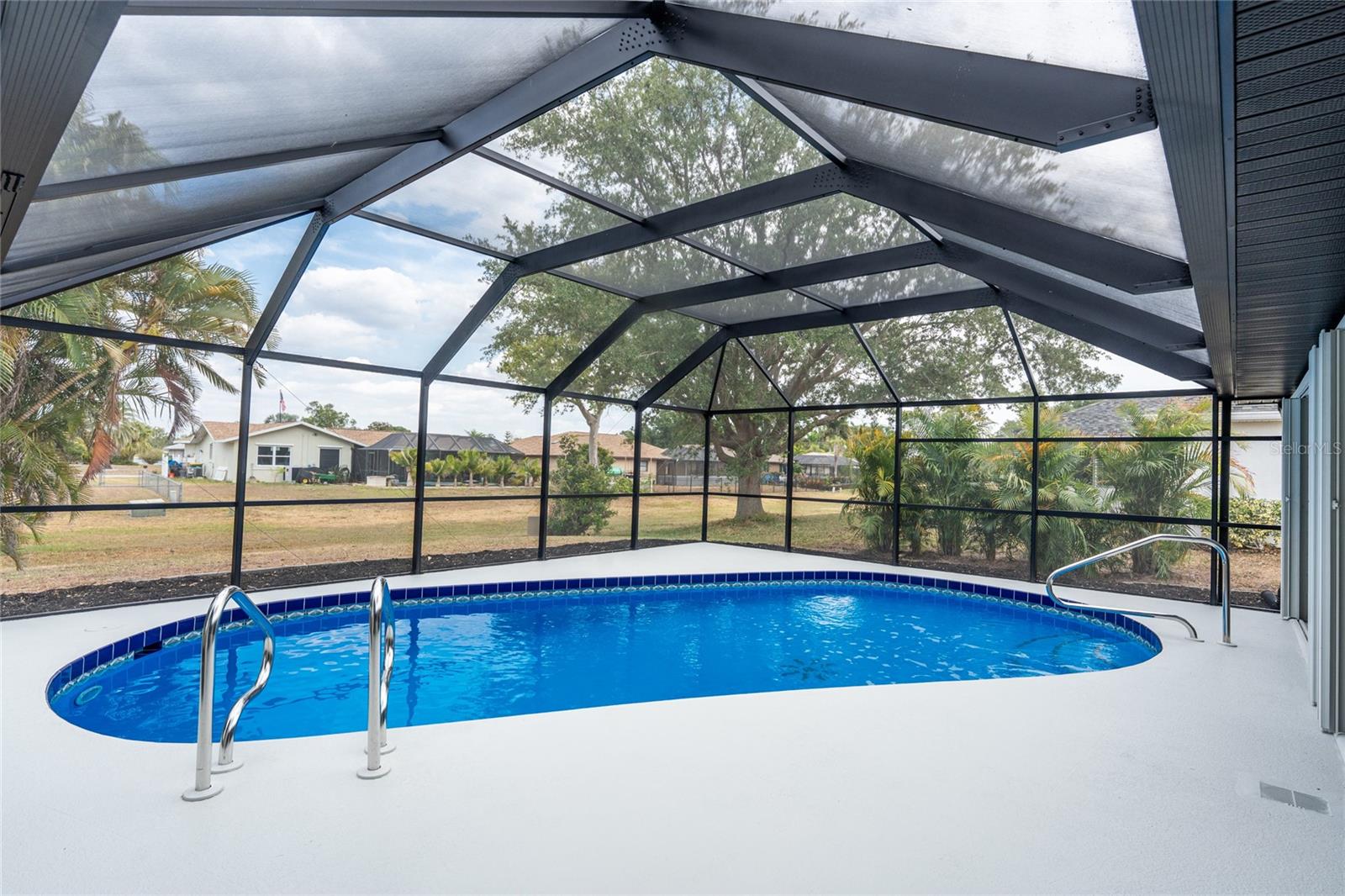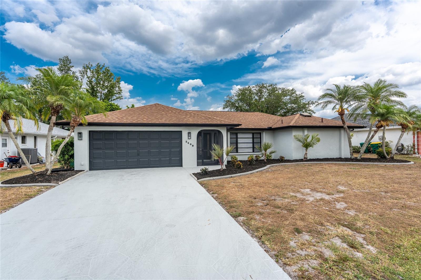 Welcome to your beautifully renovated home at 2408 Montpelier Rd, located in the sought-after Deep Creek community of Punta Gorda, FL. This stunning residence is completely updated and meticulously maintained, ready to welcome its new owner. Featuring nearly 2,300 sq ft of stylish and modern living space, the home boasts 3 spacious bedrooms plus a versatile office overlooking the sparkling pool area, 2 fully remodeled bathrooms, and an additional convenient half-bath accessible from the pool deck. The entire property has been freshly painted both inside and out, complemented by sleek, new ceramic plank tile flooring throughout. The gourmet kitchen is a true centerpiece, featuring brand-new cabinetry, premium countertops, and a generous island ideal for entertaining and daily gatherings. Relax and unwind in your fully refreshed and resurfaced pool area, offering privacy in a serene backyard setting. The home is constructed of durable concrete block and thoughtfully equipped with accordion shutters throughout, ensuring ease and peace of mind. Notably, the property is not located in a flood zone. Enjoy the benefits of living in the highly desirable Deep Creek neighborhood, featuring city water and sewer with a very affordable HOA fee of just $200 per year. The roof was replaced in 2020, adding further value and reliability to this exceptional home.