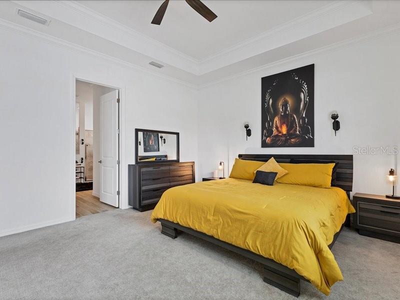 Stunning turnkey home in Tern Bay Golf and Country Club. 3 bedroom 3 bathroom home. This immaculate home offers resort style living. Enjoy breathtaking golf course views, golf is included within HOA fees. Thoughtfully designed layout with a chef's kitchen, over sized granite island, walk in pantry, recessed lighting, upgrades fixtures and elegant cabinetry. Crown molding throughout. The main suite boasts tray ceilings, two walk in closets.
