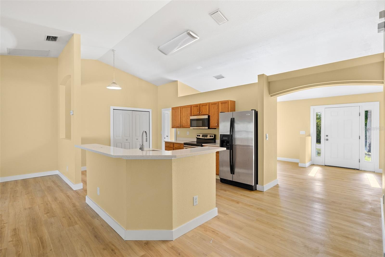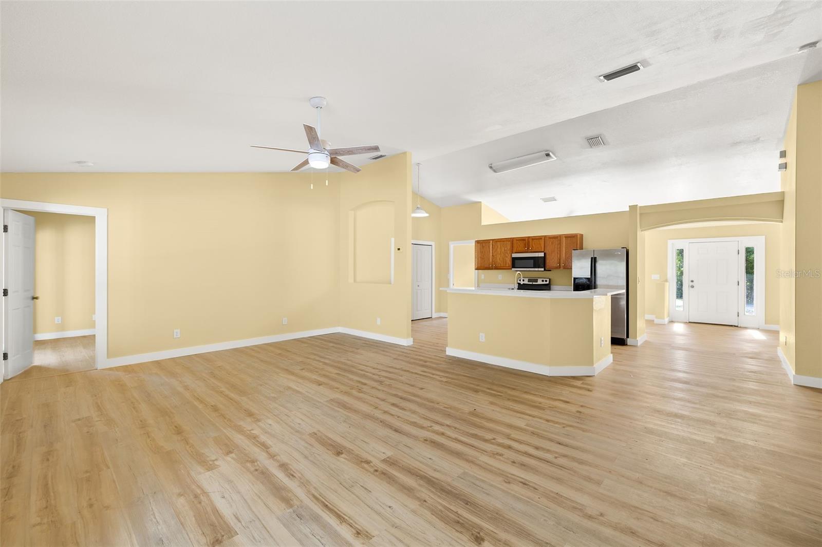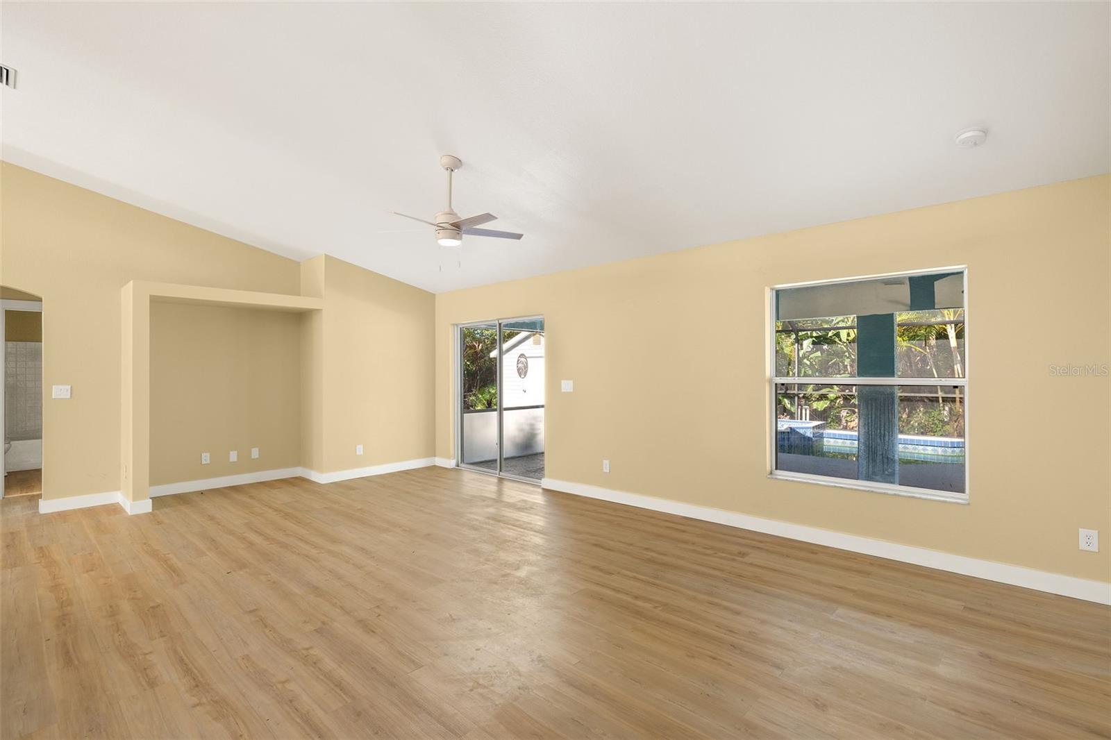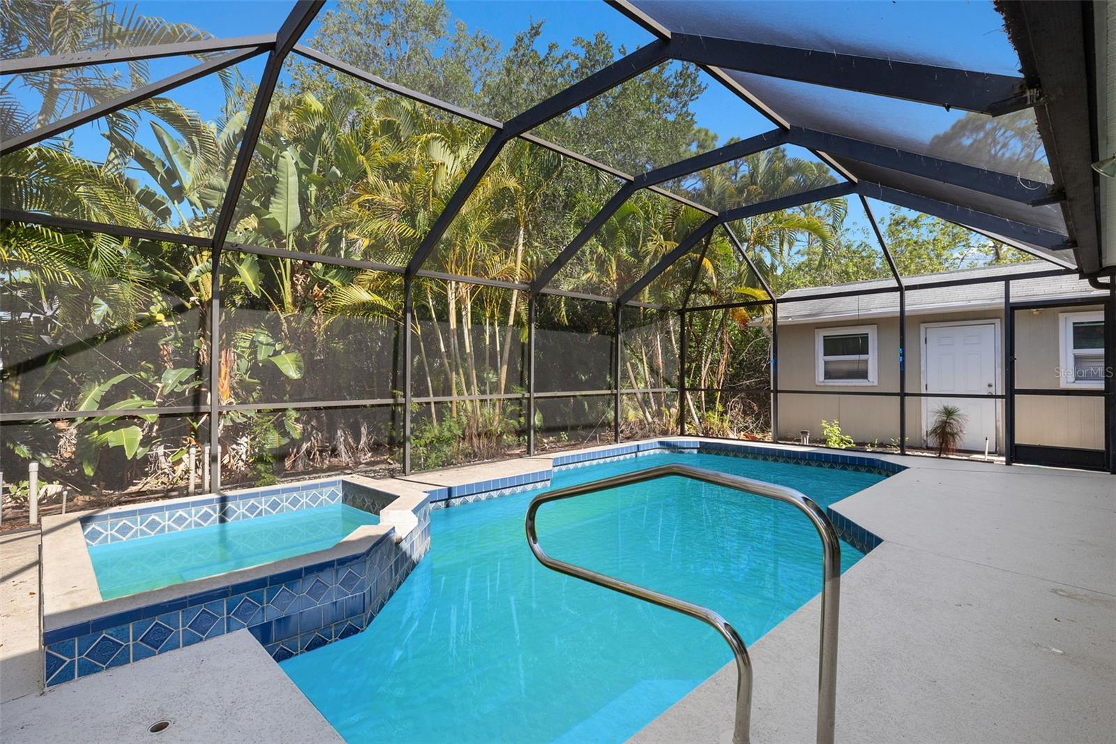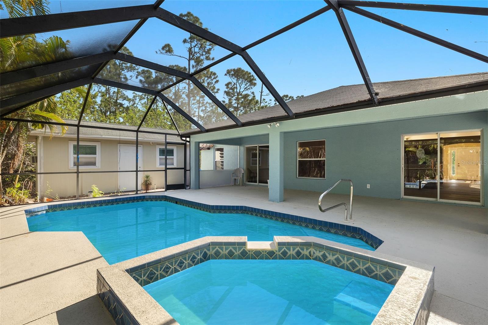 Updated 3-Bedroom plus Den, 2-Bathroom Pool/Spa Home with amazing landscaped yard, and Whole house Generator with buried tank! This beautifully maintained home features new paint inside, new laminate flooring and modern flat stock baseboards and trim. New ceiling fans with light kits through out the house. Beautiful New Quartz counter tops large open kitchen with plenty of cabinets for storage, and Stainless Steel appliance package, is a great place to entertain family and friends. Kitchen has large pantry for storage. Sliding glass doors lead out to large under truss lanai over looking the screened in custom pool and spa, a great place to enjoy the weather. The tropical and private back yard features 2 large sheds for additional storage or to make a great work shop. Conveniently located near Kings Highway and I-75, near shopping, dining, and entertainment.