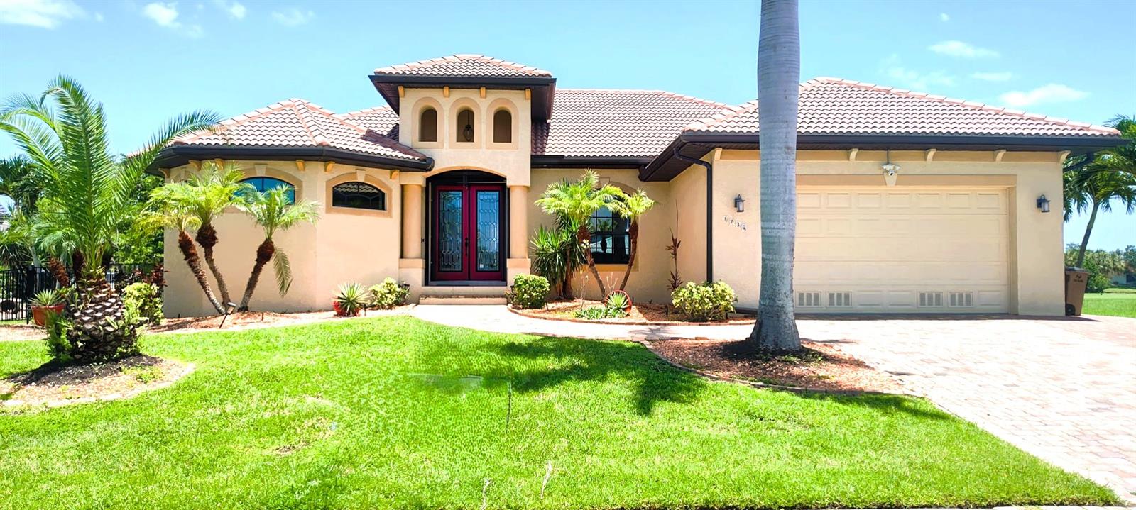 Live the Florida Dream with Stunning Golf Course Views! Welcome to this custom-built DM Dean home that is a golfer’s paradise with panoramic views of St. Andrews South Golf Course and all the luxury touches you’ve been looking for! From the moment you arrive, you’ll be captivated by the classic tile roof, elegant Florida landscaping, and stylish architectural features. Inside, this over 2,100 sq ft home impresses with tray ceilings, crown molding, plantation shutters, and tile floors throughout. Love the outdoors? The spacious great room opens wide with 90-degree sliding glass doors, blending indoor and outdoor living and bathing the space in natural light. Step out to the expansive paver lanai, where a heated pool with a soothing waterfall, a half bath, and multiple lounging & dining areas make it easy to entertain or unwind under the sun. The heart of the home is the beautiful kitchen featuring granite counters and backsplash, newer stainless steel appliances, and a breakfast bar that flows into the dining nook, perfect for enjoying meals while watching golfers tee off just beyond your seamless picture window. The primary suite is a retreat of its own with French doors to the lanai, tray ceilings, a walk-in closet, and a spa-style bathroom offering dual vanities, a jetted soaking tub, and a pass-through shower. Guests will appreciate the split bedroom layout, providing privacy and access to a beautiful shared bath with a walk-in shower. The dedicated office features glass French doors, built-in shelving, and a hidden Murphy bed for maximum flexibility. Additional highlights include: Electric hurricane shutters on lanai and front porch, Impact windows, 2-year-old HVAC system, and Auto irrigation system. No HOA fees in deed-restricted PGI! Whether you're chasing the perfect golf game or the ultimate Florida lifestyle, this home delivers. Grab your clubs, soak up the sun, and come experience this exceptional value, schedule your private showing today!