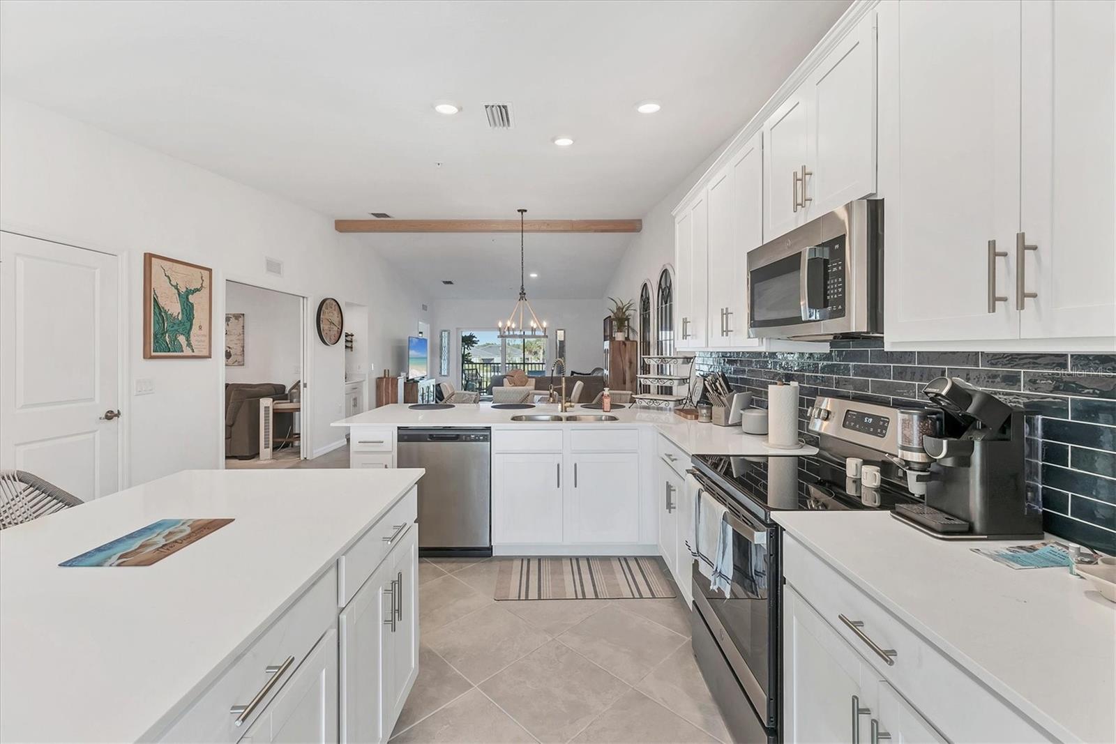 Pack your bags and prepare to embrace the lifestyle you've always dreamed of. This stunning condominium is in the heart of the prestigious Heritage Landing community where resort-style living meets everyday convenience. This vibrant, amenity-rich neighborhood offers everything you could possible desire such as championship golf, tennis and pickleball courts, a spacious outdoor pool with bar and dining, a state-of-the-art fitness center, expansive activity rooms and more. Whether you're looking for recreation, relaxation or social connection, Heritage Landing delivers it all. Enter inside your private second-floor condominium and be greeted by tranquil views of the community's expansive pond. The unit features a chef-inspired kitchen complete with ample cabinetry, quartz countertops, a center island and modern appliances perfect for cooking, entertaining or simply enjoying a morning coffee. The open concept living room provides a spacious and versatile layout for your ideal design. Just off the living area, enjoy a cocktail or glass of wine at your custom wine and spirits bar. Retreat to the primary suite, ideally positioned at back of the unit, for peace and privacy, and soak in the stunning pond views. This luxurious suite included two walk-in closets and an elegant en-suite bath with dual vanities and a walk-in shower. Hosting guests? The condominium features a generous second bedroom. Hosting guests? The condominium features a generous second bedroom that offers comfort and privacy, along with easy access to a beautifully appointed full guest bath. A separate laundry room adds everyday convenience, while thoughtful touches throughout like crown molding, recessed lighting and sleek tile flooring elevate the space with timeless sophistication. Whether you’re making Heritage Landing your year-round home or seasonal retreat, this is more than just a residence, it’s a lifestyle. Don’t miss your chance to own a piece of paradise. Schedule your private showing today and start living the resort life you deserve.