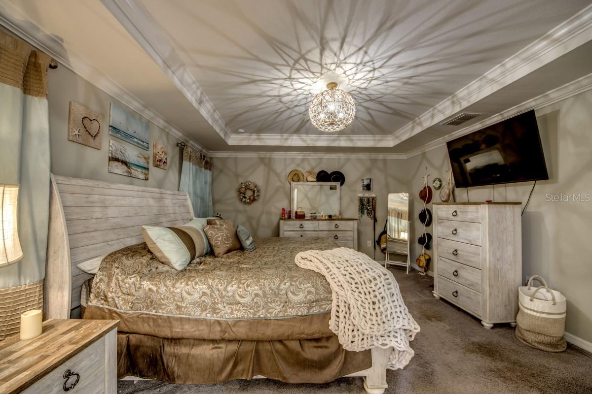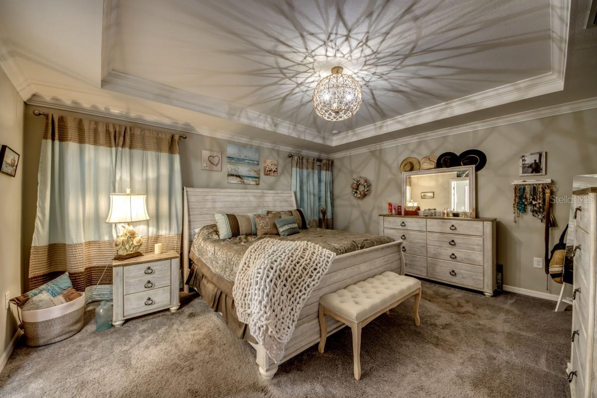Welcome to your dream home in sunny Florida, nestled in the desirable, deed-restricted Deep Creek community—an ideal location for serene, relaxed living. Built in 2021 by renowned Maronda Homes on a premium corner lot backing onto a greenbelt, this beautifully upgraded home offers 3 bedrooms, 2 bathrooms, and a spacious three-car garage. At the heart of the home is the stunning kitchen, featuring fresh white cabinetry, granite countertops, stainless steel appliance package, large 12-foot island w/barstools, and large pantry—perfect for entertaining or simply enjoying everyday life in style. The kitchen flows seamlessly into the open-concept great room, which boasts crown molding, LED lighting, and sliding glass doors that lead to a screened lanai at the back of the home with coveted western exposure—ideal for relaxing with a drink and taking in the gorgeous sunsets. The primary suite is a private sanctuary with a tray ceiling, upgraded lighting, a spa-like bathroom with his/her vanities, a large glass shower w/dual shower heads, and generous walk-in closet. The two guest bedrooms are well-sized and share a full four piece bathroom, while the laundry room includes a GE washer and smart-sensor dryer with pedestal drawers. The flex room off the foyer, finished with crown molding, is perfect for a more formal dining area or office. Upgrades include premium tile flooring, crown molding, stone exterior accents, two garage openers, irrigation system, gutters, and a fenced yard