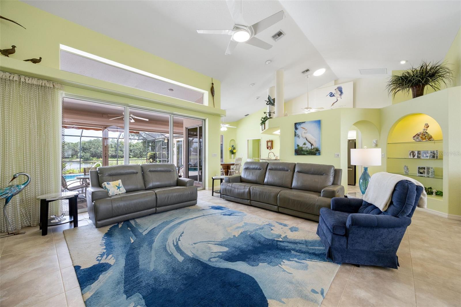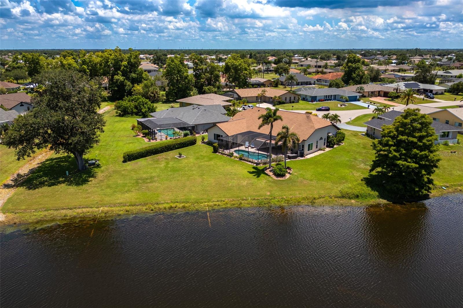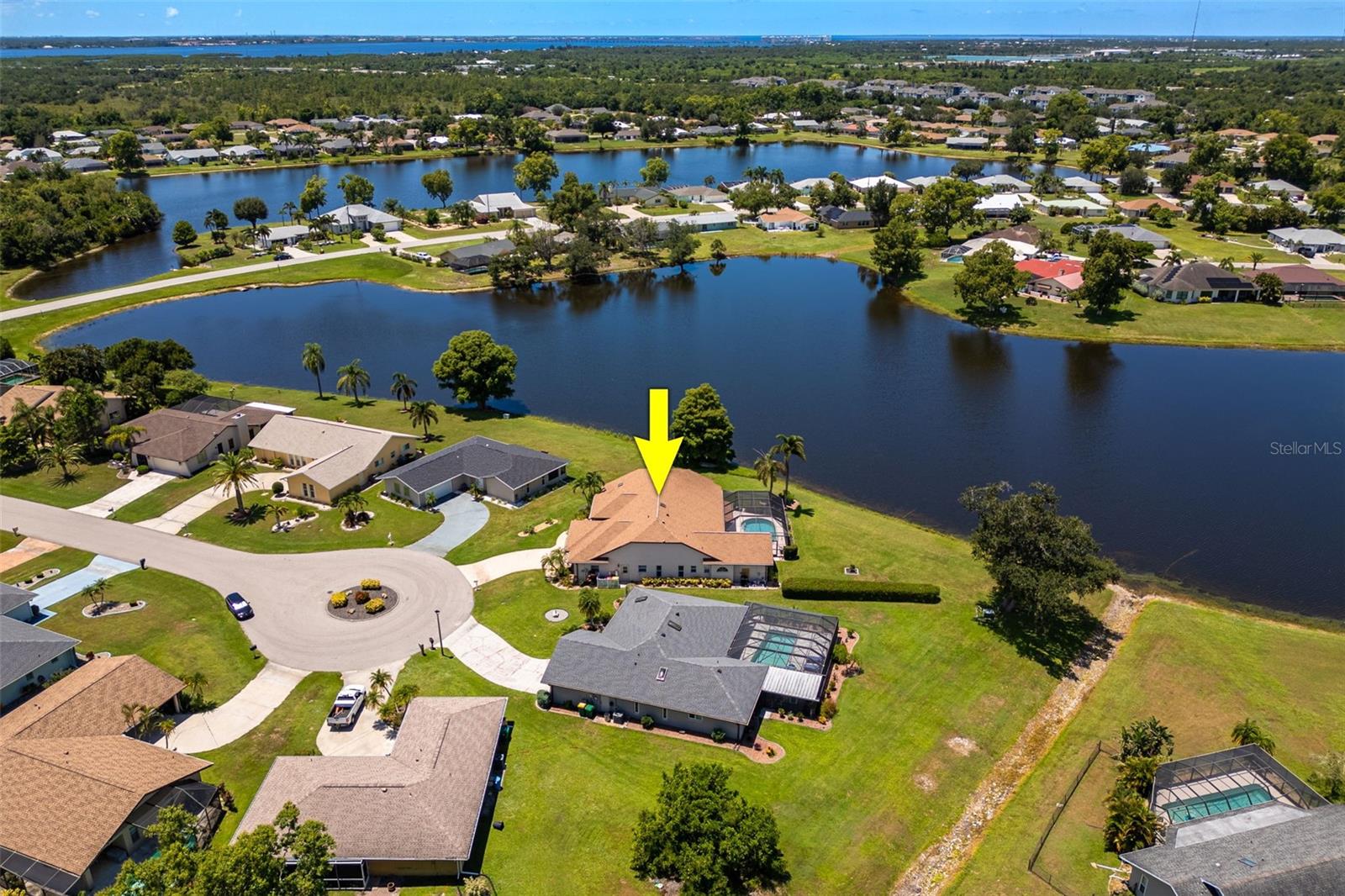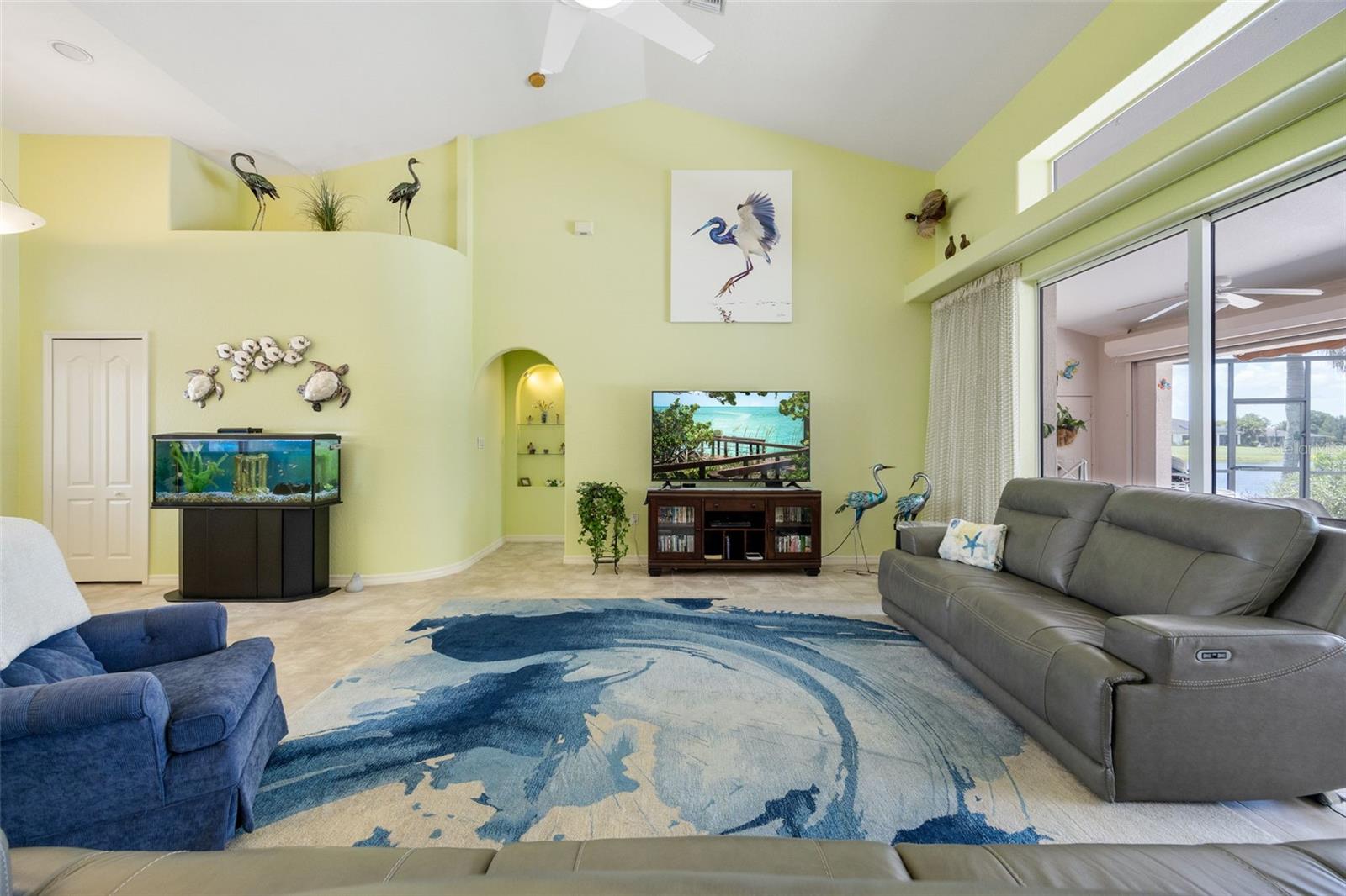 Breathtaking Lake Views & Exceptional Living await in this meticulously maintained pool home where comfort, style, and water views come together on an oversized lot. This spacious 3 bedroom, 3 bathroom residence boasts curved walls, arched architectural details, and a thoughtfully designed layout that includes two master suites, a 2½ car garage with workshop, and a sparkling pool overlooking the lake’s colorful sunsets. From the moment you walk through the front door, you’ll be greeted by stunning heated pool and lake views through large pocketing sliders that seamlessly bring the outdoors in. The heart of the home is a gorgeous kitchen with granite counters, stainless steel appliances including a wall oven and microwave, soft-close cabinets with pull-out shelving, a pantry, and a drink station with a wine fridge. A dinette area with a huge picture window captures the view beautifully. The primary suite is a bright retreat with vaulted ceilings, a walk-in closet, and an ensuite bath, plus a neat storm-safe room. An adjoining room offers flexible space for an office, nursery, or den and could be ideal as an in-law suite. The second master suite features a large ensuite with a walk-in shower, an impact-resistant picture window framing the sparkling lake, and direct lanai access. The third guest room is equally spacious, with its own full bath that doubles as the pool bath. The lanai is perfect for entertaining, dining, or simply lounging by the pool with sweeping lake views. Enjoy the retractable awning for extra shade, or roll down the hurricane shutters across the back for added security. The garage offers room for two cars plus a workshop, two exit doors, and a screened main door for working with a breeze. You’ll also appreciate the laundry room with storage, a bonus hobby/storage room, and abounding storage closets throughout the home. Additional features include: oversized lot, tile flooring throughout, updated baseboards, interior doors, and space-saving pocket doors, multiple walk-in closets, 2018 roof & 2024 HVAC, 2025 pool pump, re screened pool cage, water softener & RO system under the kitchen sink, two impact windows & roll-down shutters, decorative transom windows, and interior ledges with rope lighting. No Flood Zone. All located in the deeded Deep Creek area of Punta Gorda. This home is filled with thoughtful touches and upgrades, you truly have to see it to appreciate the love and care it has received. Make a visit today!