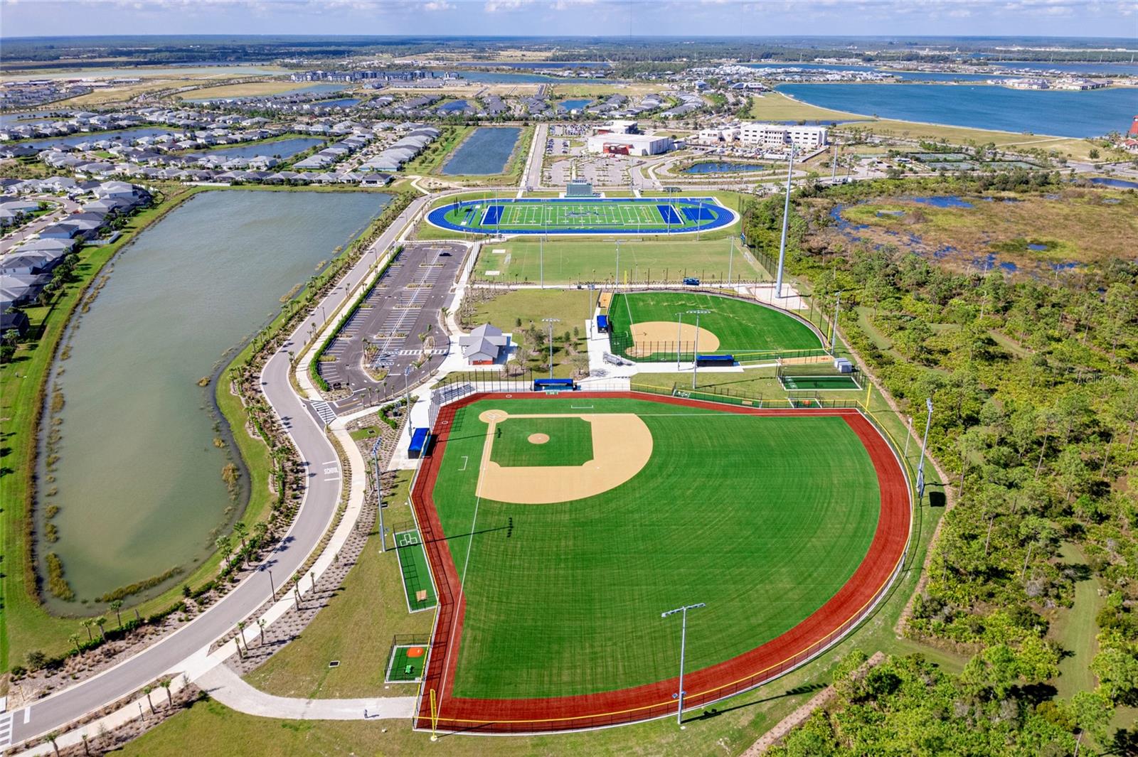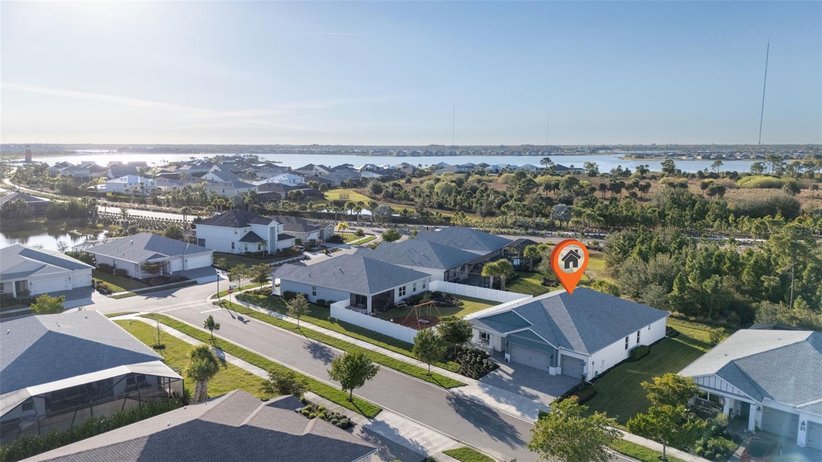 This well-maintained 4-bedroom + den, 3-bath home offers 2,490 sq. ft. of thoughtfully designed living space in the desirable Lake Babcock community. The home provides privacy in a peaceful setting. It features lightweight, easy-to-install, whole-home Storm Smart hurricane shutters including a powered shade on the Lanai, full-home gutters, and a three-car garage for added functionality and peace of mind. Inside, the living room showcases a custom wood accent wall creating a warm and inviting atmosphere, while the kitchen boasts a marble tile backsplash and warm pendant lights over the large island. The spacious primary suite with elegant tray ceiling includes a large en-suite bathroom and an expansive walk-in closet, and generous closet space throughout the home. A unique highlight is an insulated and air-conditioned studio/workshop in the garage, making it ideal for an exercise room, art studio, hobby space, or flex room, while still allowing for ample garage storage. Ideally located within strolling distance to Founder’s Square and the Cypress Lodge pool, and short distance to hiking trails, parks, playfields, and playgrounds, this home offers convenience, comfort, and access to Babcock Ranch’s signature outdoor lifestyle.