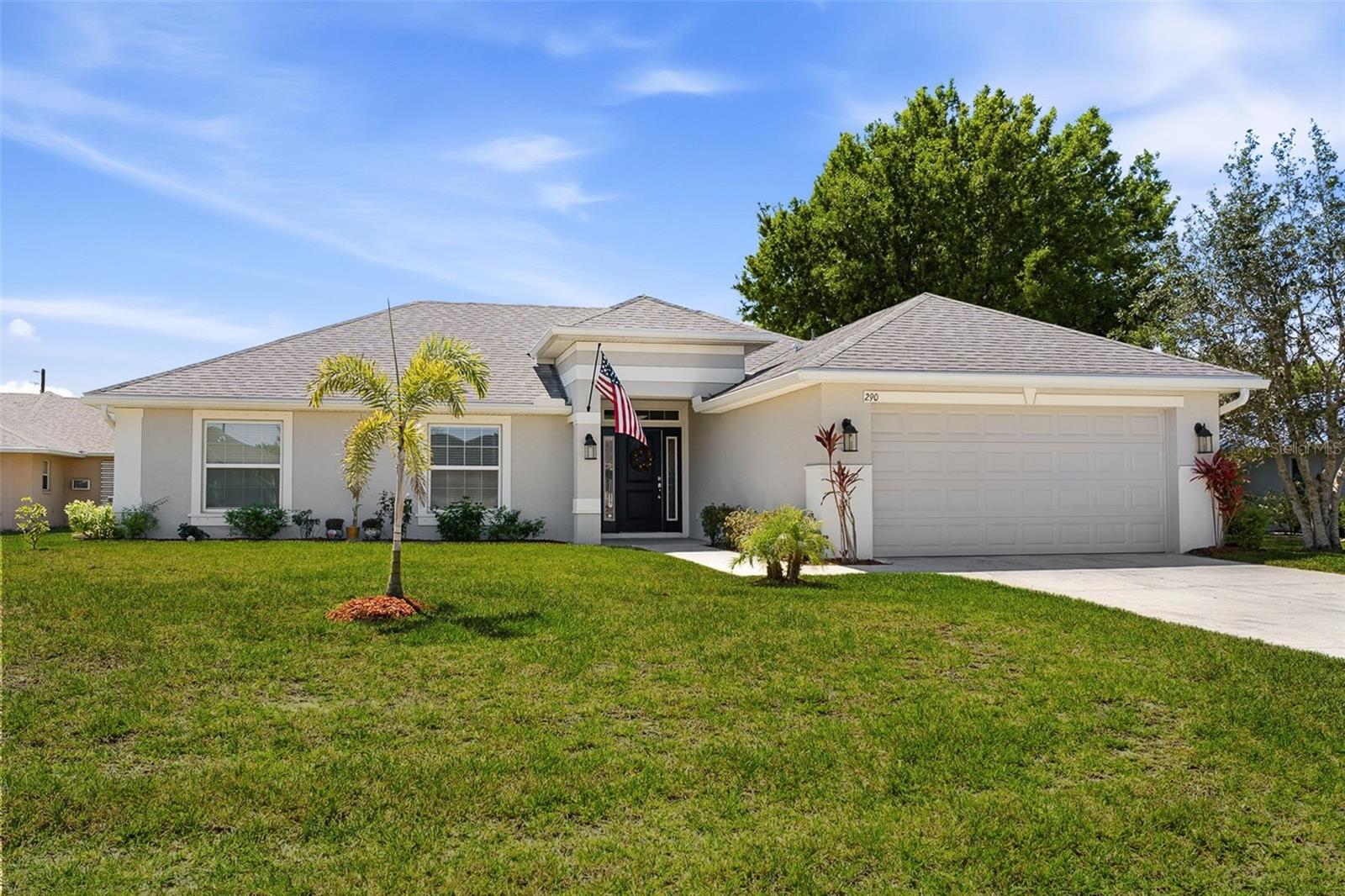 GREAT LOCATION!!! Welcome to this beautifully maintained, modern 4-bedroom, 2-bath home built in 2023, offering the perfect combination of style, comfort, and privacy. From the moment you walk in, you’re greeted by soaring high ceilings and an open floor plan that creates a bright, airy atmosphere throughout the home. Large windows bring in an abundance of natural light, making every space feel warm and inviting. The heart of the home is a sleek, GRANITE COUNTERTOPS IN KITCHEN AND BATHS, UPGRADED CABINETS, and stainless steel appliances. PAIR OF EXTERIOR FRENCH GLASS DOORS THAT LEAD OUT TO A COVERED LANAI, IRRIGATION SYSTEM WITH FLORITAM SOD PACKAGE. Step outside to enjoy a screened lanai, complete with a hot tub, perfect for relaxing evenings. The OVERSIZED/CORNER lot combined with a greenbelt in the backyard ensures enhanced privacy and a serene outdoor setting. Additional highlights include: 2-car garage with painted epoxy flooring, Epoxy-finished porch for durability and style, Light-filled interior with modern finishes throughout, Well-maintained, move-in ready condition. This home is ideal for buyers seeking newer construction, privacy, and upgraded outdoor living in one complete package.Conveniently located close to restaurants, shopping centers, and beautiful Gulf Coast beaches, this home offers both lifestyle and accessibility. Perfect opportunity to buy your dream home or a strong investment property in a growing Florida market. Interested? Let’s schedule a showing today.