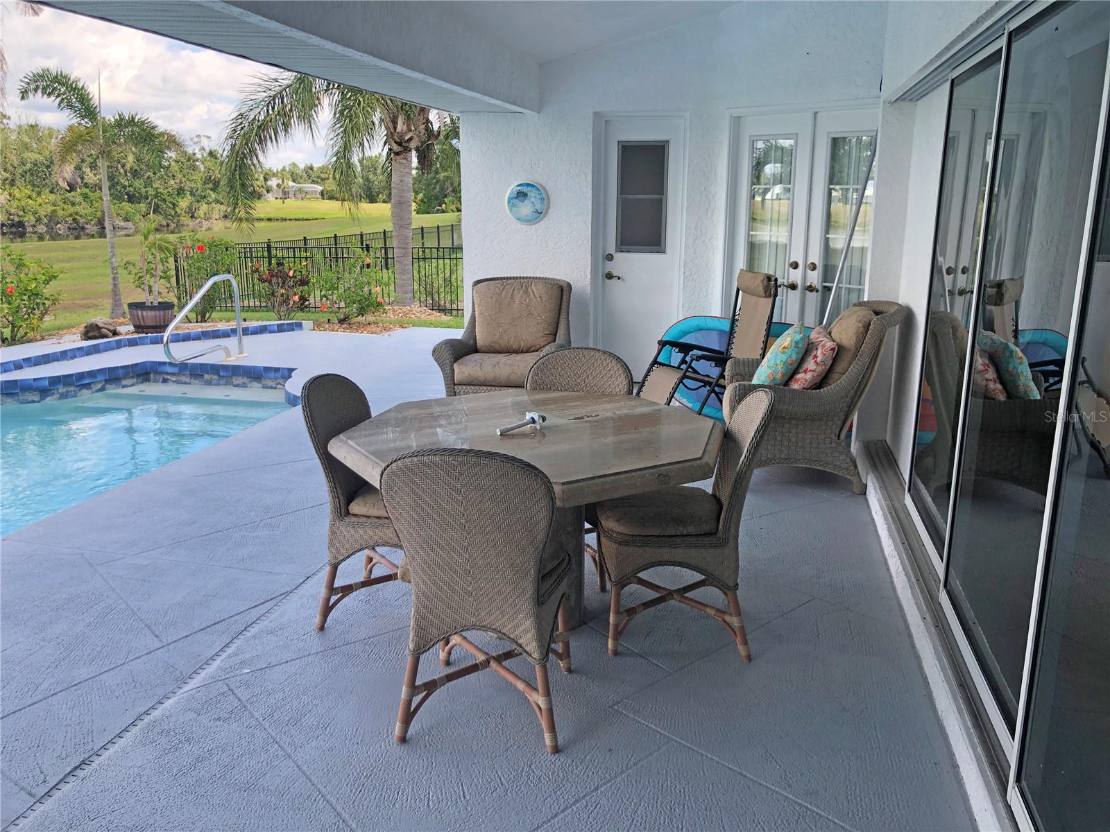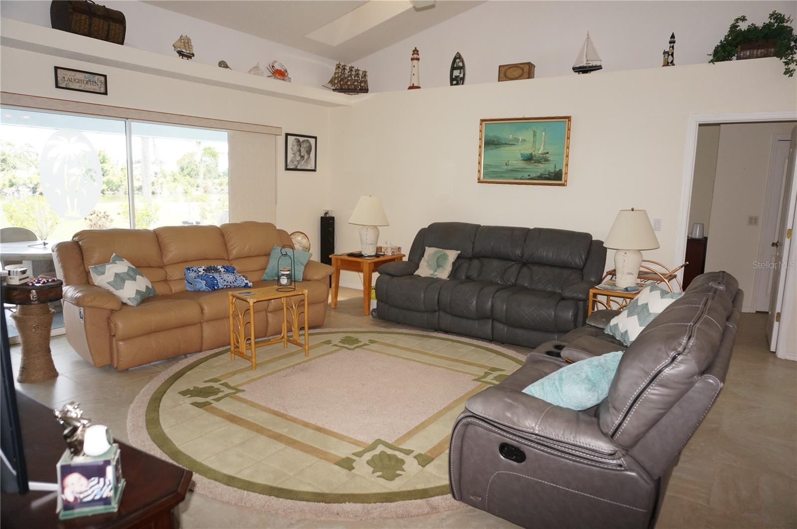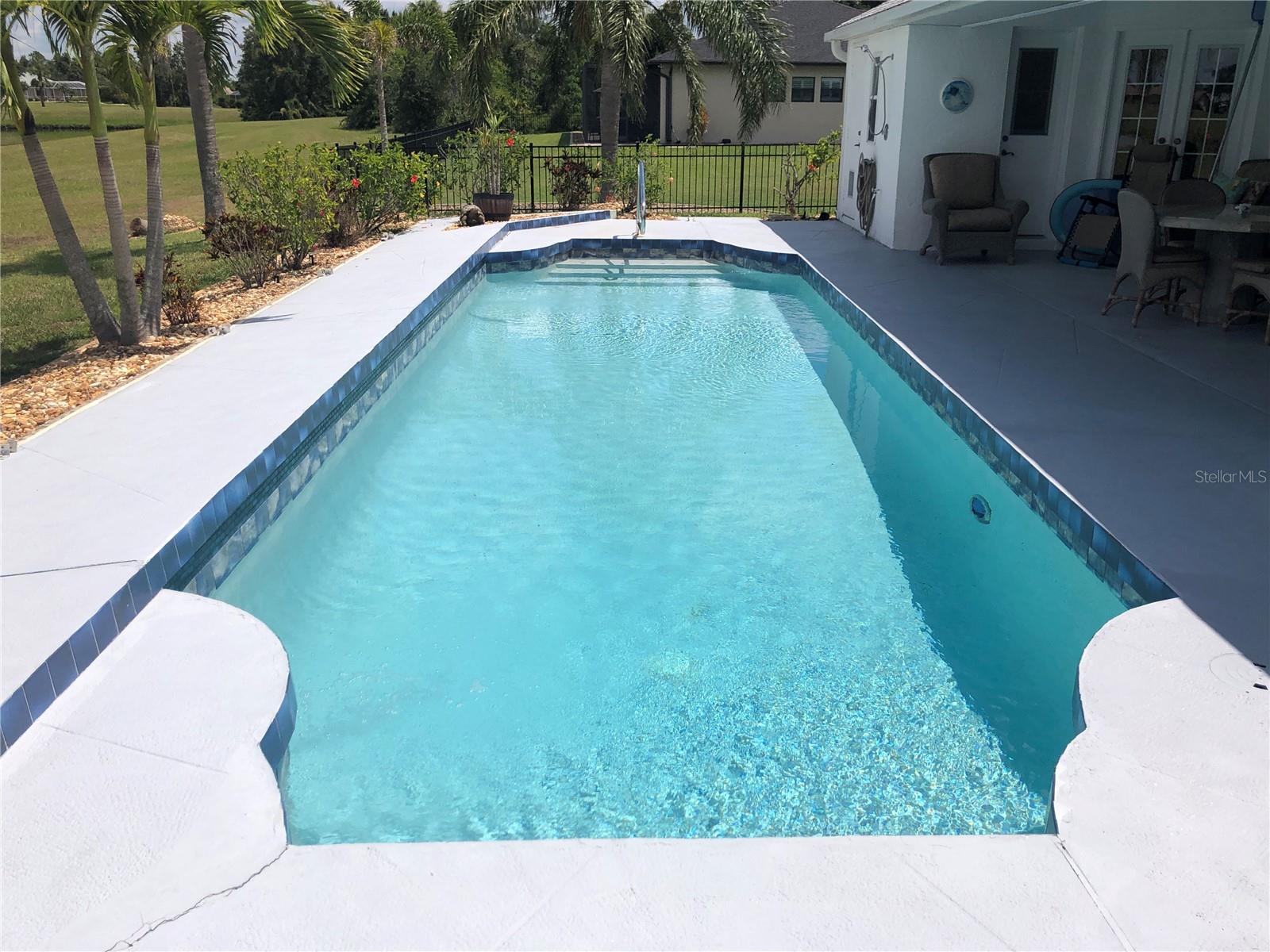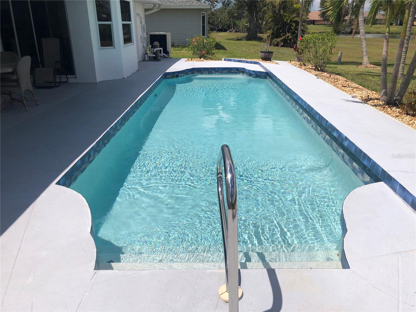 Impressive LAKE FRONT 3 Bedroom, 2.5 Bathroom home with attached 2 Car Garage located in the desirable deed restricted community of DEEP CREEK. LAKE VIEW and ACCESS. This light and bright home offers an open and split bedroom floor plan with Great Room, Dining Room, well equipped Kitchen, Dining Area and Inside Laundry. The Great Room features a cathedral ceiling, plant shelves, tile flooring and lanai access. The Kitchen has stainless appliances, built in desk, white cabinetry, tray ceiling and a Dining Area overlooking the pool and lake. The Inside Laundry offers a washer and dryer and skylight. The spacious Master Bedroom suite has two walk in closets, Lanai access via French doors and a private bathroom with dual sinks and a walk in shower. There are two additional good sized bedrooms, one is being used as a den. The guest bathroom has a tub/shower combo. Your living space extends through pocket sliding glass doors to the lanai and pool area with heated inground gunite pool, 1/2 bath access, outdoor shower, large covered lanai area, plenty of open deck for sunbathing and LAKE VIEW. Other features include double door entry with transom window, NEW skylights in laundry room and guest bathroom, arched doorway, kitchen reverse osmosis system, rain gutters, tile flooring in living areas and carpet in bedrooms, solar vent on roof pulls heat OUT. The garage has an opener, pull down attic, side door. **SOLD FURNISHED** except for personal items. ** NEW ROOF and Skylights 2023** NEW A/C 2018. Pool resurfaced and new pool tile 4 years ago. This home is perfect for a family or those expecting lots of winter visitors. Minutes from Golf at Deep Creek Golf Club, shopping, dining, I-75, entertainment and short distance to medical care, waterfront parks, boat ramps, fishing piers. This house is perfect for a family or those expecting lots of winter visitors!