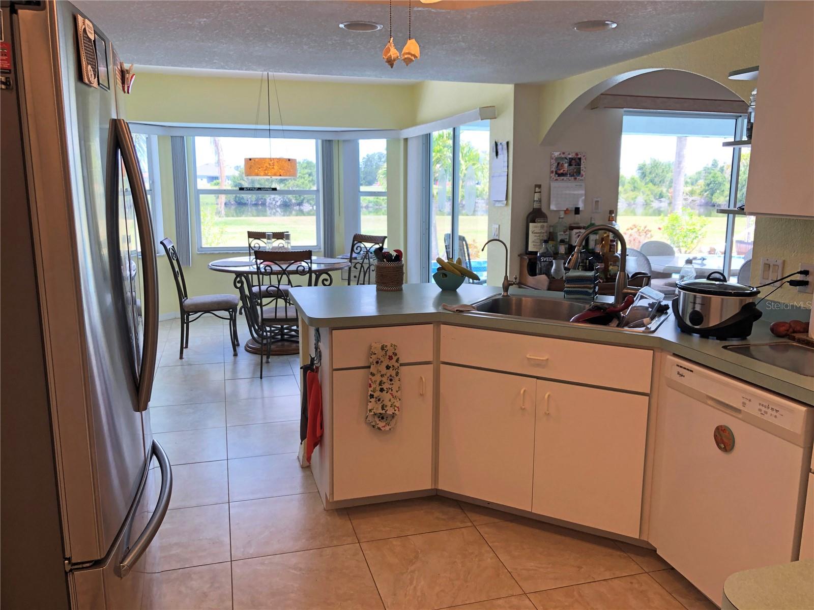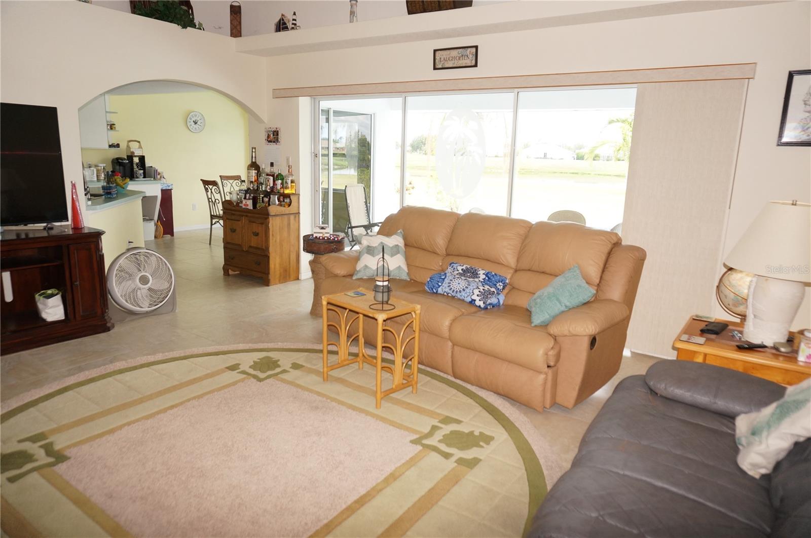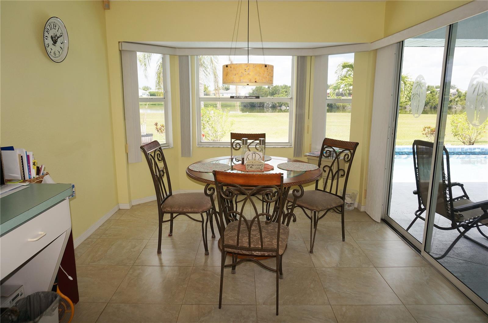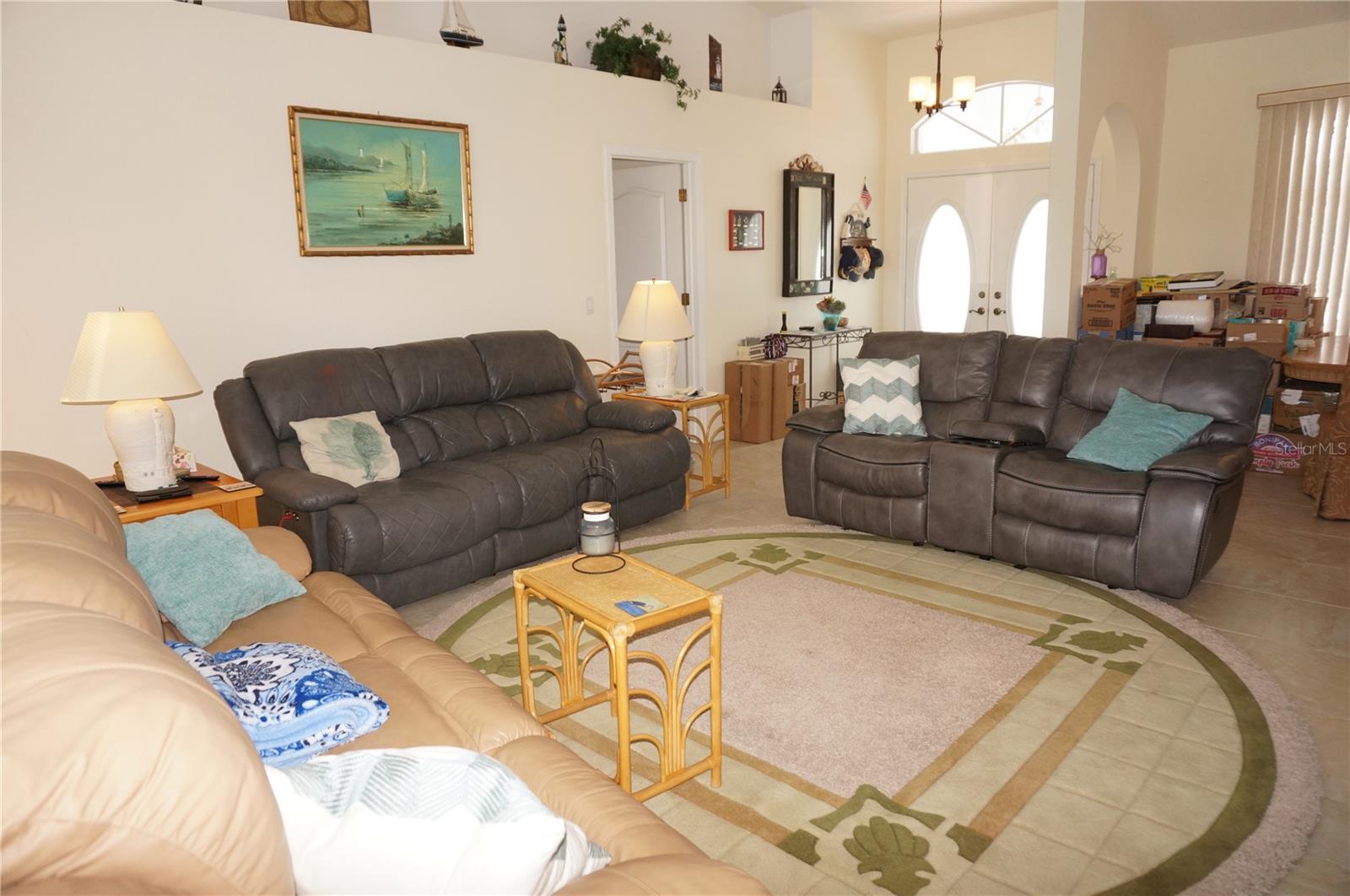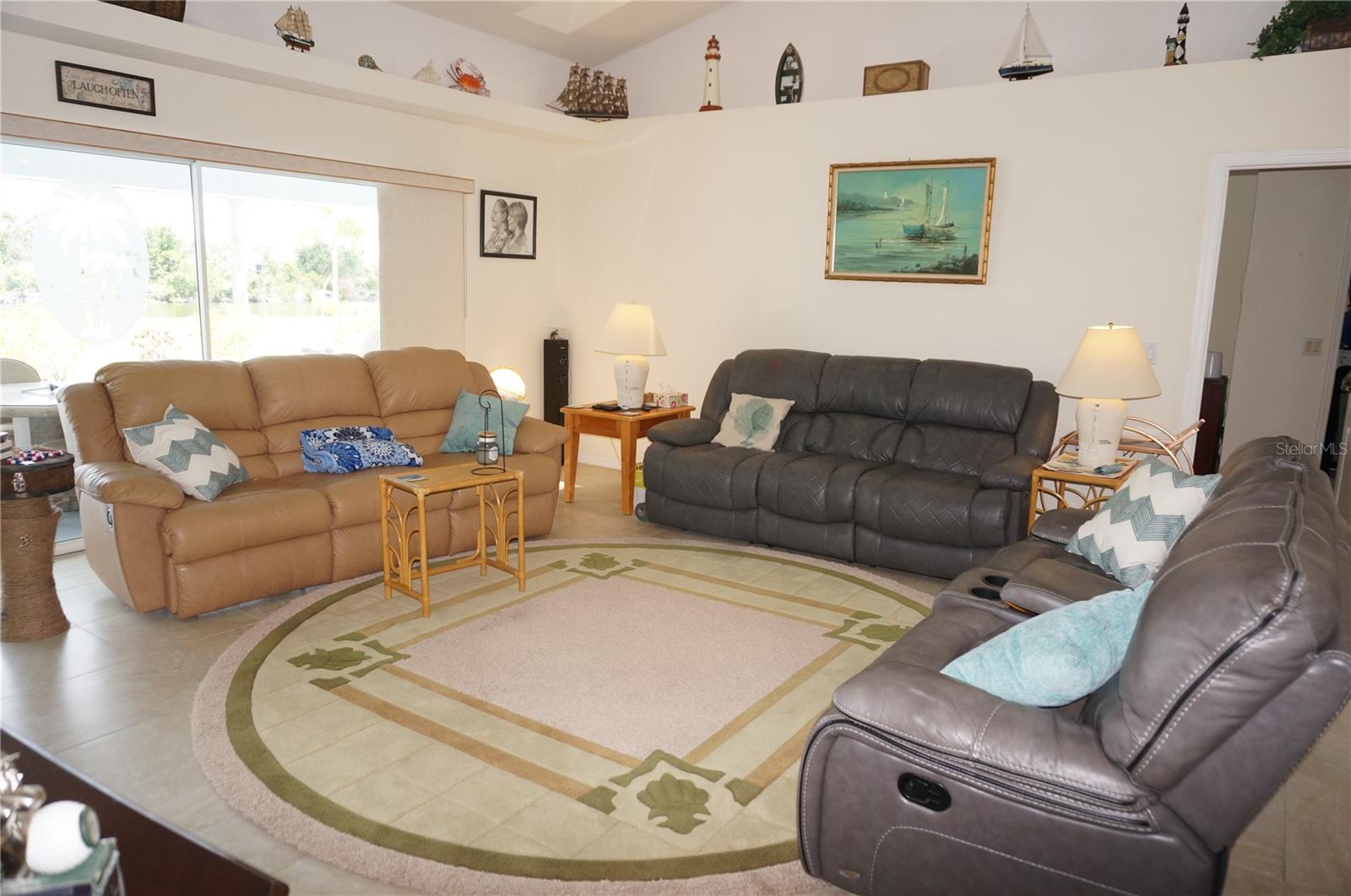 Impressive LAKE FRONT 3 Bedroom, 2.5 Bathroom home with attached 2 Car Garage located in the desirable deed restricted community of DEEP CREEK. LAKE VIEW and ACCESS. This light and bright home offers an open and split bedroom floor plan with Great Room, Dining Room, well equipped Kitchen, Dining Area and Inside Laundry. The Great Room features a cathedral ceiling, plant shelves, tile flooring and lanai access. The Kitchen has stainless appliances, built in desk, white cabinetry, tray ceiling and a Dining Area overlooking the pool and lake. The Inside Laundry offers a washer and dryer and skylight. The spacious Master Bedroom suite has two walk in closets, Lanai access via French doors and a private bathroom with dual sinks and a walk in shower. There are two additional good sized bedrooms, one is being used as a den. The guest bathroom has a tub/shower combo. Your living space extends through pocket sliding glass doors to the lanai and pool area with heated inground gunite pool, 1/2 bath access, outdoor shower, large covered lanai area, plenty of open deck for sunbathing and LAKE VIEW. Other features include double door entry with transom window, NEW skylights in laundry room and guest bathroom, arched doorway, kitchen reverse osmosis system, rain gutters, tile flooring in living areas and carpet in bedrooms, solar vent on roof pulls heat OUT. The garage has an opener, pull down attic, side door. **SOLD FURNISHED** except for personal items. ** NEW ROOF and Skylights 2023** NEW A/C 2018. Pool resurfaced and new pool tile 4 years ago. This home is perfect for a family or those expecting lots of winter visitors. Minutes from Golf at Deep Creek Golf Club, shopping, dining, I-75, entertainment and short distance to medical care, waterfront parks, boat ramps, fishing piers. This house is perfect for a family or those expecting lots of winter visitors!