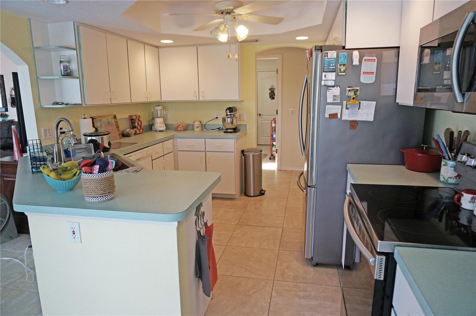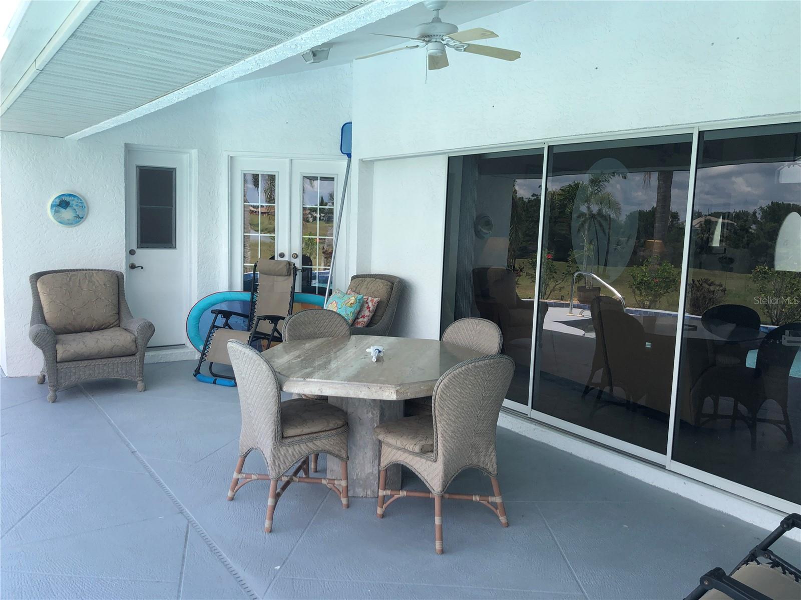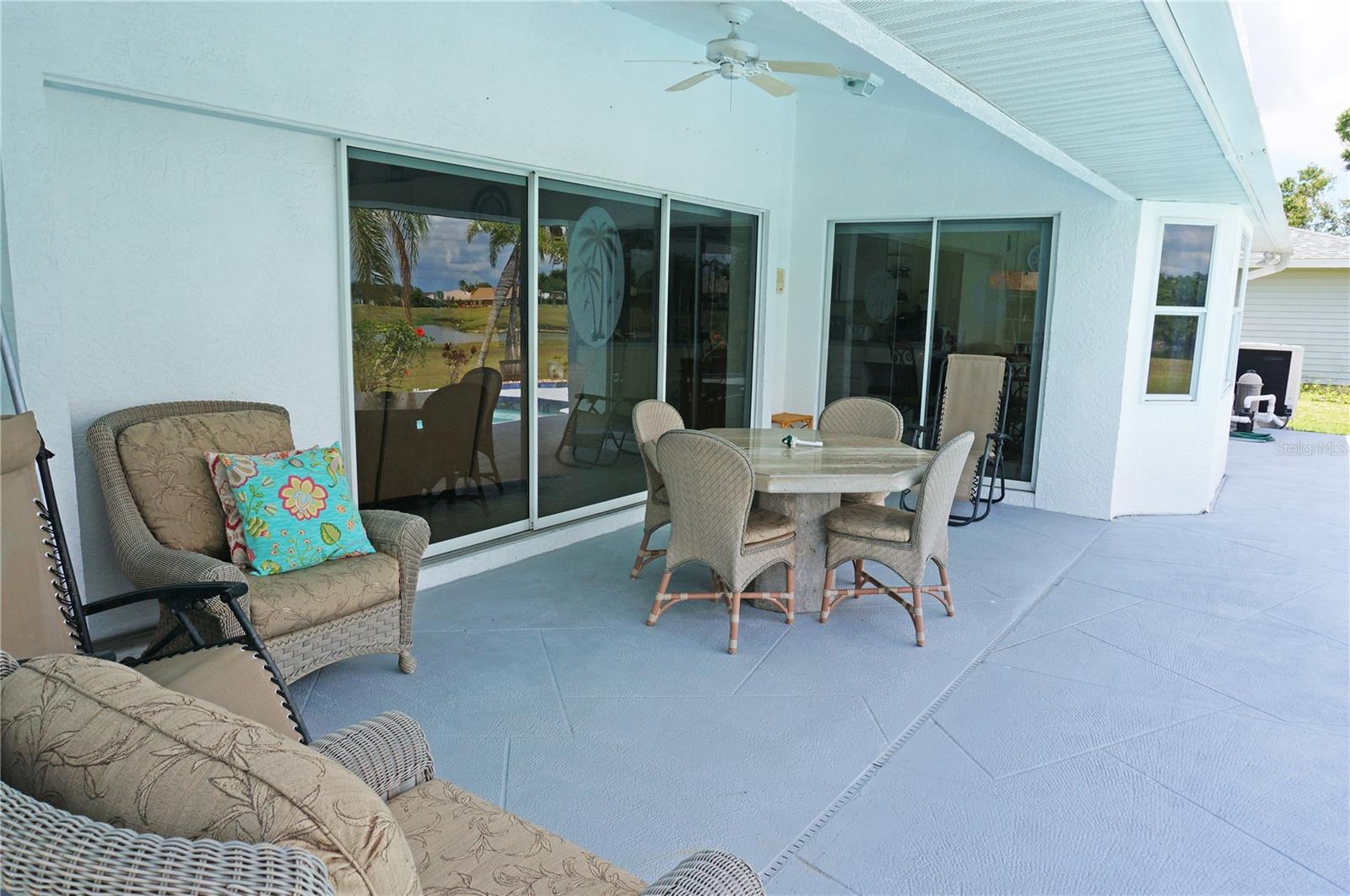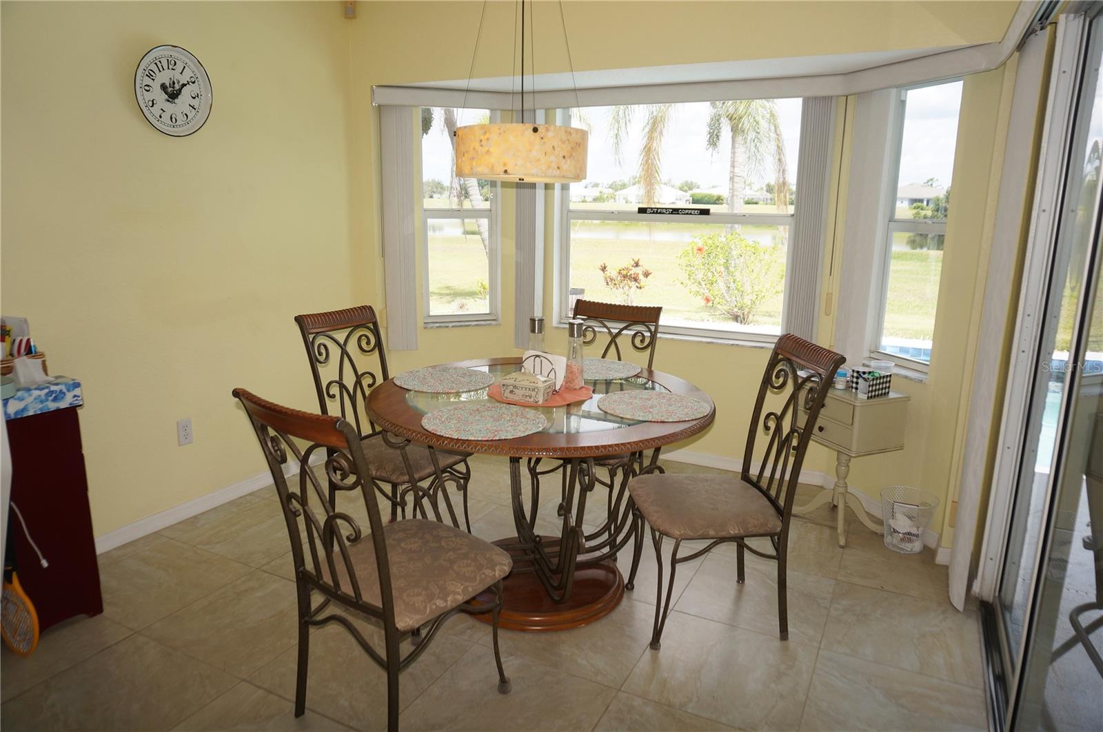 Impressive LAKE FRONT 3 Bedroom, 2.5 Bathroom home with attached 2 Car Garage located in the desirable deed restricted community of DEEP CREEK. LAKE VIEW and ACCESS. This light and bright home offers an open and split bedroom floor plan with Great Room, Dining Room, well equipped Kitchen, Dining Area and Inside Laundry. The Great Room features a cathedral ceiling, plant shelves, tile flooring and lanai access. The Kitchen has stainless appliances, built in desk, white cabinetry, tray ceiling and a Dining Area overlooking the pool and lake. The Inside Laundry offers a washer and dryer and skylight. The spacious Master Bedroom suite has two walk in closets, Lanai access via French doors and a private bathroom with dual sinks and a walk in shower. There are two additional good sized bedrooms, one is being used as a den. The guest bathroom has a tub/shower combo. Your living space extends through pocket sliding glass doors to the lanai and pool area with heated inground gunite pool, 1/2 bath access, outdoor shower, large covered lanai area, plenty of open deck for sunbathing and LAKE VIEW. Other features include double door entry with transom window, NEW skylights in laundry room and guest bathroom, arched doorway, kitchen reverse osmosis system, rain gutters, tile flooring in living areas and carpet in bedrooms, solar vent on roof pulls heat OUT. The garage has an opener, pull down attic, side door. **SOLD FURNISHED** except for personal items. ** NEW ROOF and Skylights 2023** NEW A/C 2018. Pool resurfaced and new pool tile 4 years ago. This home is perfect for a family or those expecting lots of winter visitors. Minutes from Golf at Deep Creek Golf Club, shopping, dining, I-75, entertainment and short distance to medical care, waterfront parks, boat ramps, fishing piers. This house is perfect for a family or those expecting lots of winter visitors!