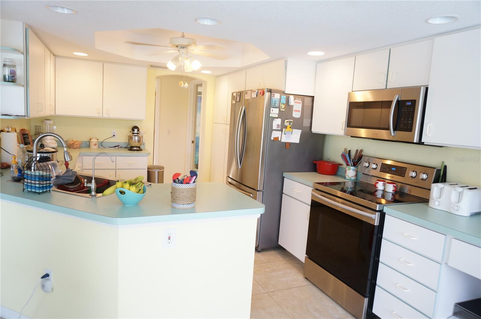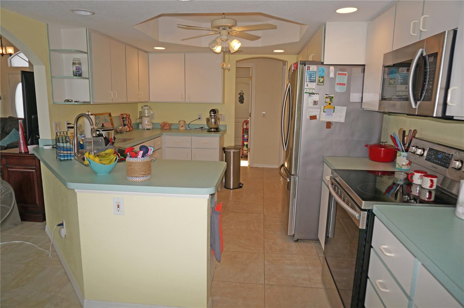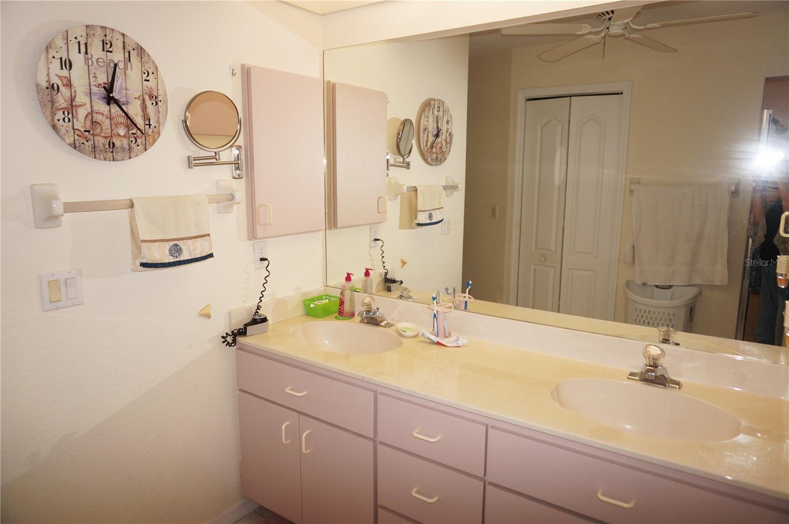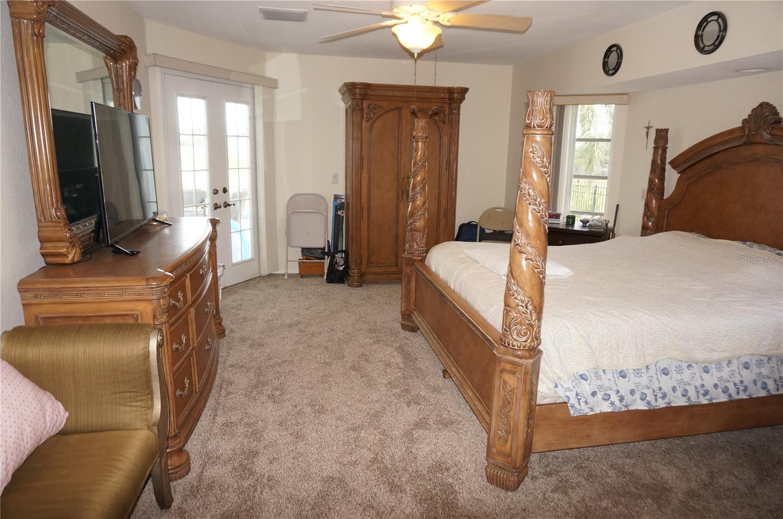 Impressive LAKE FRONT 3 Bedroom, 2.5 Bathroom home with attached 2 Car Garage located in the desirable deed restricted community of DEEP CREEK. LAKE VIEW and ACCESS. This light and bright home offers an open and split bedroom floor plan with Great Room, Dining Room, well equipped Kitchen, Dining Area and Inside Laundry. The Great Room features a cathedral ceiling, plant shelves, tile flooring and lanai access. The Kitchen has stainless appliances, built in desk, white cabinetry, tray ceiling and a Dining Area overlooking the pool and lake. The Inside Laundry offers a washer and dryer and skylight. The spacious Master Bedroom suite has two walk in closets, Lanai access via French doors and a private bathroom with dual sinks and a walk in shower. There are two additional good sized bedrooms, one is being used as a den. The guest bathroom has a tub/shower combo. Your living space extends through pocket sliding glass doors to the lanai and pool area with heated inground gunite pool, 1/2 bath access, outdoor shower, large covered lanai area, plenty of open deck for sunbathing and LAKE VIEW. Other features include double door entry with transom window, NEW skylights in laundry room and guest bathroom, arched doorway, kitchen reverse osmosis system, rain gutters, tile flooring in living areas and carpet in bedrooms, solar vent on roof pulls heat OUT. The garage has an opener, pull down attic, side door. **SOLD FURNISHED** except for personal items. ** NEW ROOF and Skylights 2023** NEW A/C 2018. Pool resurfaced and new pool tile 4 years ago. This home is perfect for a family or those expecting lots of winter visitors. Minutes from Golf at Deep Creek Golf Club, shopping, dining, I-75, entertainment and short distance to medical care, waterfront parks, boat ramps, fishing piers. This house is perfect for a family or those expecting lots of winter visitors!