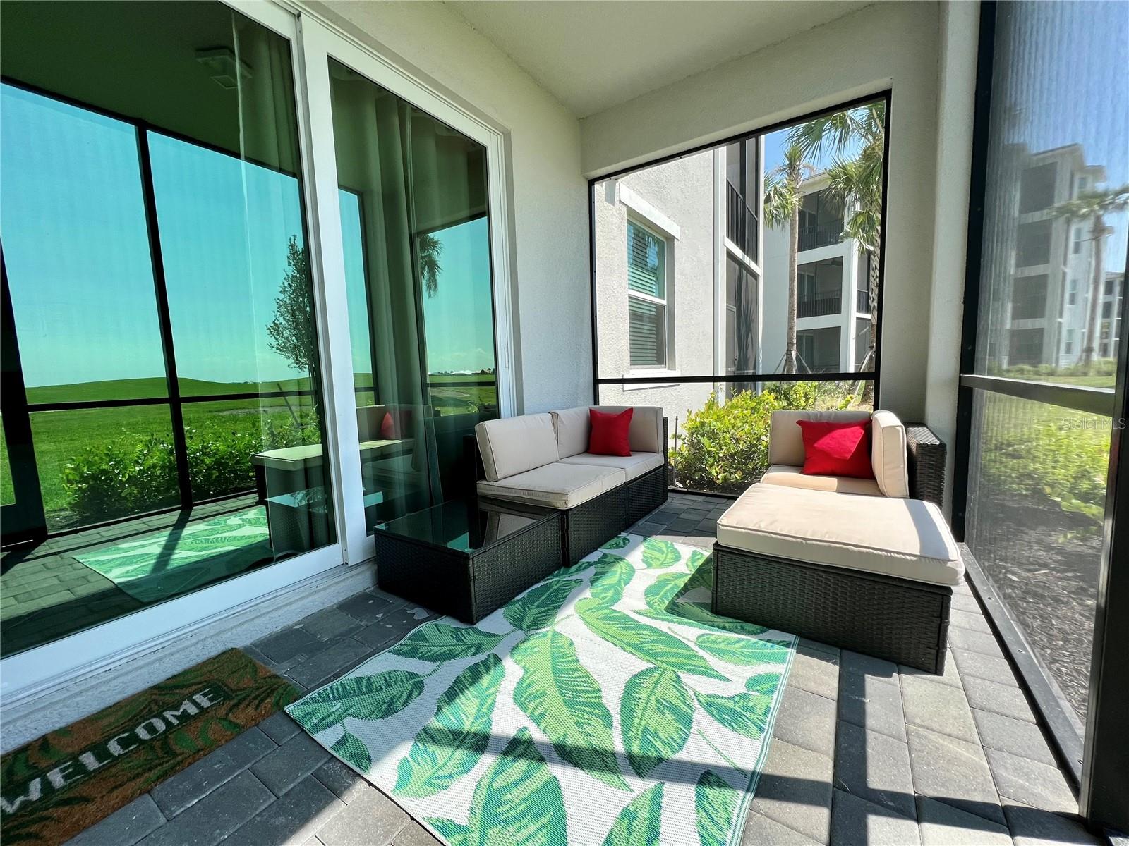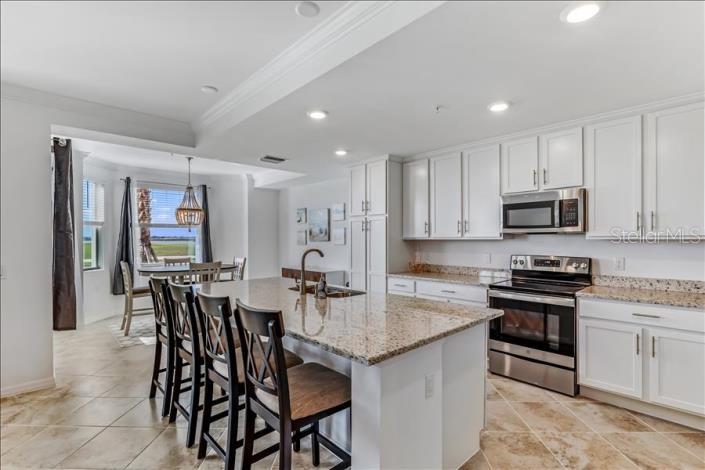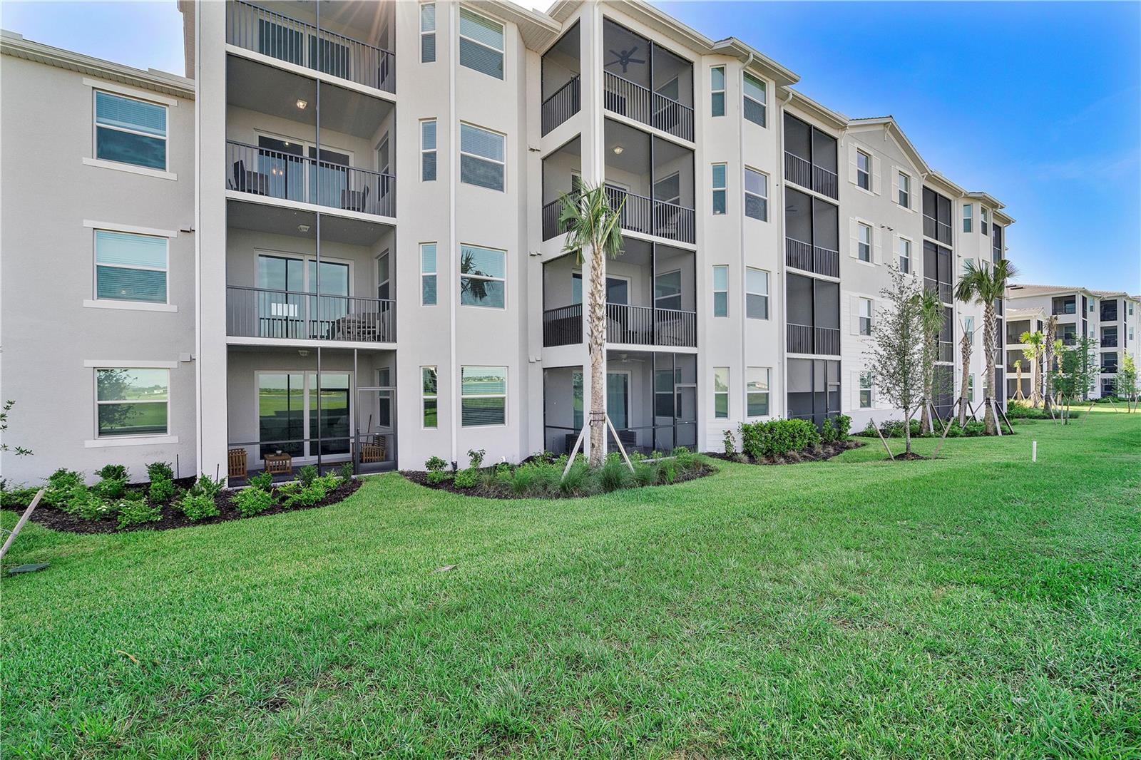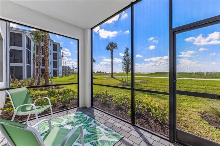Welcome home to the 1st floor Birkdale model with GOLF membership in Babcock Ranch! It is located in Babcock National, a gated golf and country club community within Babcock Ranch. The stunning home features 2 large bedrooms and 2 full bathrooms with crown molding, ceiling fans, lots of natural lighting, and diagonal tile flooring in the main living spaces, and an outdoor 5x7 ft. detached concrete storage unit. The kitchen is equipped with granite countertops, ample cabinet storage, a large breakfast island, and stainless-steel appliances. The living/dining space overlooks a covered/screened lanai with a view of the Lake Babcock & golf course beyond. Amenities include a championship 18-hole golf course, a resort-style pool with lap lanes and a spa, a state-of-the-art fitness center, a tennis center, pickleball, bocce ball, a community clubhouse with dining options, and much more.