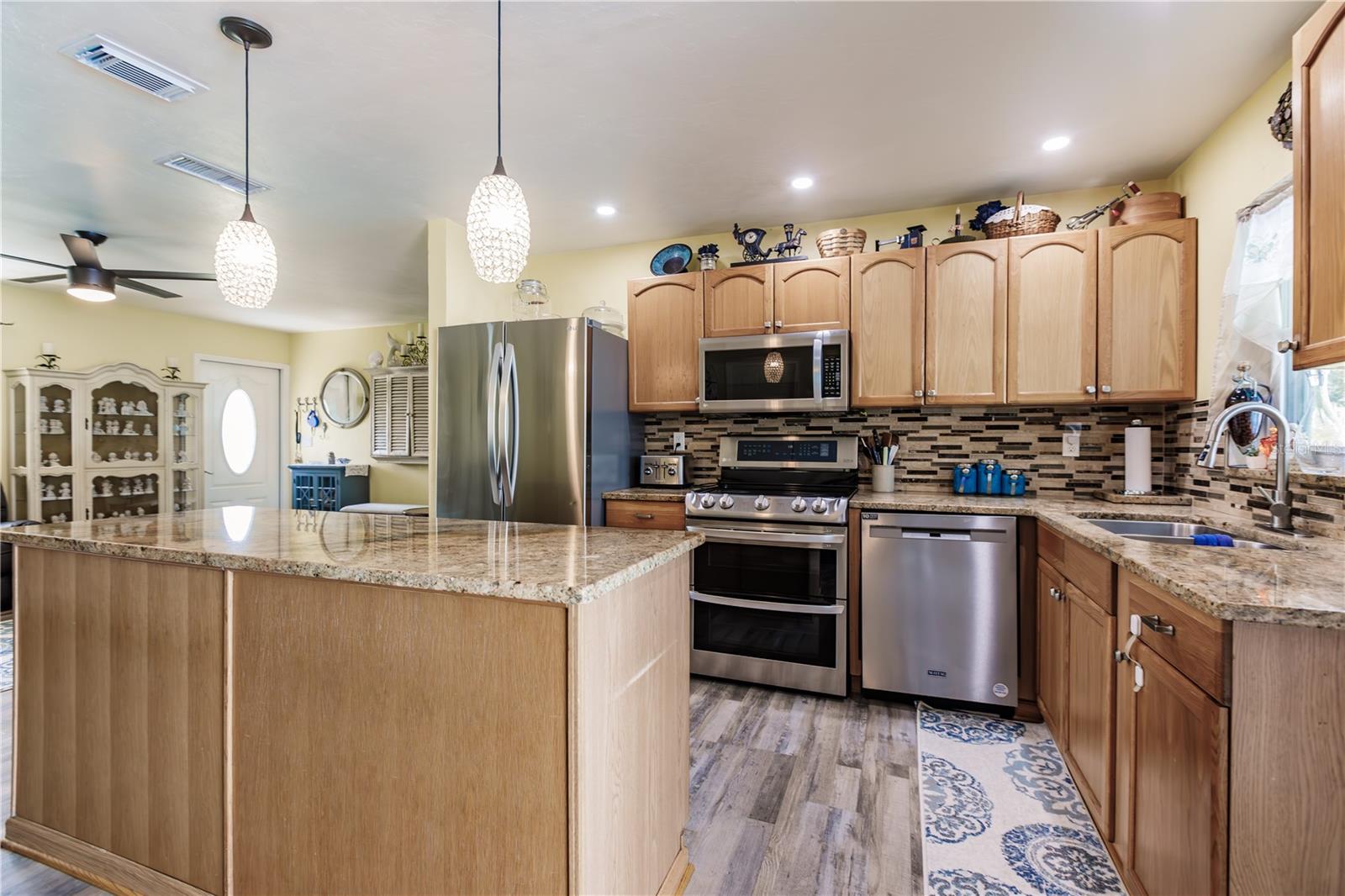 Motivated Sellers...Needs some TLC but a Fantastic Value! Did not flood from the hurricane. Pool home with Deeded Boat Slip with Direct Boating Access! This 3 bedroom/2 bath home, nestled on almost half an acre, offers the perfect blend of comfort and convenience. New roof in 2022. The kitchen features stainless steel appliances, ample cabinet space, and a breakfast bar for casual dining. Situated on almost half an acre, this property offers plenty of space for gardening, outdoor activities, and potential expansion. The property also includes a convenient small storage shed. The two bigger sheds shown in the aerials do not convey. Don't miss out on this great opportunity. Needs TLC but has great potential.