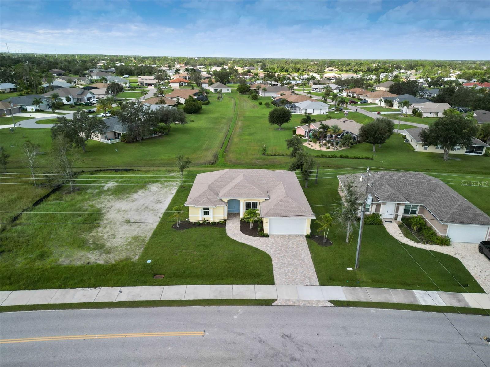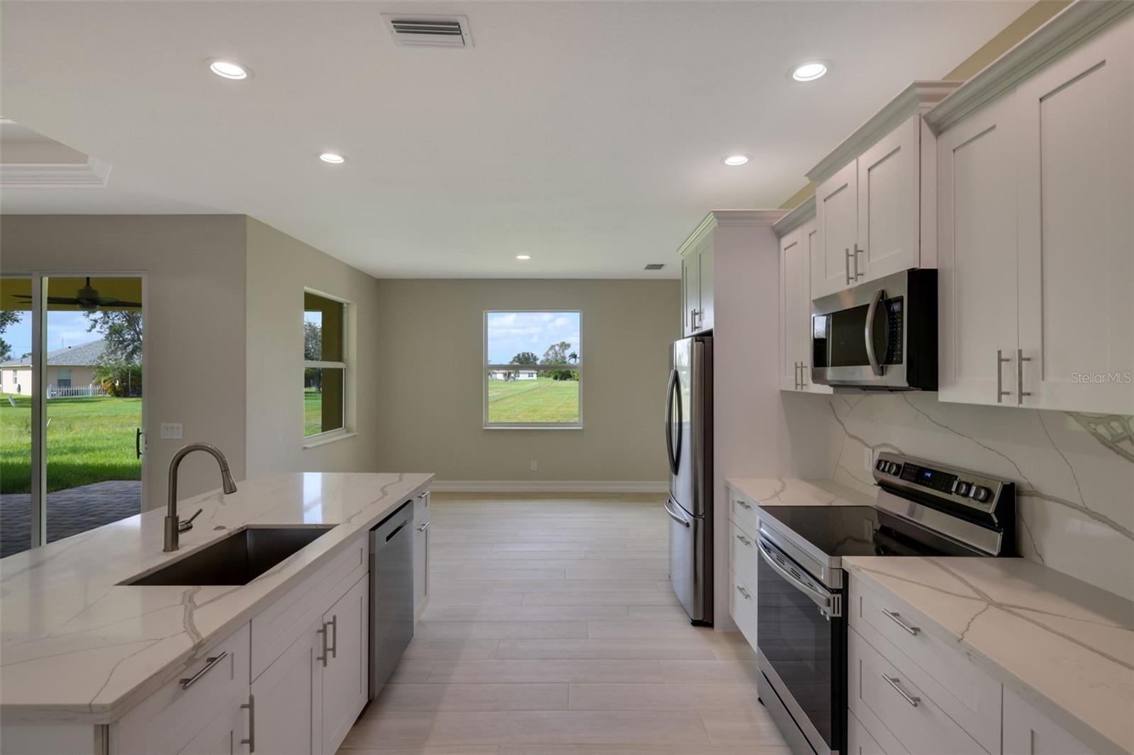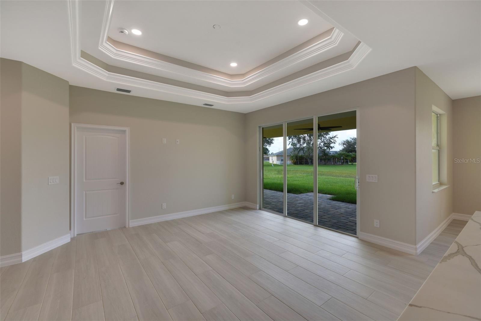 One or more photo(s) has been virtually staged. BRAND NEW !! MOVE IN !! CUSTOM BUILDER SERVING 44 YEARS IN CHARLOTTE COUNTY. GARNET MODEL- PLATINUM EDITION. WATCH VIRTUAL TOUR! Some photos are virtual images. Welcome to your dream home in sunny Florida, where modern luxury and elegance meet. This exquisite single-family residence boasts an inviting open-concept floor plan, designed to redefine the way you live and entertain with friends and family. The grand entry through the double doors of the home boasts a great room with double-step tray ceilings that add such dramatic detail. Take in this view of the backyard with lush landscapes and become one with nature and wildlife with no immediate neighbors. Designer Country Kitchen features stylish solid wood dimensional cabinetry that seamlessly blends form and function. The High-end, Samsung stainless steel appliance package and pristine quartz countertops and backsplash display this kitchen as a culinary masterpiece. ALL flooring is beautiful 48" plank porcelain tile with NO carpet. With three spacious bedrooms and a versatile den/office flex space, this home adapts to your lifestyle. Work from home in a dedicated office or transform it into a cozy library or guest room. The grand entry through the double doors of the home and marvel at the 9'4"foot high ceilings, 5 1/4" baseboards with trim, crown molding, and premium door package. The master bedroom is truly a sanctuary including his and her walk-in closets, and a spacious elegant ensuite bathroom. Double sink vanity, custom glass shower enclosure with 48" mildew-resistant Porcelain shower wall. The large paver brick lanai is ready for your outdoor kitchen and the expansive backyard has plenty of room for your dream pool. Beautiful curb appeal including lush landscaping, and a paver brick driveway and walkway that lead you to the entrance of your new home. Extras include energy-efficiency LED lights throughout, with a highly efficient air conditioning system, and icynene foam insulation to help save on the energy bill. The security and communication hub is located in the 2-car garage. This home is more than just a house; it's a lifestyle. Experience the best of Florida living in this unparalleled retreat.
