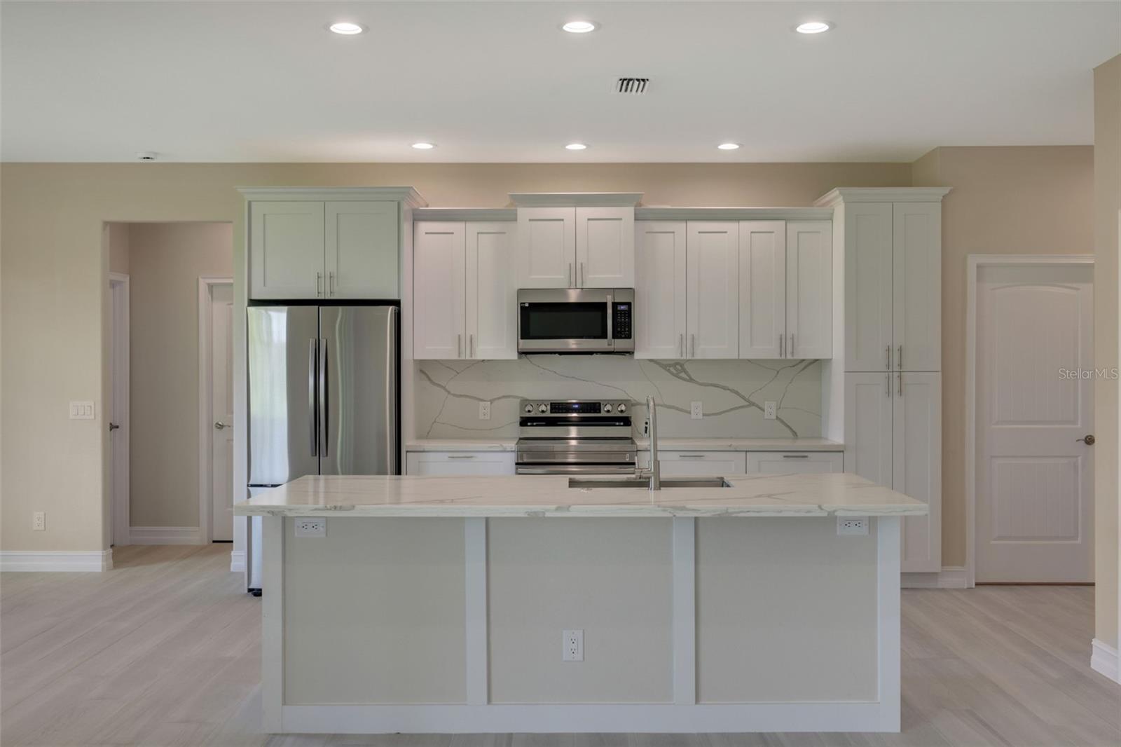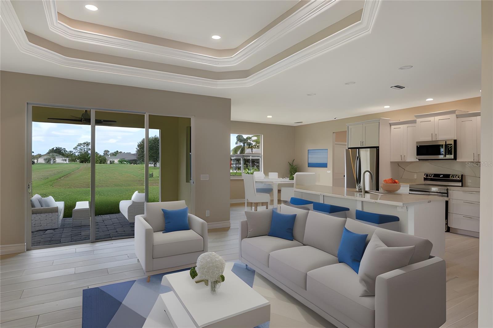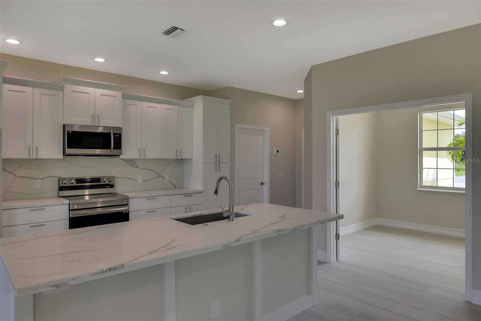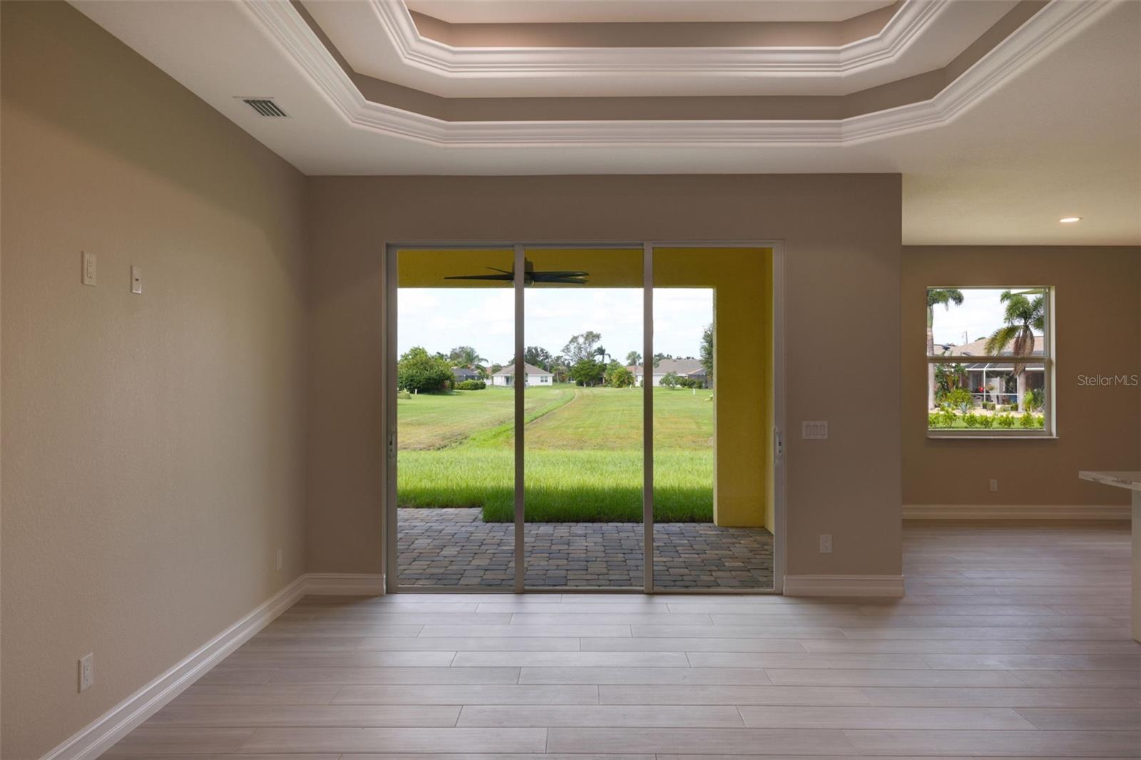 One or more photo(s) has been virtually staged. BRAND NEW !! MOVE IN !! CUSTOM BUILDER SERVING 44 YEARS IN CHARLOTTE COUNTY. GARNET MODEL- PLATINUM EDITION. WATCH VIRTUAL TOUR! Some photos are virtual images. Welcome to your dream home in sunny Florida, where modern luxury and elegance meet. This exquisite single-family residence boasts an inviting open-concept floor plan, designed to redefine the way you live and entertain with friends and family. The grand entry through the double doors of the home boasts a great room with double-step tray ceilings that add such dramatic detail. Take in this view of the backyard with lush landscapes and become one with nature and wildlife with no immediate neighbors. Designer Country Kitchen features stylish solid wood dimensional cabinetry that seamlessly blends form and function. The High-end, Samsung stainless steel appliance package and pristine quartz countertops and backsplash display this kitchen as a culinary masterpiece. ALL flooring is beautiful 48" plank porcelain tile with NO carpet. With three spacious bedrooms and a versatile den/office flex space, this home adapts to your lifestyle. Work from home in a dedicated office or transform it into a cozy library or guest room. The grand entry through the double doors of the home and marvel at the 9'4"foot high ceilings, 5 1/4" baseboards with trim, crown molding, and premium door package. The master bedroom is truly a sanctuary including his and her walk-in closets, and a spacious elegant ensuite bathroom. Double sink vanity, custom glass shower enclosure with 48" mildew-resistant Porcelain shower wall. The large paver brick lanai is ready for your outdoor kitchen and the expansive backyard has plenty of room for your dream pool. Beautiful curb appeal including lush landscaping, and a paver brick driveway and walkway that lead you to the entrance of your new home. Extras include energy-efficiency LED lights throughout, with a highly efficient air conditioning system, and icynene foam insulation to help save on the energy bill. The security and communication hub is located in the 2-car garage. This home is more than just a house; it's a lifestyle. Experience the best of Florida living in this unparalleled retreat.