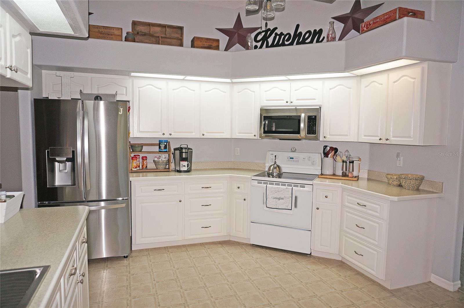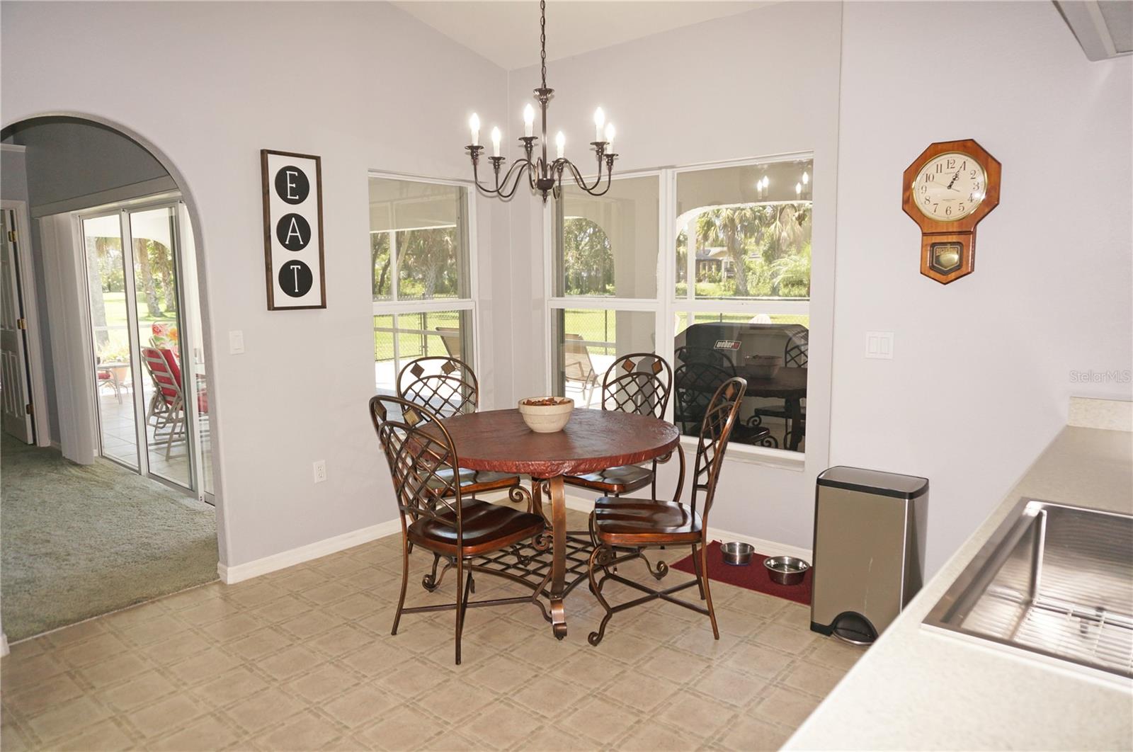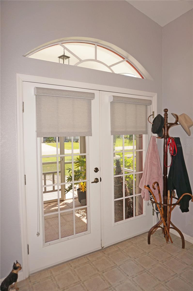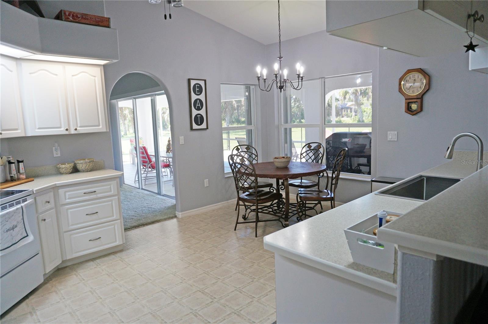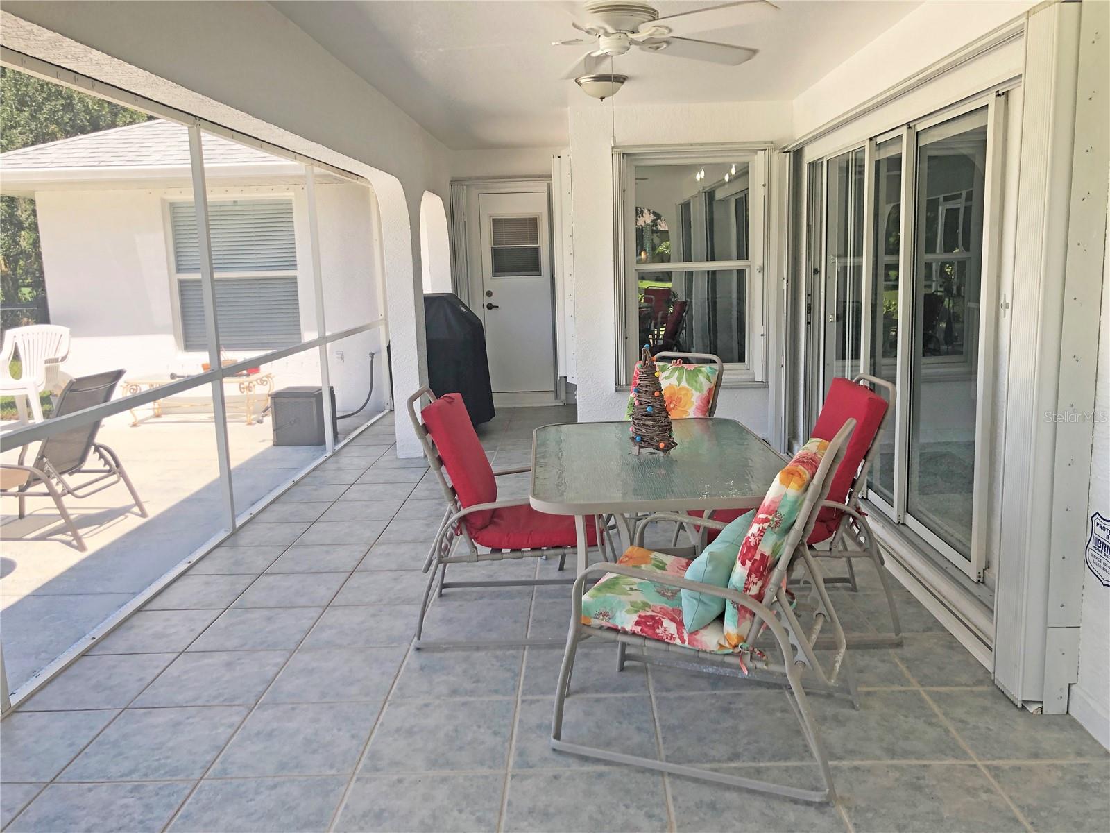 Impressive 3 Bedroom, 2 Bathroom home with attached oversized 2 Car Garage. Located on a quiet dead end street with cul-de-sac in the desirable deed restricted community of DEEP CREEK. Not in a flood zone. This light and bright home offers an open and split bedroom floor plan with Living Room, Family Room, well equipped Kitchen, Inside Laundry. The Living Room and Family Room have plant shelves and the Family Room has a cathedral ceiling. The Kitchen features nice cabinets, stainless refrigerator, stainless microwave, oven/range, dishwasher, nice cabinets, breakfast bar, closet pantry and dining area. The Inside Laundry has a washer, dryer, sink and cabinets.The Master Bedroom suite offers lanai access via French doors, two walk in closets and private bathroom with his and hers sinks, garden tub and walk in shower. There are two additional generous sized bedrooms with walk in closet and the guest bathroom has a tub/shower combo and lanai access. Your living space extends via sliding glass doors to the large 34x10 screened covered lanai and on to the fenced 34x20 patio. Other features include screened front entry, double door entry with transom window, storage in the garage, rain gutters, arched doorways, manabloc plumbing, hurricane shutters and Greenbelt View. Utilities are county water and sewer. This home is minutes from Golf, shopping, dining, I-75, entertainment and a short drive to medical care, waterfront parks, boat ramps and fishing piers. This is a beautiful spacious home in a great community.