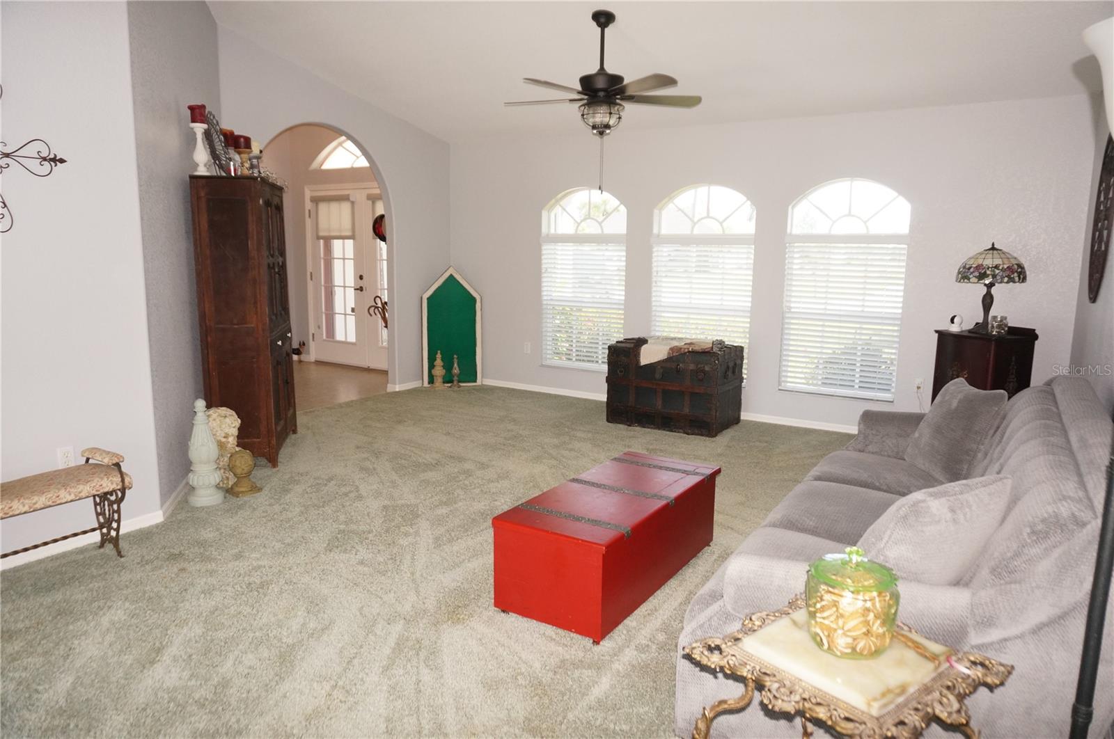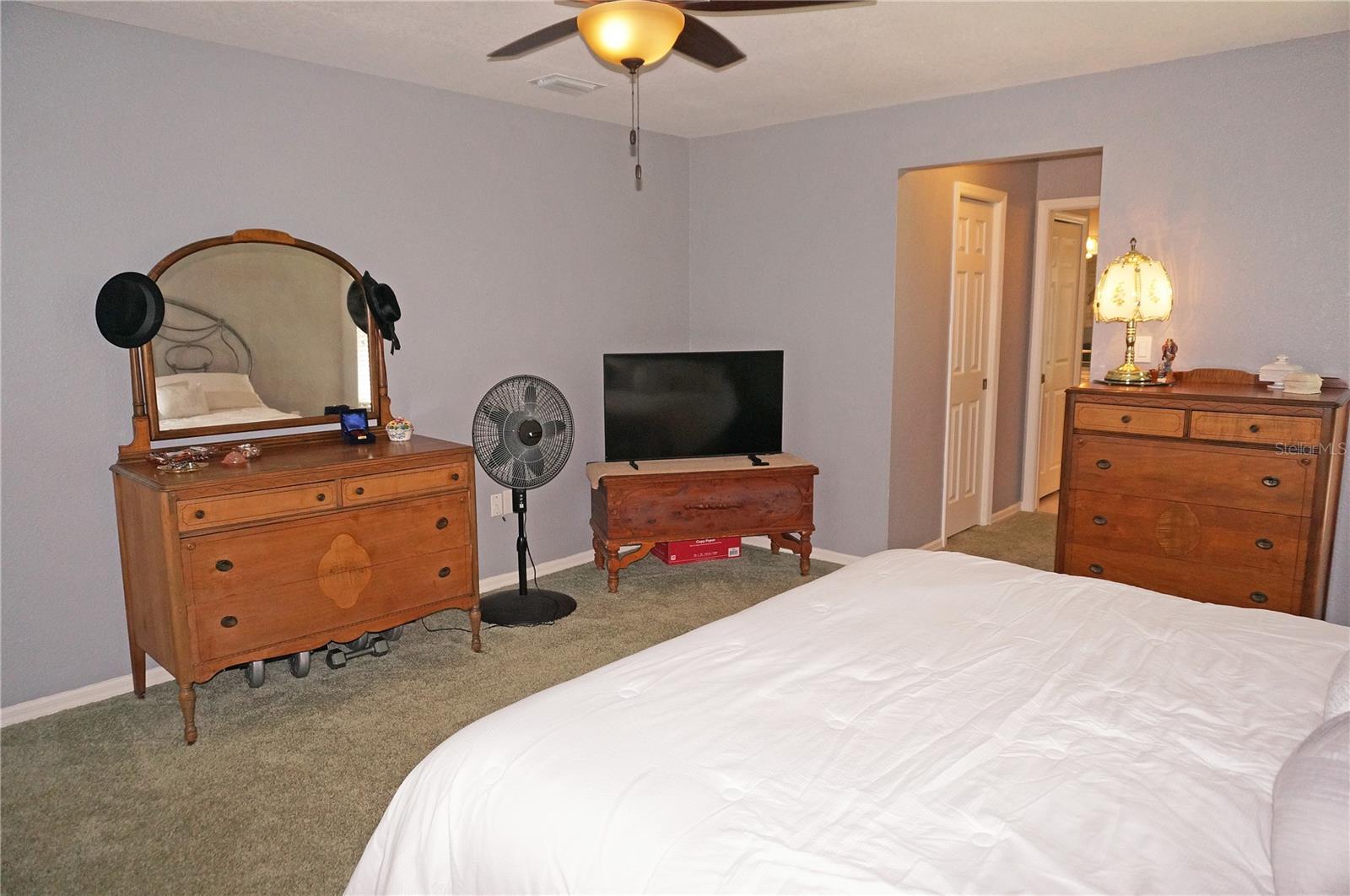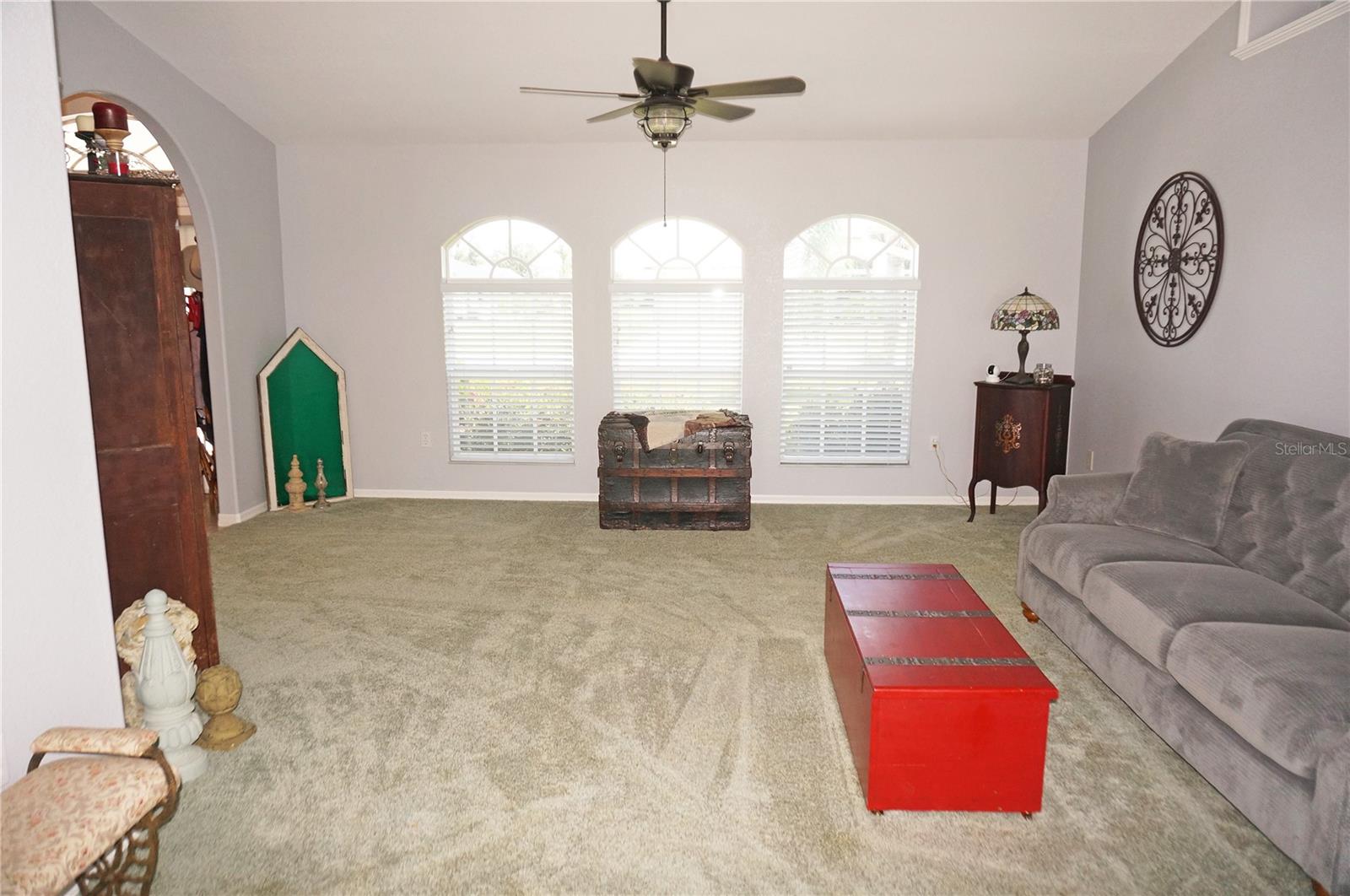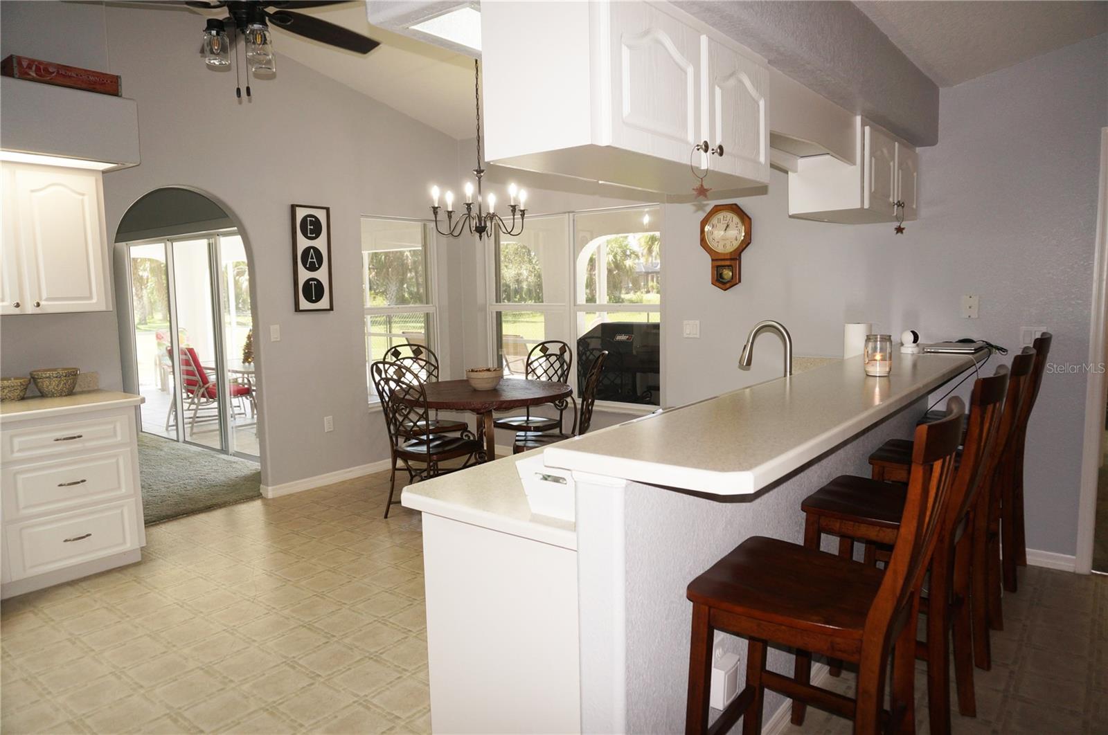 Impressive 3 Bedroom, 2 Bathroom home with attached oversized 2 Car Garage. Located on a quiet dead end street with cul-de-sac in the desirable deed restricted community of DEEP CREEK. Not in a flood zone. This light and bright home offers an open and split bedroom floor plan with Living Room, Family Room, well equipped Kitchen, Inside Laundry. The Living Room and Family Room have plant shelves and the Family Room has a cathedral ceiling. The Kitchen features nice cabinets, stainless refrigerator, stainless microwave, oven/range, dishwasher, nice cabinets, breakfast bar, closet pantry and dining area. The Inside Laundry has a washer, dryer, sink and cabinets.The Master Bedroom suite offers lanai access via French doors, two walk in closets and private bathroom with his and hers sinks, garden tub and walk in shower. There are two additional generous sized bedrooms with walk in closet and the guest bathroom has a tub/shower combo and lanai access. Your living space extends via sliding glass doors to the large 34x10 screened covered lanai and on to the fenced 34x20 patio. Other features include screened front entry, double door entry with transom window, storage in the garage, rain gutters, arched doorways, manabloc plumbing, hurricane shutters and Greenbelt View. Utilities are county water and sewer. This home is minutes from Golf, shopping, dining, I-75, entertainment and a short drive to medical care, waterfront parks, boat ramps and fishing piers. This is a beautiful spacious home in a great community.