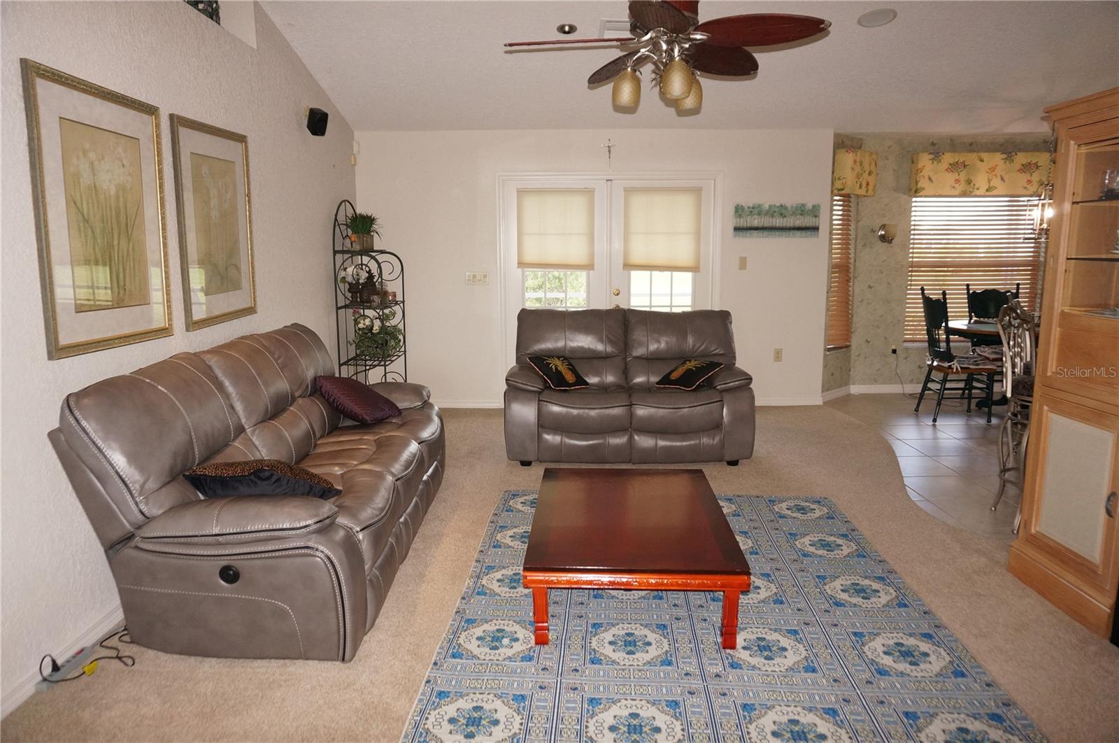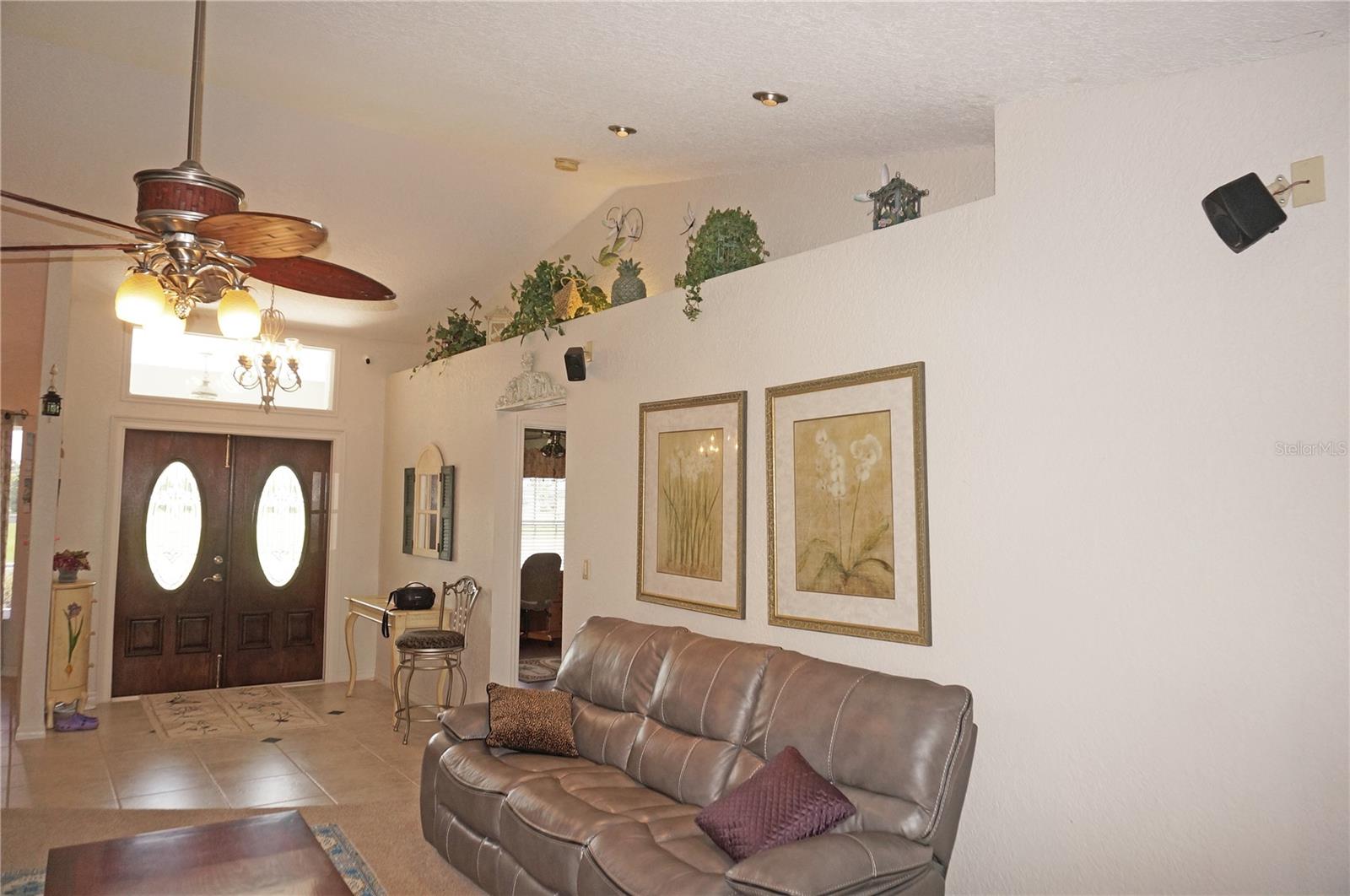 Impressive 3 Bedroom, 2 Bathroom home with attached oversized 2 Car Garage located in the desirable deed restricted community of DEEP CREEK. NOT in a flood zone. This light and bright home offers an open and split bedroom floor plan with Great Room, well equipped Kitchen, screened Lanai, Inside Laundry with front loading washer and dryer and cabinets. There is a grand foyer with tiled flooring. The Great Room has a cathedral ceiling, plant shelves, carpet and French Doors to the screened Lanai. The Kitchen features stainless appliances, pantry closet, breakfast bar, built in wine rack over the refrigerator and dining area with large windows offering a greenbelt view. There is a separate Dining Room with large windows as well offering lots of natural light. The spacious Master Bedroom suite has carpet, a walk in closet and private bathroom with walk in shower and sink with vanity space to apply your makeup. There are two additional generous sized bedrooms with wood laminate flooring and the guest bathroom has a tub/shower combination. There is an oversized attached 2 car garage with side door, pull down access to the attic, laundry tub. Your living space extends via French doors to the 25 x10 screened porch with diagonal lay tile flooring and fabulous greenbelt view. Other features include double door entry with transom window, hurricane shutters and windload garage door, county water and sewer. This home is minutes from shopping, dining, Golf, entertainment, I-75 and is a short drive to medical care, waterfront parks, fishing piers and boat ramps. This home is perfect for a family or for a winter retreat where you can entertain lots of friends!