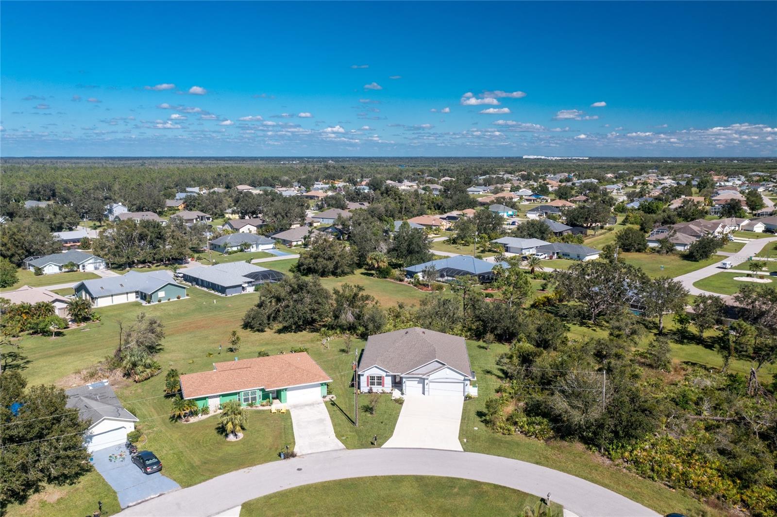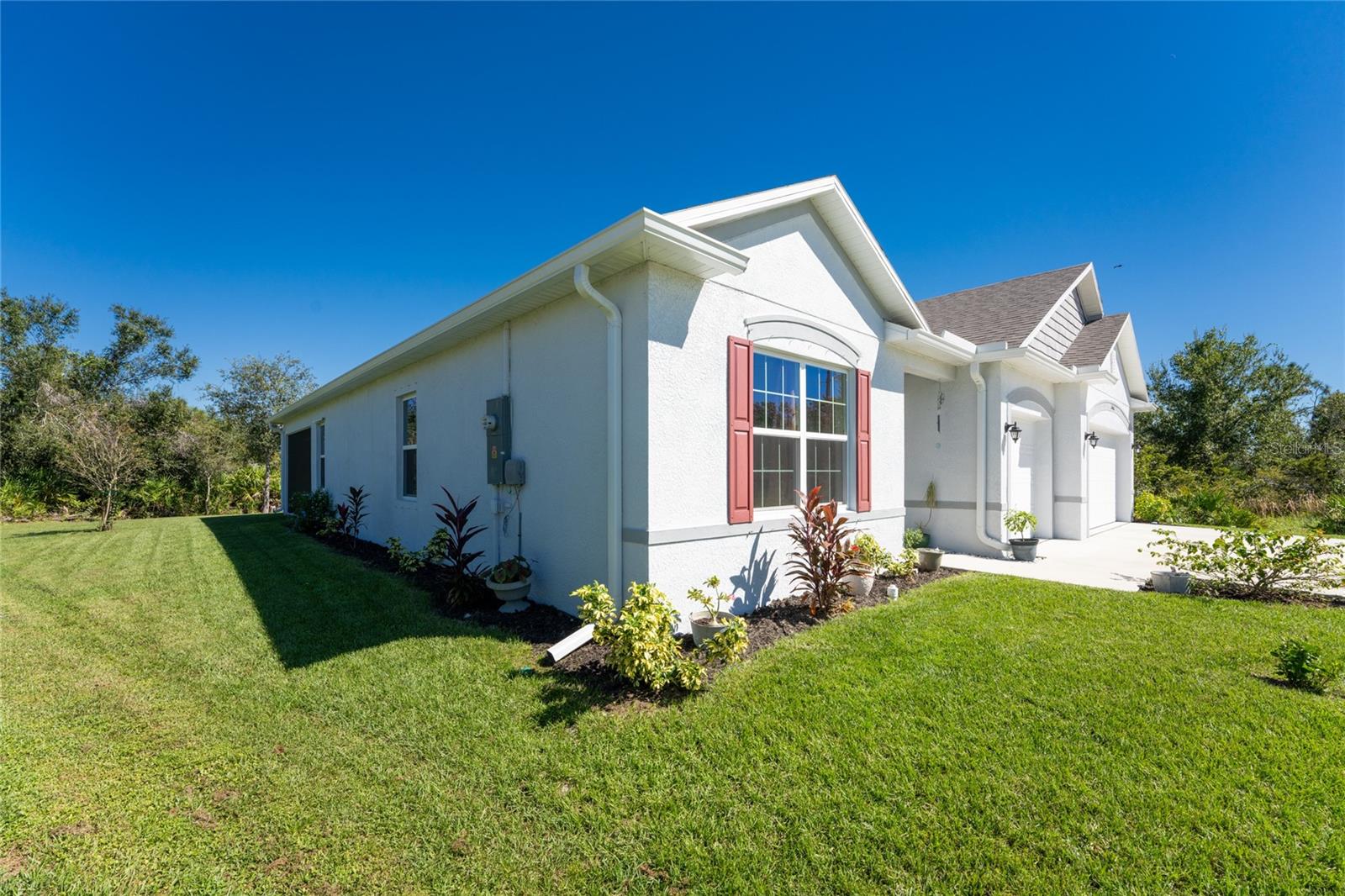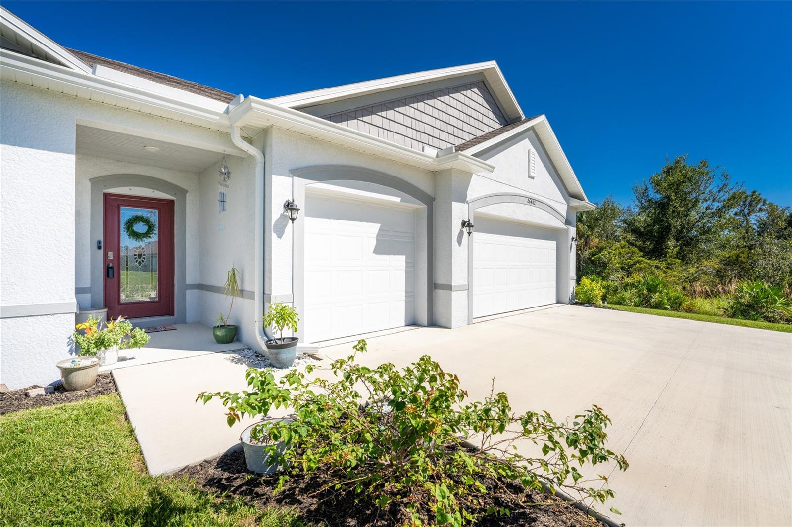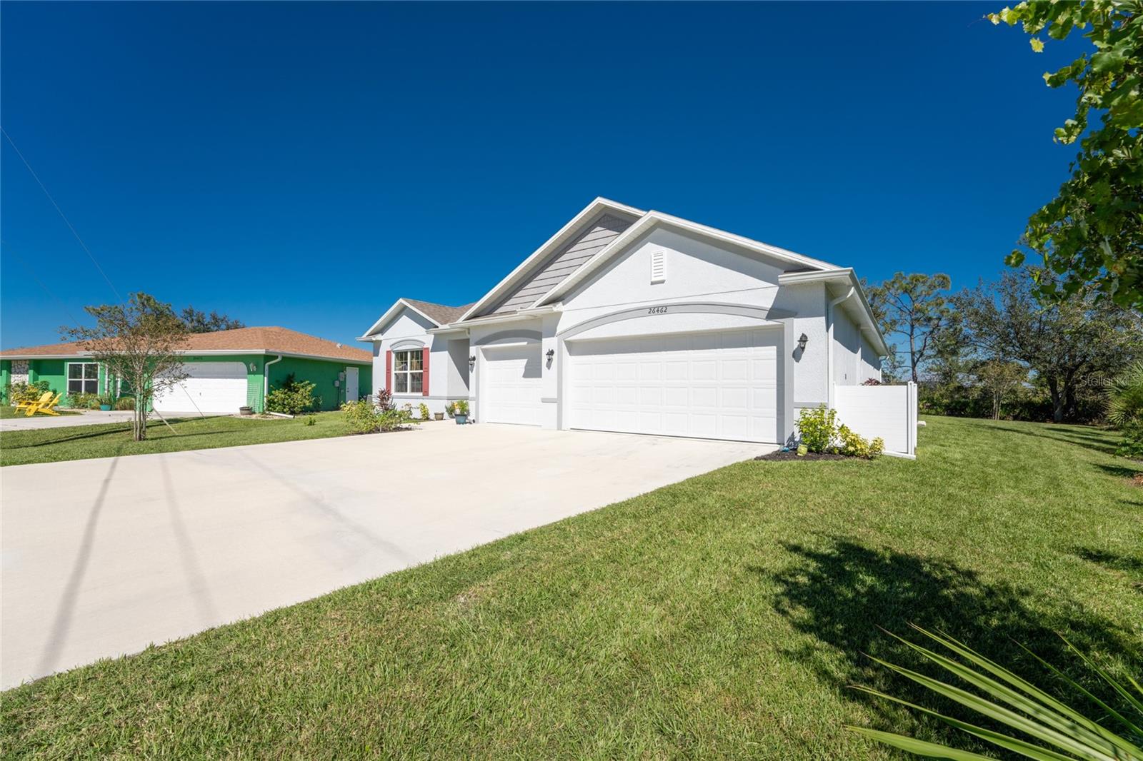 Nestled in the heart of Deep Creek, Punta Gorda, Florida, 26462 Asuncion Drive is a modern, vibrant, and exceptionally designed 2022-built gem that seamlessly combines style, comfort, and convenience. This masterpiece of contemporary architecture offers a harmonious fusion of luxury and functionality. As you arrive, you're greeted by an expansive three-car garage, ideal for your vehicles and storage needs. Inside, you'll be captivated by the sense of space and light, with tile flooring in the main living areas providing durability and a sleek, modern aesthetic. Plush carpeting in the bedrooms offers a cozy touch. The kitchen is the heart of this home, featuring stone countertops and a large kitchen island with dual sinks. It seamlessly flows into the open-concept living and dining areas, perfect for entertaining or family gatherings. A standout feature is the generous den/office space, ideal for remote work, a quiet reading nook, or pursuing hobbies. Imagine sipping morning coffee on the screened back porch, enjoying the warm Florida breeze - your private oasis for relaxation and outdoor dining. Safety is a top priority with hurricane shutters, providing peace of mind during storm seasons. This home offers three spacious bedrooms, with the owner's suite featuring an en-suite bathroom with double sinks, a walk-in shower, and a walk-in closet. The two additional bedrooms share a well-appointed second bathroom. Living in Deep Creek subdivision in Charlotte County, Florida, means easy access to local amenities, golf courses, parks, and recreational facilities. Moreover, the vibrant downtown Punta Gorda, Florida, is just a short drive away and a hub of exciting activities. From its charming shops and boutiques to its delicious dining options and lively events, downtown Punta Gorda has something for everyone. Stroll along the picturesque waterfront, savor the flavors of local cuisine, or immerse yourself in the vibrant arts and culture scene. Whether you're a young family, a professional couple, or a retiree seeking the ideal Florida lifestyle, this home caters to all. Pristine beaches, shopping, dining, and cultural attractions are just a short drive away. This property is a lifestyle upgrade waiting to happen, where dreams come true and the Florida sun smiles upon you daily. Take the chance to call this stunning property your own. Contact us today to schedule a viewing and start living the life you deserve in Deep Creek, Punta Gorda, Florida. This is more than a home; it's your ticket to the Florida dream!