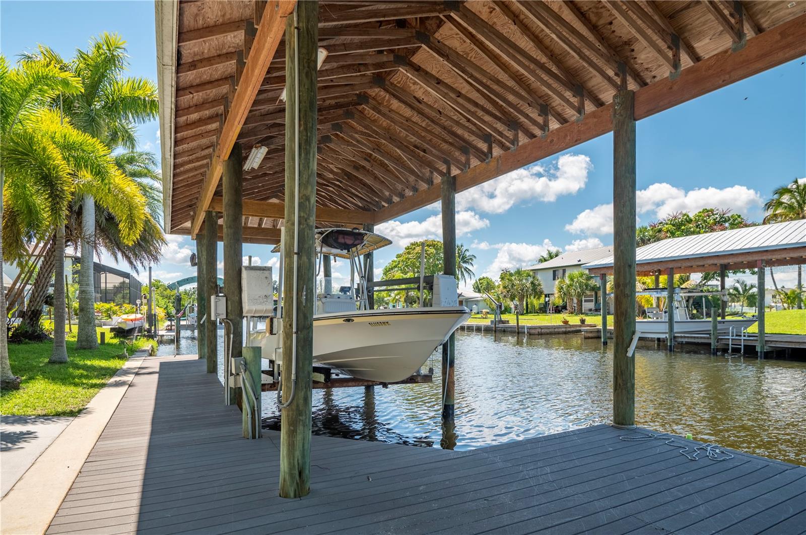*****Great Waterfront Residence Located in Pirate Harbor in Charlotte County with 100’ of Waterfront, giving way to Direct Access to Charlotte Harbor and onto the Gulf of Mexico, World Class Boating, Fishing and Gulf Beaches awaits. Discover the Florida Waterfront Lifestyle in this Key West Style Home, where your Family and Friends can relax and easily Experience the Waterfront Florida Lifestyle, with 3 Bedrooms, 3 Full Baths, there is room for everyone. Open and Bright Space in the Main Living Level offering Soaring Ceilings, Spacious Great Room, Cupola, Split Floor Plan with Private Owners Suite, along with Two Guest Suites, Kitchen with Granite Counters and Large Walk in Pantry, Relax and Entertain on the Second Level Covered Patio overlooking the Water, Downstairs you will find an In-Law Suite/Family Room with a Full Bath, Two Car Attached Garage with Possible Tandem Parking for additional Toys, along with additional Storage, enjoy the Breeze on the Covered Back Patio overlooking the Waterfront, plus room to add a pool if desired. Give your Boats a home with the 2 Boats Lifts with Custom Boat Port, you have no need to look any further for your Dream Home. Pirate Harbor is just a Short Drive to Punta Gorda, Beautiful Burnt Store Marina, Pine Island, St. James City, Matlacha, Cape Coral, Golf, Tennis, Shops, Dining and More. This Beautiful Home has the Relaxed Lifestyle you Desire, offering the Very Best in Waterfront Living Pirate Harbor Style, we Invite you for a Private Tour of you New Waterfront Estate Home.*****The First floor Air Conditioned area was not permitted and may not be insurable****