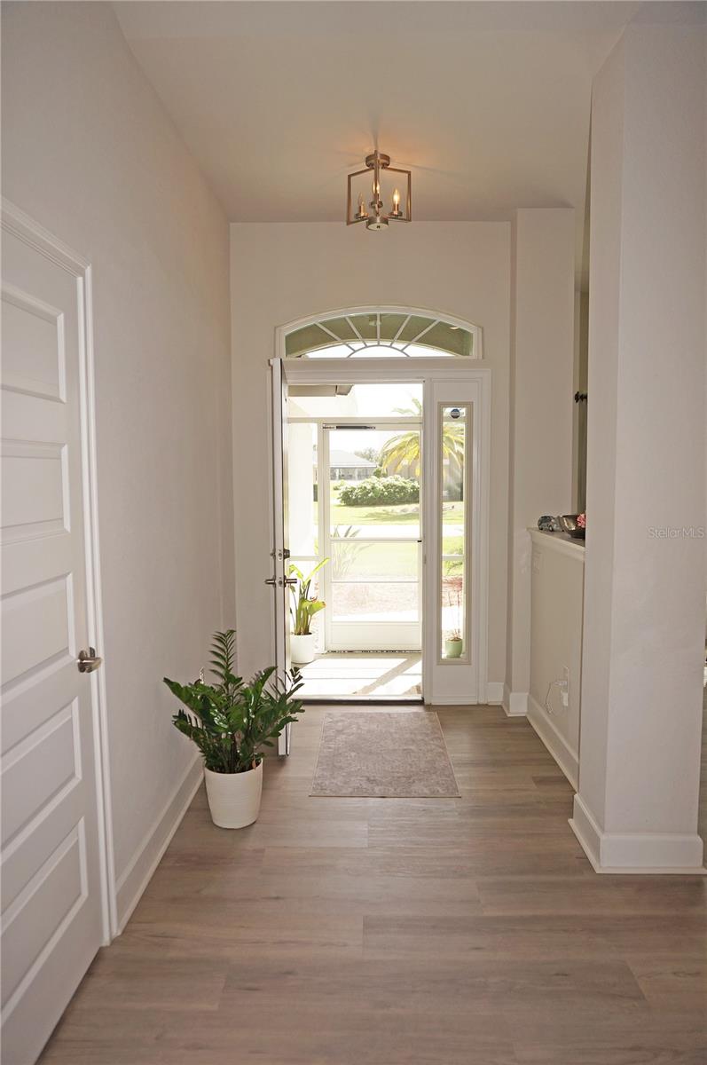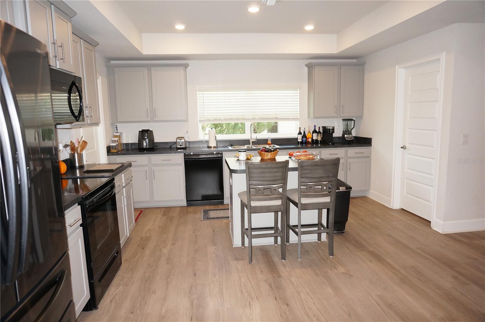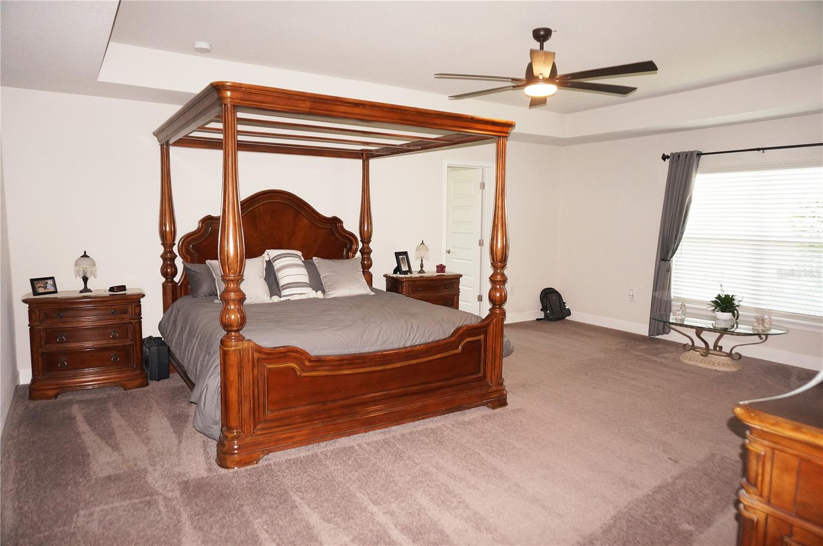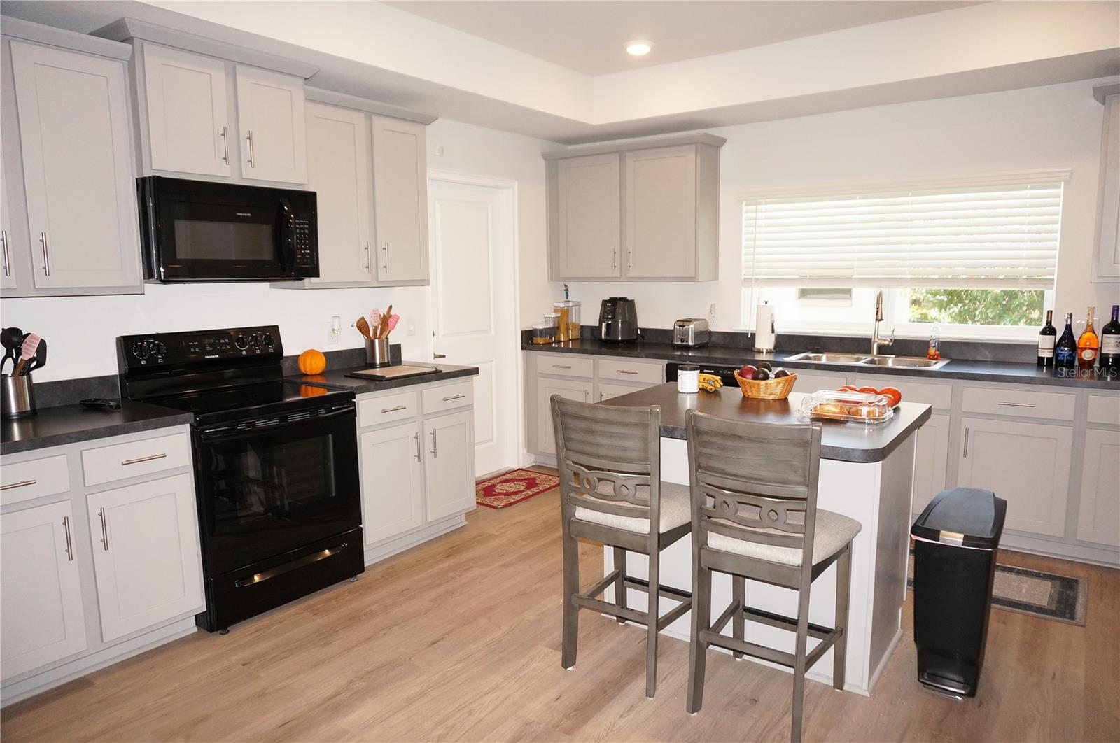 Spacious and impressive 4 Bedroom, 3 Bathroom home with attached 2 Car Garage perfect for a family or those expecting lots of winter visitors. *Built in 2021* Located in a quiet neighborhood in the desirable deed restricted community of DEEP CREEK. NOT in a flood zone. This light and bright home offers an open floor plan with Foyer with transom window and hall closet, separate Dining Room, Great Room, large well appointed Kitchen with Dining Area, Inside Laundry and 37x12 screened Lanai. The Great Room features a vaulted ceiling, luxury vinyl plank flooring, and French doors to the Lanai. The spacious Dining Room has a tray ceiling and lots of natural light through a large window and transom window. The Kitchen offers custom cabinetry with crown molding, tray ceiling, generous counter and cabinet space, large walk in pantry closet, stainless French door refrigerator, microwave, oven/range, disposal, double sink and island with breakfast bar. The Dining Area has a large window overlooking the screened Lanai and Greenbelt. Currently this area is being used as an office. The Inside Laundry has a front loading washer, front loading dryer, shelf, laundry tub and door to the Lanai. The Master Bedroom suite is huge and offers a tray ceiling, two walk in closets and private bathroom with dual sinks, large walk in shower and soaking tub. There are three additional generous sized bedrooms and two additional bathrooms, one with a new beautifully tiled walk in shower and the other with a tub/shower combo. Your living space extends through French doors in the Great Room to the expansive screened lanai with two ceiling fans and greenbelt view and is plumbed for a summer/outdoor kitchen. The backyard is fenced, perfect for your family and pets. This home is only two years old which means the roof, HVAC, appliances, etc are only two years old. Other features include screened front entry, rain gutters, landscaping, high ceilings, hurricane shutters and hurricane garage door. Luxury Vinyl Plank flooring throughout the living areas and carpet in the bedrooms. This home is located about 3 minutes from Deep Creek Golf Club and 10 minutes from shopping, dining, I-75, entertainment. Short drive to medical care, waterfront parks, boat ramps, fishing piers. This is a beautiful home in a great community!