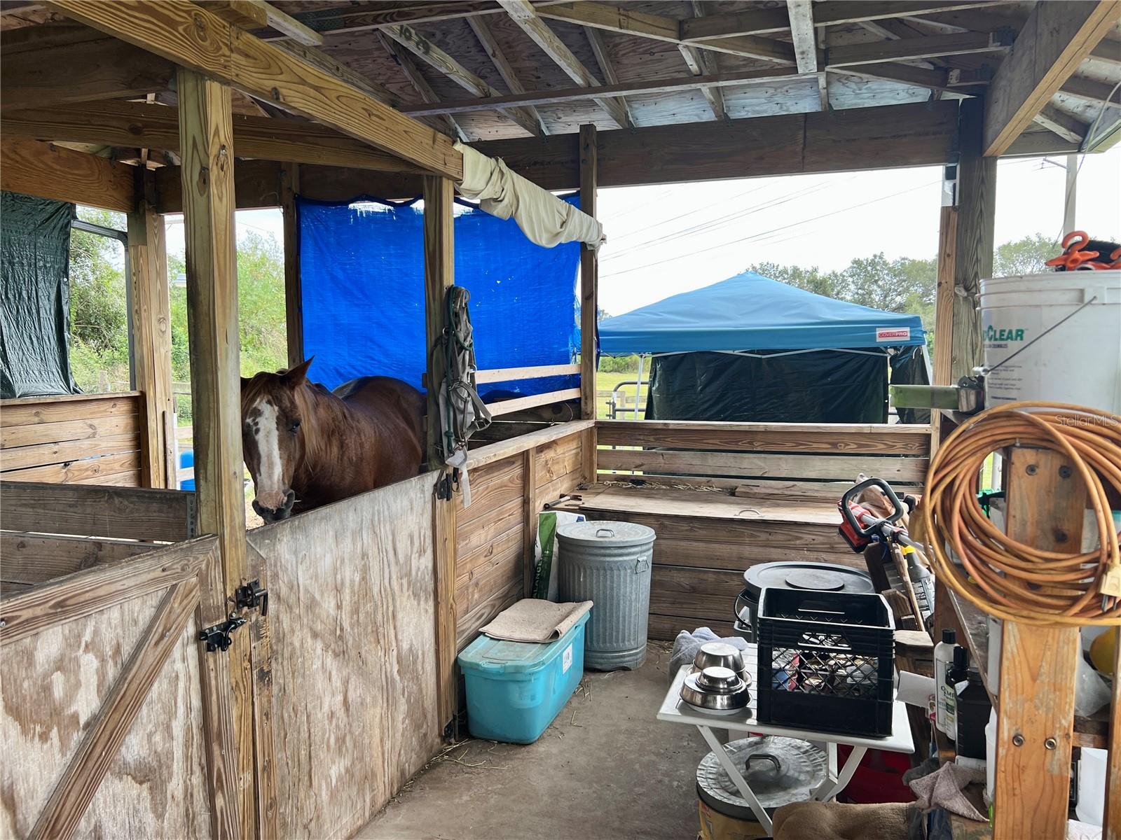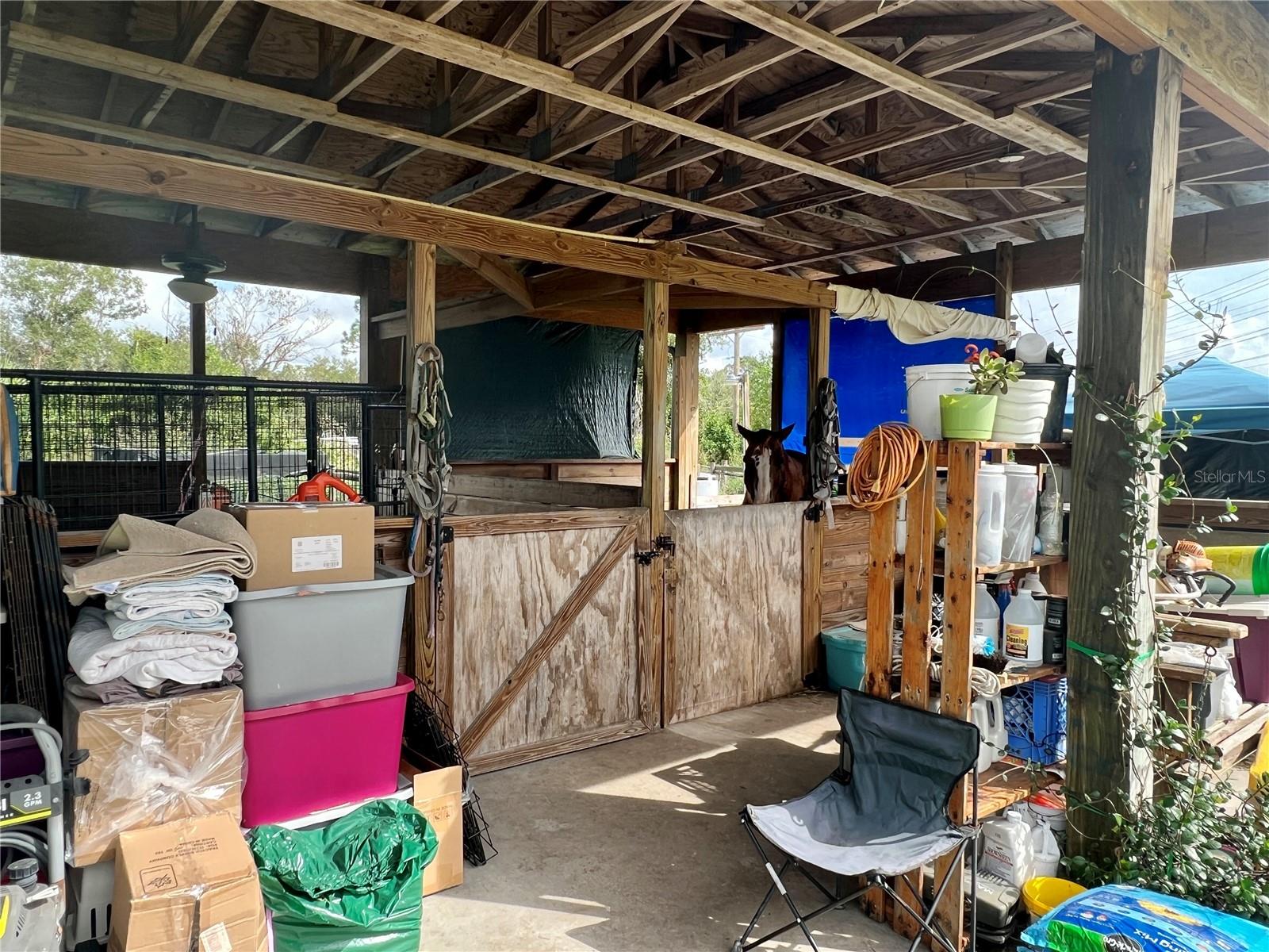 Perfect Opportunity to have horses and a place to stay. This open barn has a two horse stall with seperate paddocks and a 12' X 20' Room that has been turned into a living area. It has a full bath and a laundry area. the main part is an open room which is approximately 12' X 16' with a Kitchen Sink, window AC and an area for bedding (like an efficientcy apartment). It is hooked up to a well and a small septic system. This whole lot is approximately 2.6 acres. There is a utility easement but room to build your home and let your live stock run. The lot is almost entirely cleared. Lots of potential and options with this property.