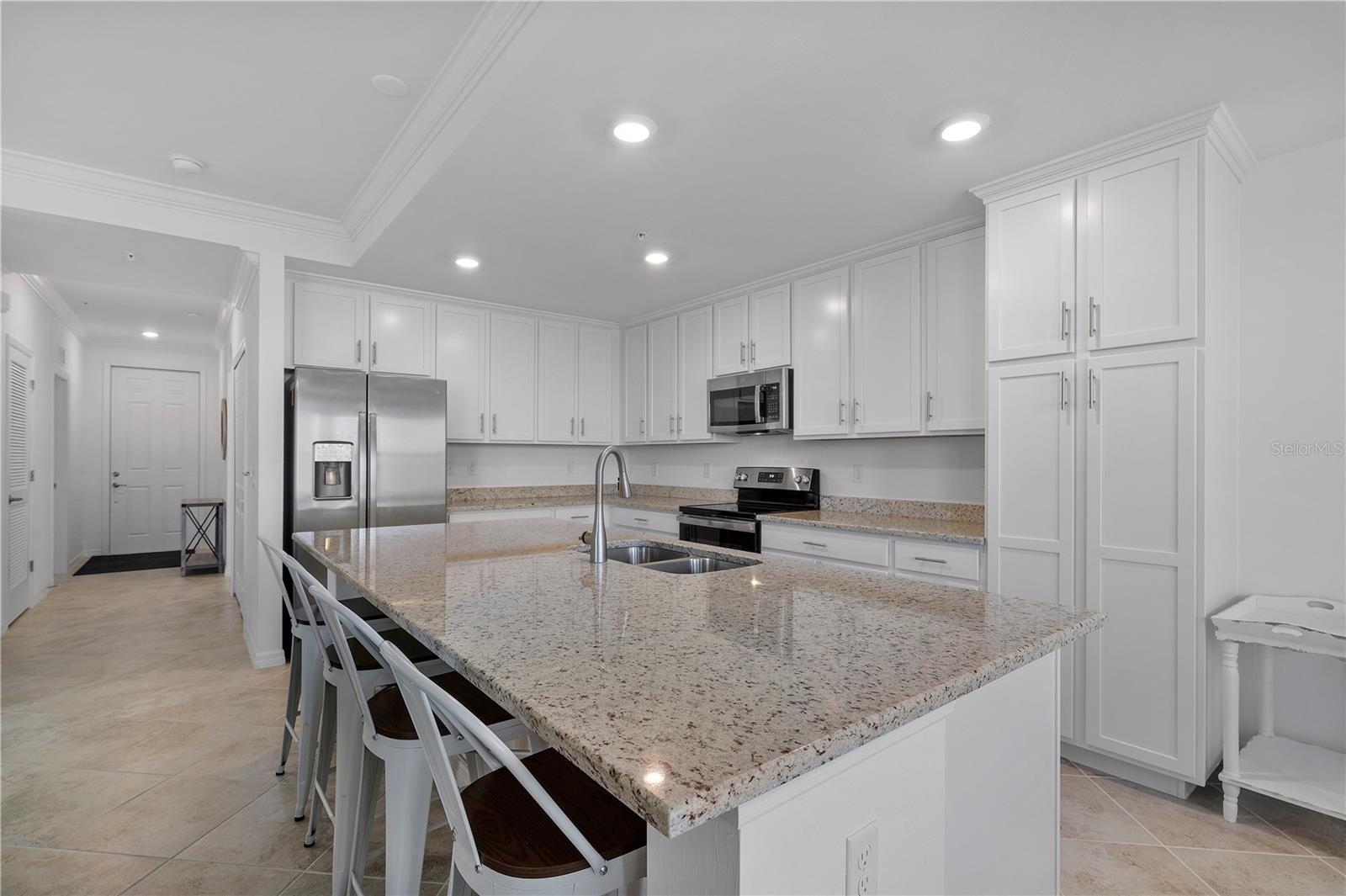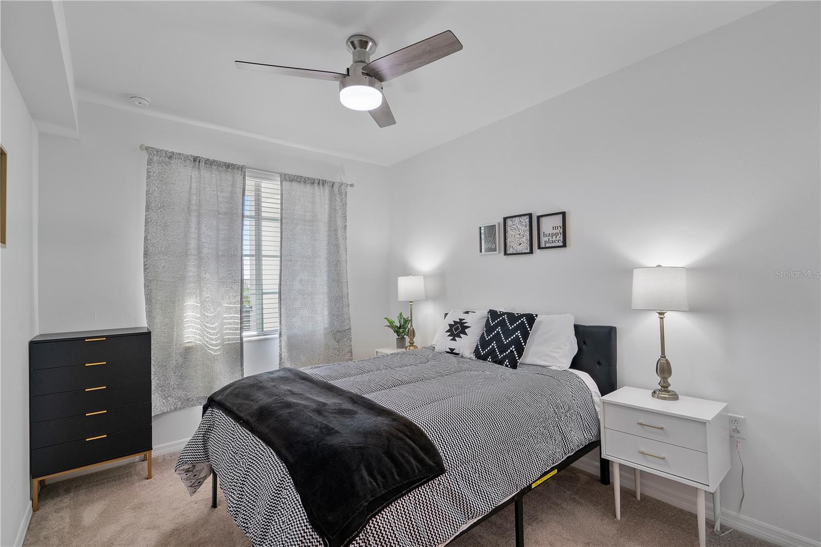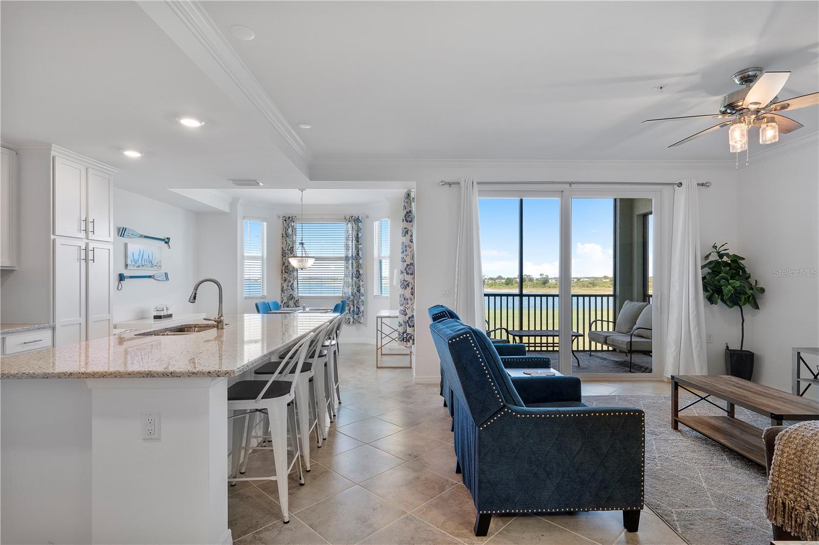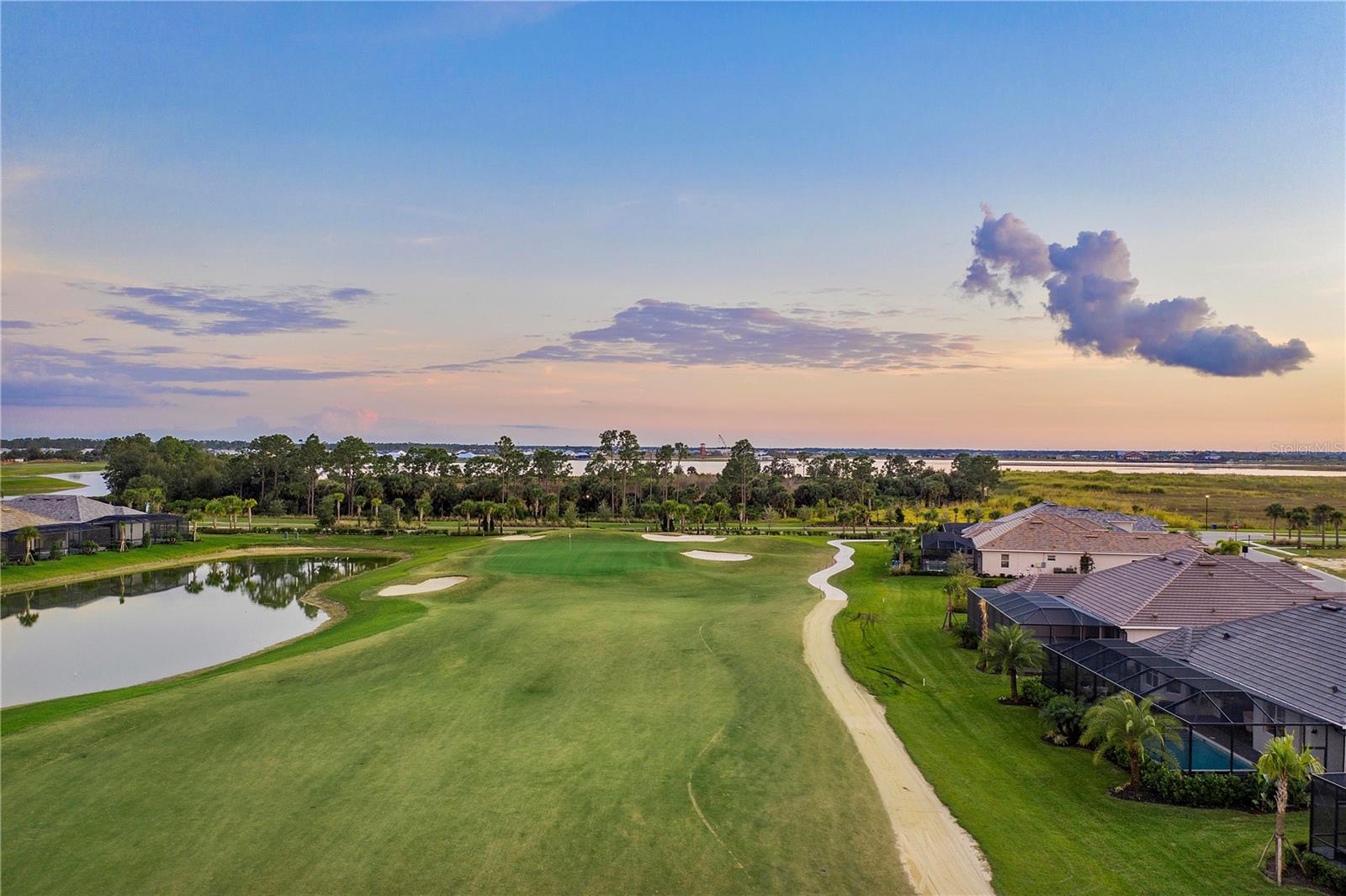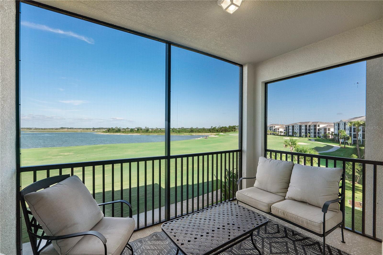 Welcome home to the 3rd-floor Birkdale model fully furnished, turkey with BUNDLED GOLF. This is your move-in ready home located in Babcock National, the only Golf Course community in Babcock Ranch. The stunning home features 2 large bedrooms and 2 full bathrooms with crown molding, ceiling fans, lots of natural lighting, and diagonal tile flooring in the main living spaces, and an outdoor 5x7 ft. detached concrete storage unit. The kitchen is equipped with granite countertops, ample cabinet storage, a large breakfast island, and stainless-steel appliances. The living/dining space overlooks a covered/screened lanai with a view of the lake & golf course beyond. Babcock National is a premier master-planned community and the first entirely solar-powered town in America. Residents of this community have access to a variety of amenities, including a championship 18-hole golf course, a resort-style pool with lap lanes and a spa, a state-of-the-art fitness center, a tennis center, pickleball, bocce ball, a community clubhouse with dining options, and much more.