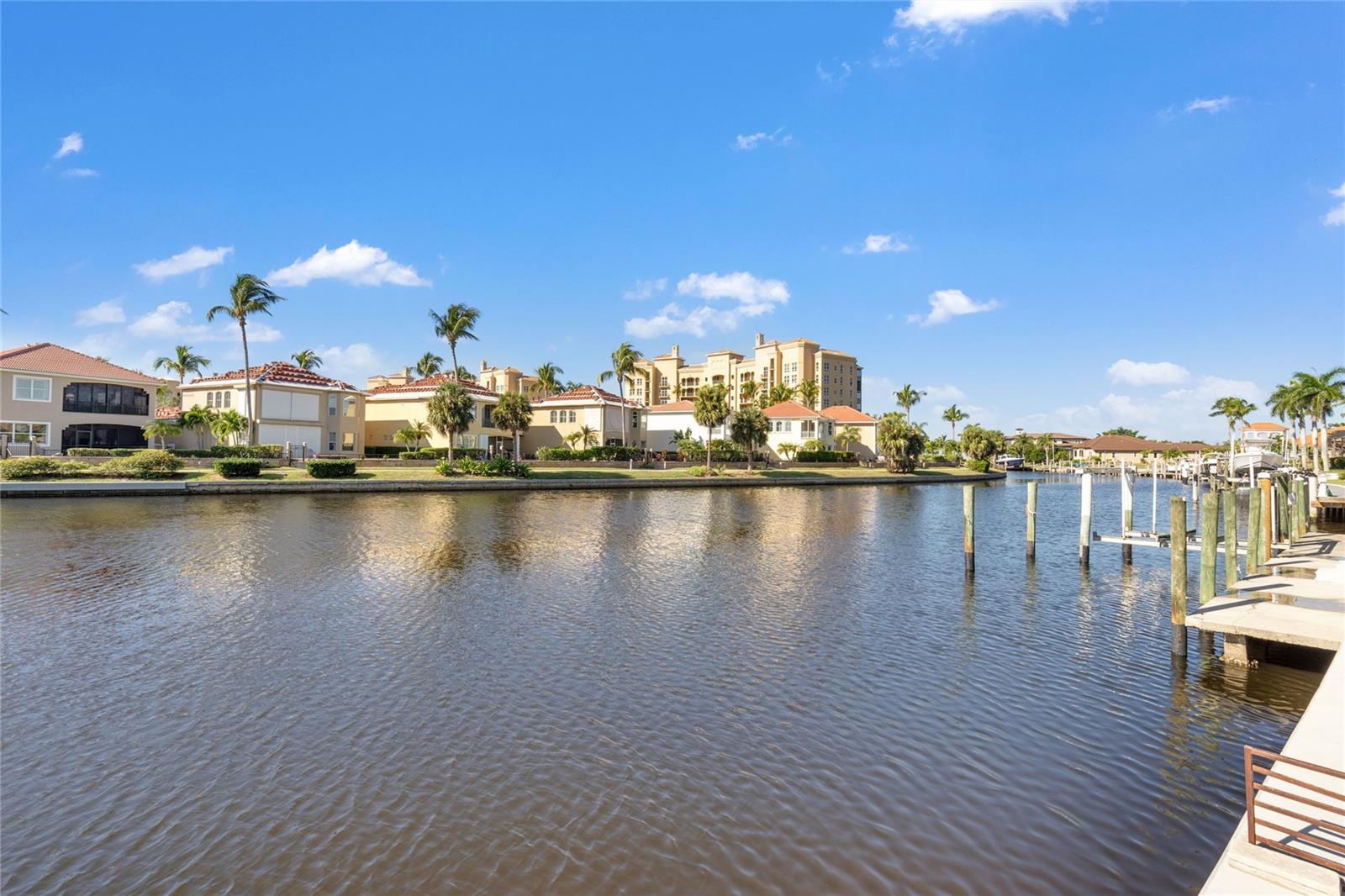 BEAUTIFUL CONDO WITH A NICE VIEW OF BOATS GOING TO & FROM CHARLOTTE HARBOR! LOWEST PRICED CONDO WITH A WATER VIEW OF THE NORTH YACHT BASIN CANAL IN BURNT STORE MARINA HAVING OVER 1500 FEET UNDER AIR CONDITIIONING! Resort style living where you have access to boating & exploring the local islands, fishing & golfing any day of the week. This beautiful, immaculate, light & bright condo, is move-in ready with 2 bedrooms, 2 bathrooms & a carport. It has a total of 1762 feet & comes turnkey furnished. The a/c was replaced in 2023 & the hot water heater 2022. The condo building sits adjacent to the North Yacht Basin. This gives you the opportunity of sitting next to the seawall & throwing a fishing line in the canal while enjoying the view of manatees, fish & the occasional dolphin. Also, there are boats passing by going to & from the North Yacht Basin on their way to Charlotte Harbor & the Gulf of Mexico. This condo is located in a peaceful setting where you have both a water & greenbelt view. There is ceramic tile & luxury vinyl flooring throughout; plantation shutter blinds & plantation shutter closet doors. It comes with complete hurricane protection, which includes accordion shutters & impact windows & doors. There was a new a/c unit installed in 2023 & a new hot water heater in 2021. The great room has stacking sliding glass doors out to the lanai & a large window in the dining area to take advantage of the view; Kitchen is well equipped & includes light cabinets plus an island with recessed lighting in the ceiling. It is a Great Room, split bedroom floor plan that creates privacy & pocket doors that give you the possibility of having 2 primary suites. Large primary bedroom has a big viewing window & private access to the lanai. The walk in closet is huge and lined with cedar planking. Primary bathroom includes a long vanity with dual sinks, walk in shower & separate commode room. Tiled Lanai is great for entertaining your friends outdoors while you enjoy the view. The Owner has purchased a 1 year home warranty for the buyer after closing that covers your a/c, heat, electrical, plumbing & all the appliances. All of the buildings at Marina North Shore were examined by a structural engineer in 2021 & repairs were made, if they were necessary. They have just passed the Milestone report. The report is good for 10 years. Pets are allowed, either one large dog up to 100 lbs. or 2 small dogs totaling 100 lbs. None of the buildings have ever flooded from any hurricane or even have been closed to flooding. Seawall was raised higher after Hurricane Ian. Also, cats are allowed. Burnt Store Marina is a gated, waterfront community famous for being the largest deep-water marina in Southwest Florida with direct access to Charlotte Harbor & the Gulf of Mexico. Boca Grande Pass is the gateway to the Gulf of Mexico & is 10 nautical miles from Burnt Store Marina. Boat slips or dry dockage can be leased thru Safe Harbor. You can pay to have a golf or social membership to the golf course (which includes a restaurant & activities); also the opportunity to have a paid membership to the fitness center with clay tennis courts, pickle ball & a resort style pool. The waterfront restaurant overlooks the docks & there an outside tiki bar with entertainment; ship store with a deli & ice cream parlor. If you love nature & want to be a part of it, this is the place to be.