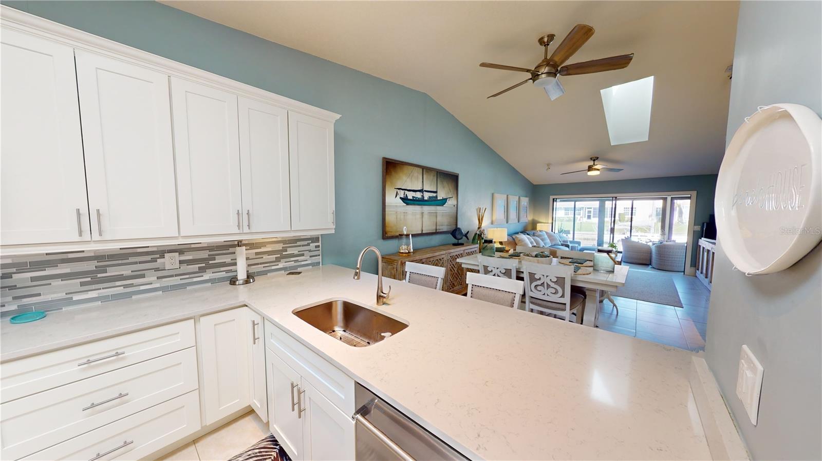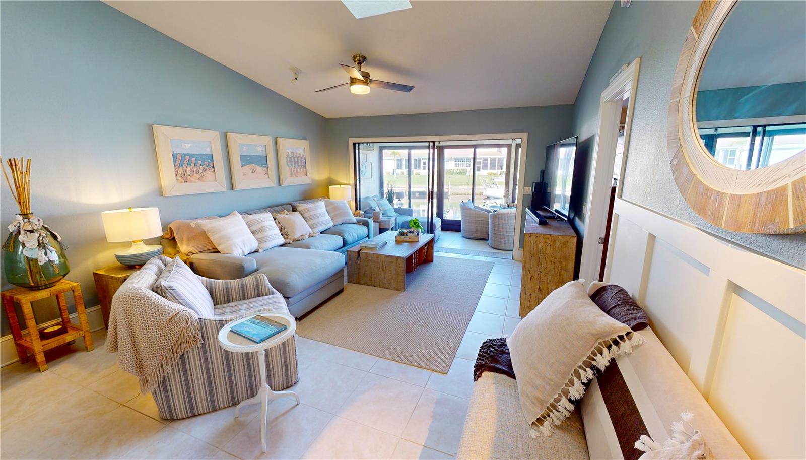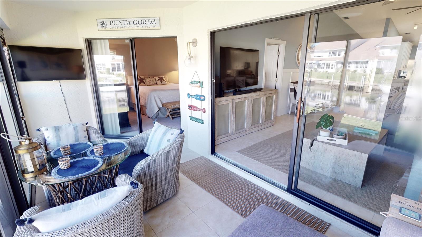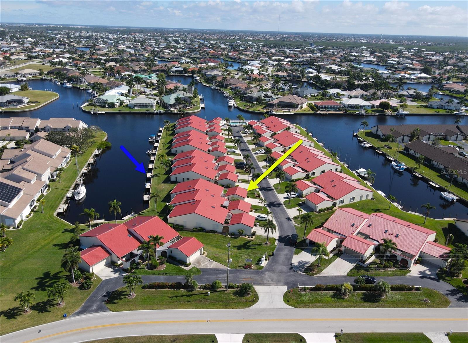 HUGE PRICE REDUCTION: WATERFRONT VILLA w/ASSIGNED PRIVATE DOCK provides direct access to Charlotte Harbor via Buckley's Pass....NO Bridges! PARK your BOAT in the backyard of this 2 Bed/2 Bath PLUS Den/Office/Bedroom is meticulously designed to offer a lifestyle of comfort and the best of Florida Living. The Paver and Tiled Courtyard Entry sets the tone and provides a great place for relaxing w/plenty of space for additional outdoor living, grilling and tropical plants. This End Unit with Vaulted Ceilings and Skylights only adds to the grandeur. Tile throughout w/carpet in two bedrooms. The living area seamlessly flows into the custom cabinets and quartz kitchen, providing a perfect blend of functionality and aesthetic appeal. The villa boasts a built-in coffee/wine bar, adding a touch of sophistication to your entertaining experience. Whether you're starting your day with a cup of coffee or winding down with a glass of wine, this space is designed for both relaxation and socializing. Breakfast Bar opens to Dining Area with Natural Light from the two skylights. This is truly a beautiful villa. Primary Suite on Waterside w/slider access to Lanai hosts two closets, walk-in shower and granite vanity. One of the standout features of this villa is direct access to Charlotte Harbor and the Gulf beyond. The waterfront location allows you to indulge in a boater's paradise right from your backyard. Imagine stepping out onto your private dock, boarding your boat, and setting sail into beautiful waters. The attention to detail extends to the tiled Florida room/Lanai offering a seamless transition between indoor and outdoor living spaces w/canal views. Full Shutter protection. Condo Fee includes Water, Sewer, Trash, Exterior including Roof, Insurance, Reserve, Property Mgr, Pool and Ground Maintenance. All you pay is Electric, Internet, Interior Insurance and Property Taxes. Annual costs are less than a waterfront, pool single family home! The photos and virtual tour speak louder than words..**PLEASE ENJOY THE 3D INTERACTIVE VIRTUAL TOUR ** This waterfront villa is not just a residence; it's move-in-ready combining luxurious living with the allure of Southwest Florida's natural beauty, making it the perfect place to call home.