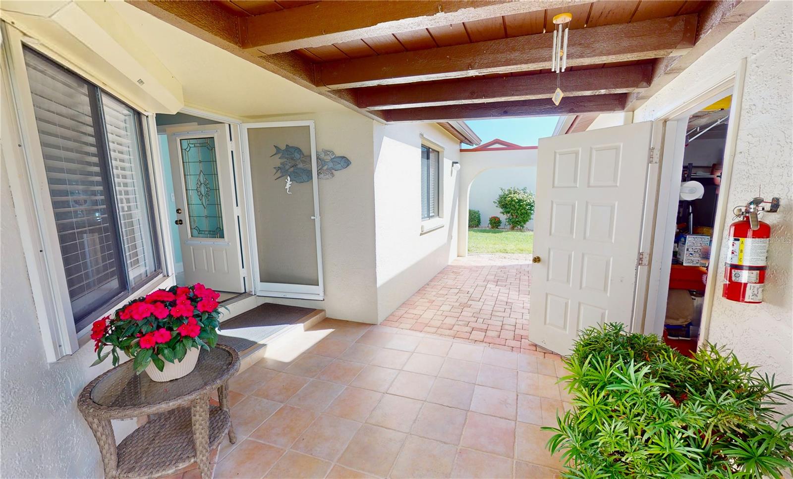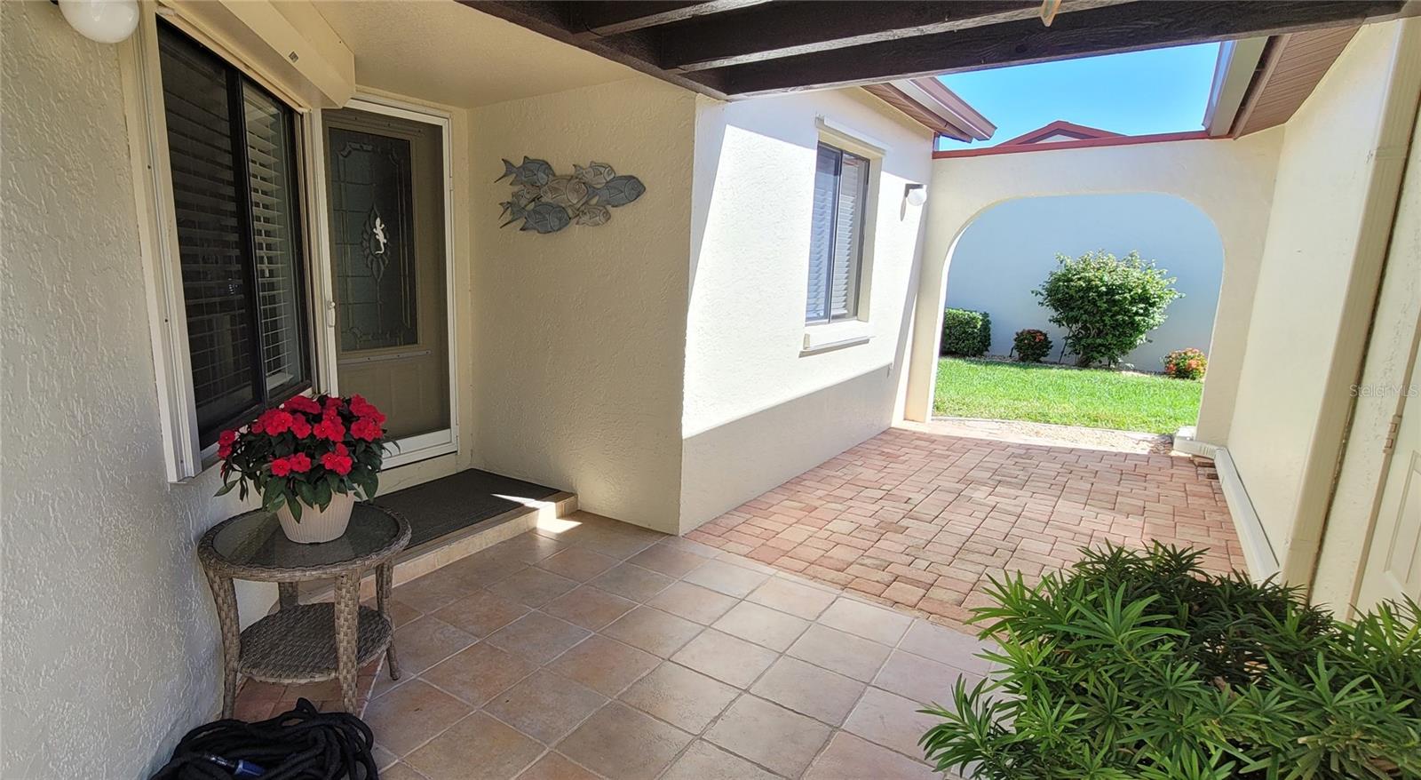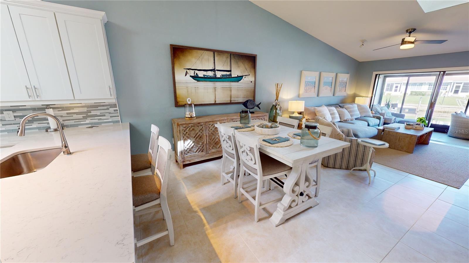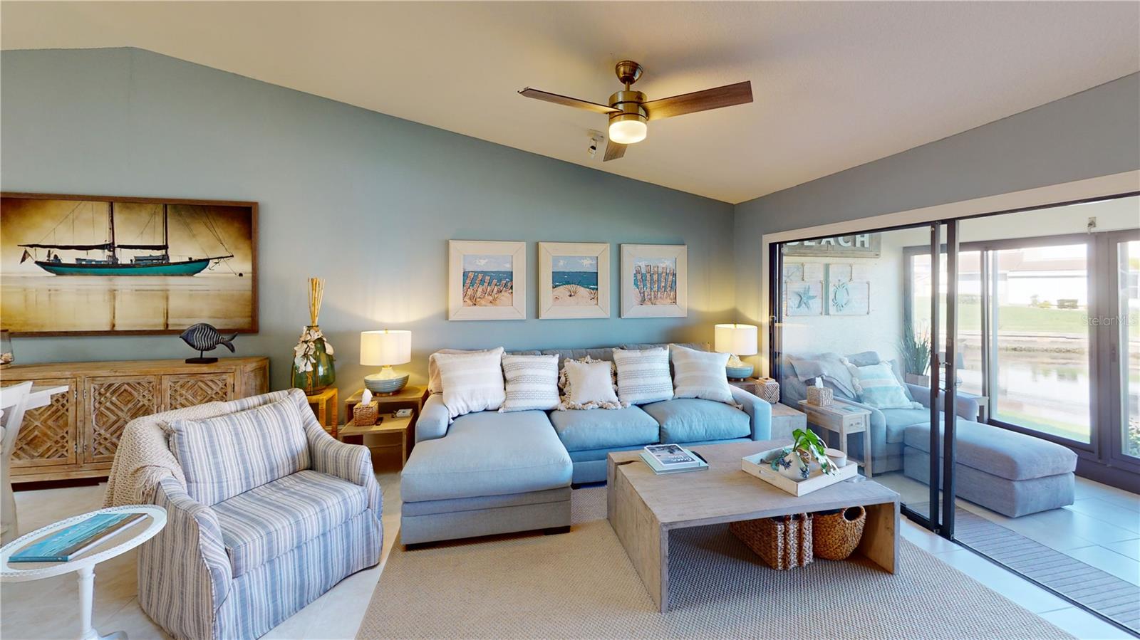 HUGE PRICE REDUCTION: WATERFRONT VILLA w/ASSIGNED PRIVATE DOCK provides direct access to Charlotte Harbor via Buckley's Pass....NO Bridges! PARK your BOAT in the backyard of this 2 Bed/2 Bath PLUS Den/Office/Bedroom is meticulously designed to offer a lifestyle of comfort and the best of Florida Living. The Paver and Tiled Courtyard Entry sets the tone and provides a great place for relaxing w/plenty of space for additional outdoor living, grilling and tropical plants. This End Unit with Vaulted Ceilings and Skylights only adds to the grandeur. Tile throughout w/carpet in two bedrooms. The living area seamlessly flows into the custom cabinets and quartz kitchen, providing a perfect blend of functionality and aesthetic appeal. The villa boasts a built-in coffee/wine bar, adding a touch of sophistication to your entertaining experience. Whether you're starting your day with a cup of coffee or winding down with a glass of wine, this space is designed for both relaxation and socializing. Breakfast Bar opens to Dining Area with Natural Light from the two skylights. This is truly a beautiful villa. Primary Suite on Waterside w/slider access to Lanai hosts two closets, walk-in shower and granite vanity. One of the standout features of this villa is direct access to Charlotte Harbor and the Gulf beyond. The waterfront location allows you to indulge in a boater's paradise right from your backyard. Imagine stepping out onto your private dock, boarding your boat, and setting sail into beautiful waters. The attention to detail extends to the tiled Florida room/Lanai offering a seamless transition between indoor and outdoor living spaces w/canal views. Full Shutter protection. Condo Fee includes Water, Sewer, Trash, Exterior including Roof, Insurance, Reserve, Property Mgr, Pool and Ground Maintenance. All you pay is Electric, Internet, Interior Insurance and Property Taxes. Annual costs are less than a waterfront, pool single family home! The photos and virtual tour speak louder than words..**PLEASE ENJOY THE 3D INTERACTIVE VIRTUAL TOUR ** This waterfront villa is not just a residence; it's move-in-ready combining luxurious living with the allure of Southwest Florida's natural beauty, making it the perfect place to call home.