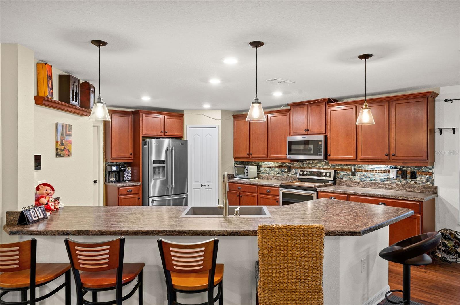 Bring ALL Offers! FURNISHED TWO-STORY 4 Bedroom, 2.5 Bathroom, 2 Car Garage home located in Creek Side. CLICK ON THE VIRTUAL TOUR LINK 1 FOR THE VIDEO AND VIRTUAL LINK 2 FOR THE 3D TOUR. This lovely home features a bright open floor plan, vinyl flooring in the main living areas, a main floor master bedroom, and much more! Host unforgettable gatherings with an open living and dining room while you whip up family favorites in the kitchen. The kitchen offers ALL stainless-steel appliances, a tile backsplash, plenty of cabinets for storage, a closet pantry, and a breakfast bar. The large master bedroom is on the main floor with a walk-in closet and private bathroom with dual sink vanity, ALL tile walk-in shower, dual linen closet, and private toilet. The guest bedrooms are on the second floor and all have walk-in closets with a shared guest bathroom with a dual sink vanity and a shower/tub combo. A fantastic-sized bonus room on the second floor provides endless opportunities. Expand your living space to the covered lanai where you can enjoy your morning coffee, evening beverage or simply enjoy the BEAUTIFUL Florida weather. Creekside is a quiet, deed restricted community that includes underground utilities, lakes, a picnic area, 2 playgrounds and sidewalks. Close to the Punta Gorda Airport and only a short car ride to I-75, US-41 for access to local favorites such as Fishermen’s Village, Ponce De Leon Park, shopping & boutiques, fine & casual dining, and live entertainment. Schedule your private showing TODAY! Room Feature: Linen Closet In Bath (Primary Bedroom).